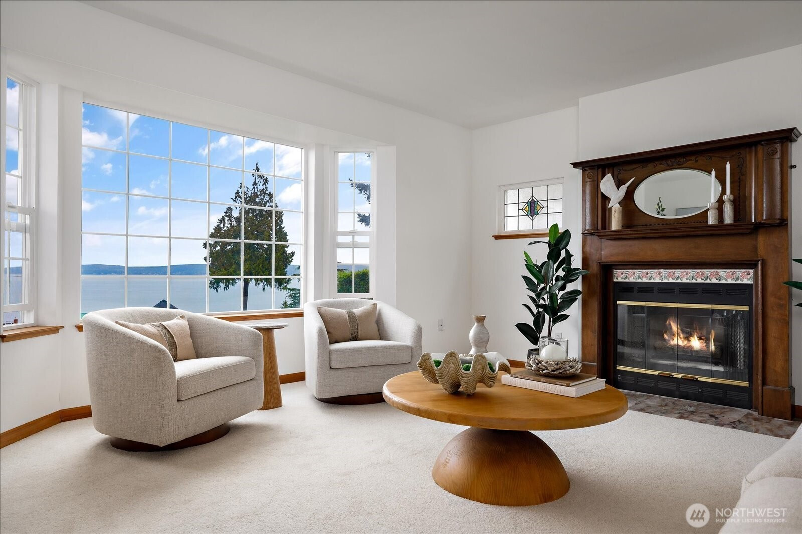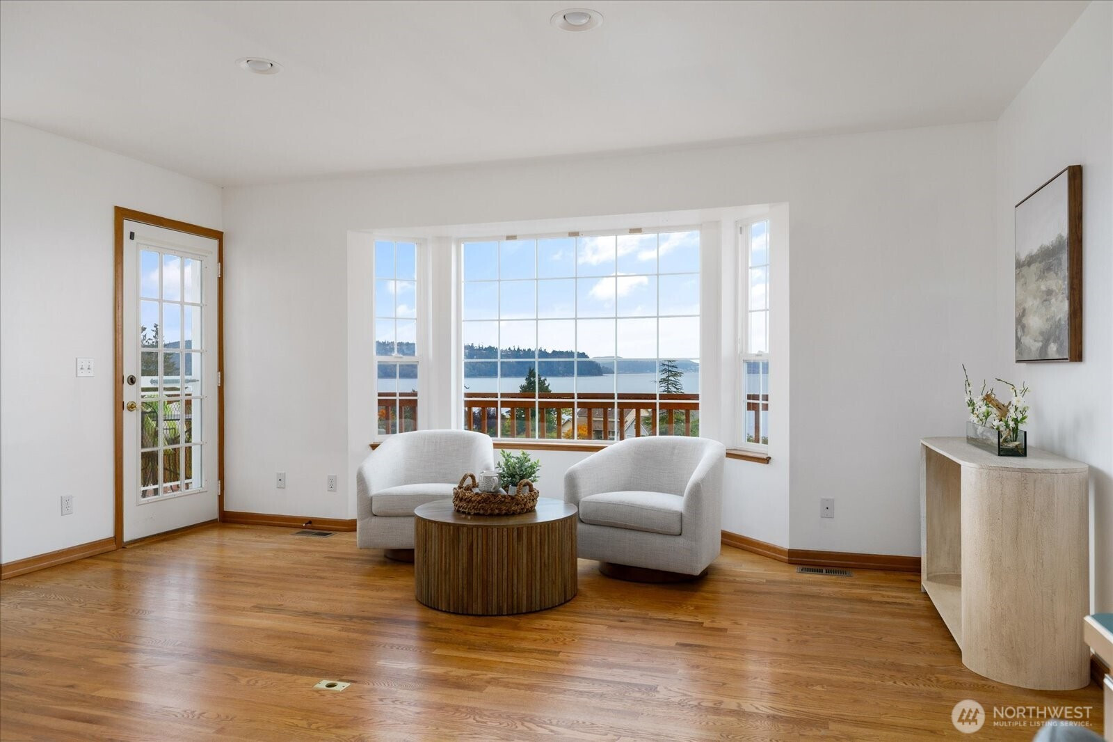 (503) 893-8874Just staged and huge price drop on this spectacular home with views of Dugualla Bay. Situated on the hillside overlooking the 29 acre Dugualla Hts Conservation Easement protected by the Whidbey Camano Land Trust. Imagine waking up every day with this peaceful setting and views from all your main living spaces. Sunny and bright with loads of windows & 3 skylights. Charming & unique touches- vintage mantel w/ mirror, stained glass windows, leaded glass, hardwood fls, 1 gas and 1 wood burning fireplace, den w/ trundle bed, and much more. Front deck to sit, relax, take in sunsets & sunrise with eagles flying by. Huge upper back yard waiting for creative touches. Minutes to the community beach and clubhouse to drop your kayak or paddle board.