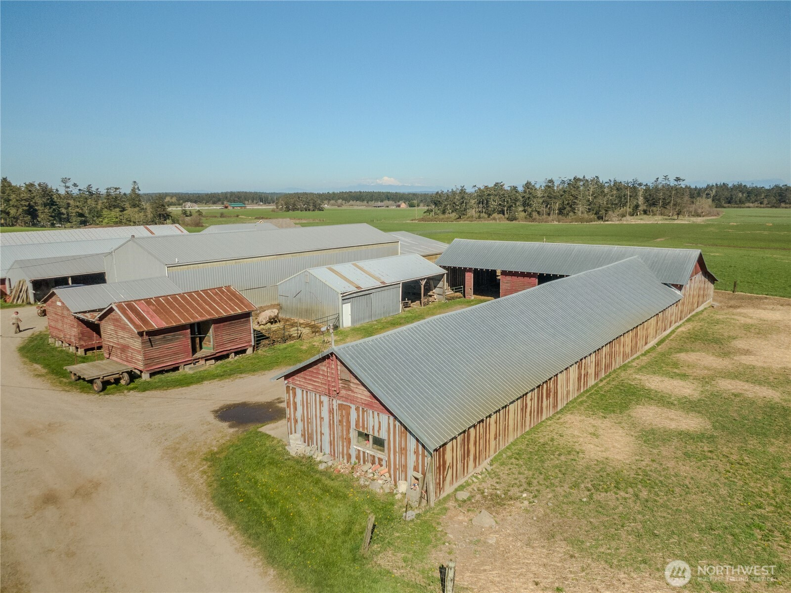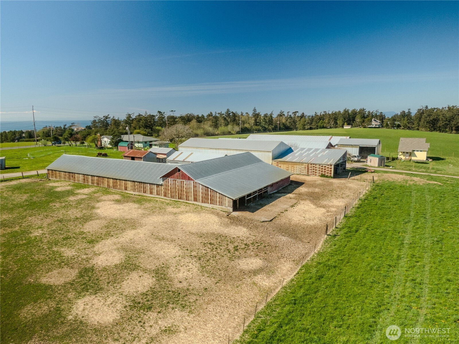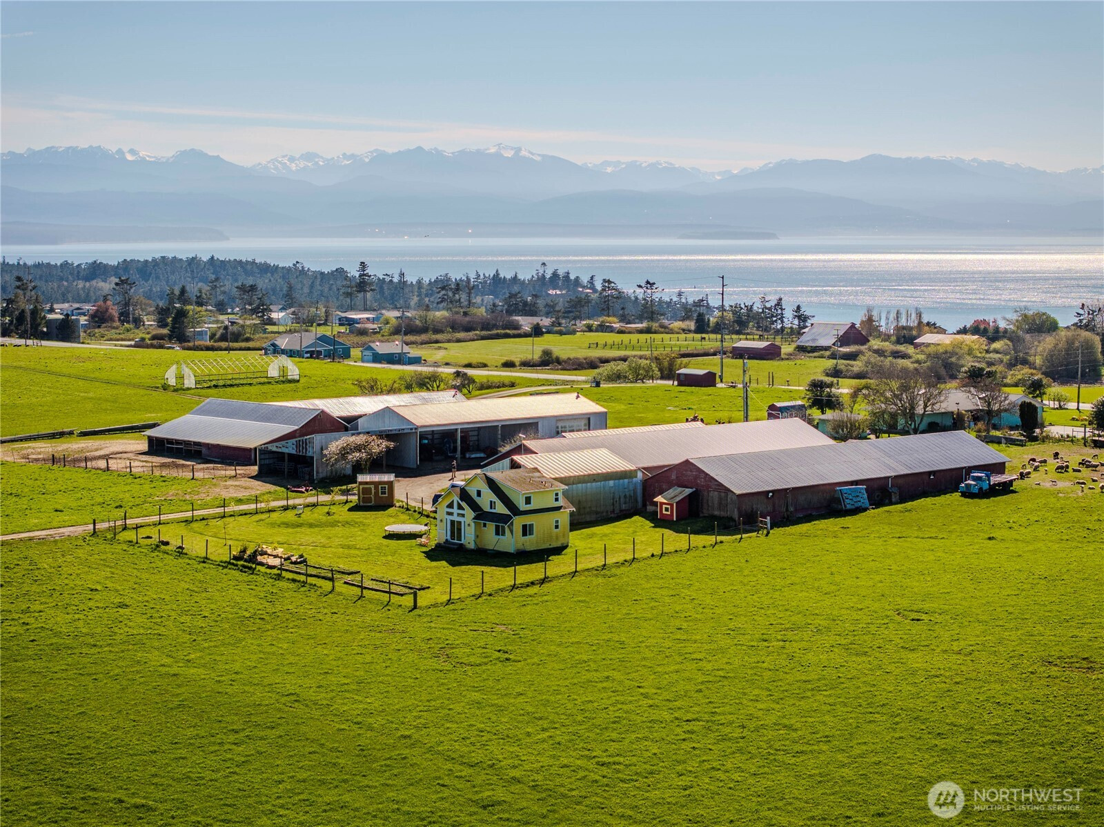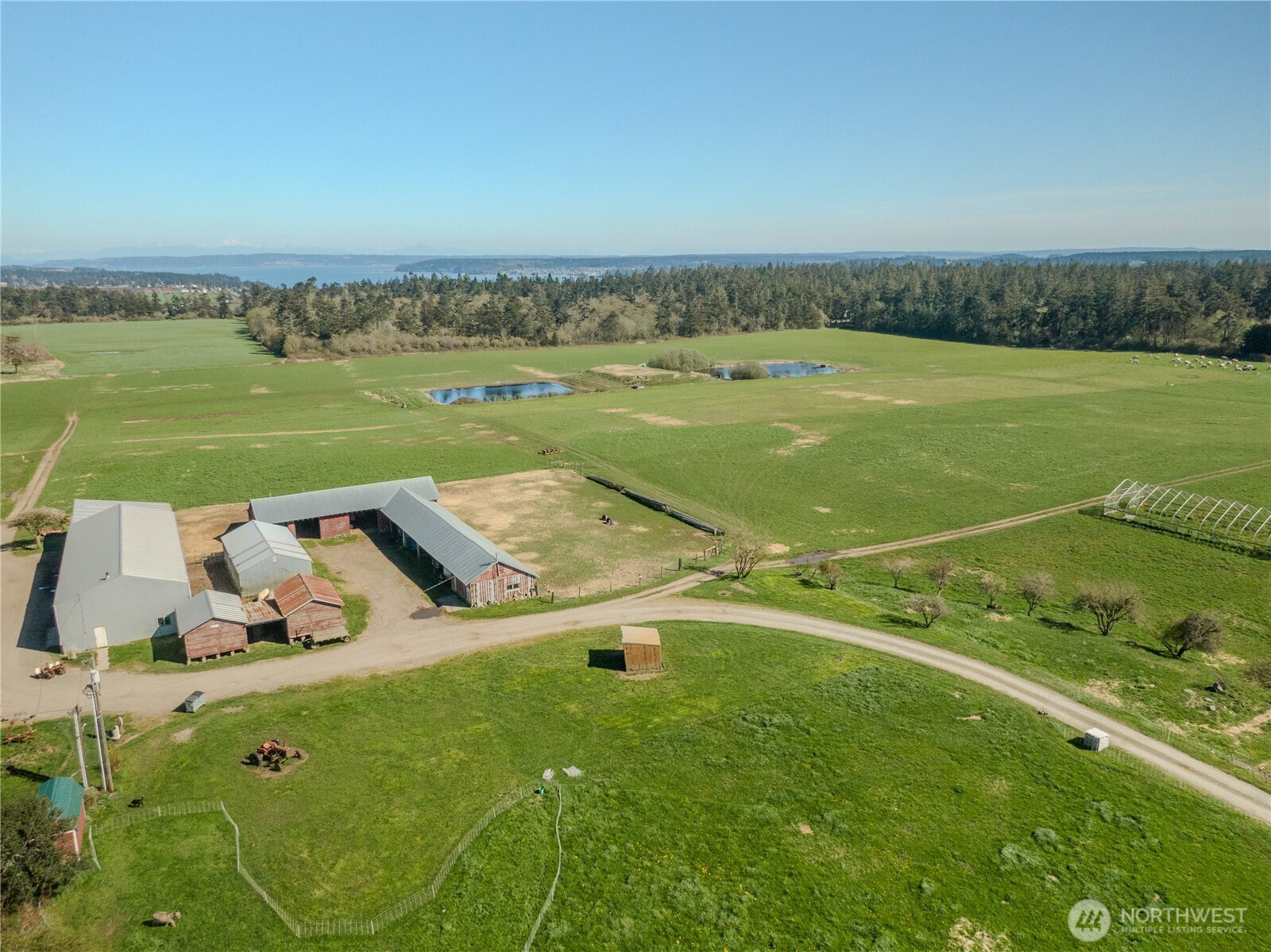 This incredible farm offers 84 acres on 4 parcels with exceptional features. The Bells Farm has been operating for over 75 years with a reputation for high quality soils, world class produce, incredible panoramic views, irrigated pastures, and a legacy respected by customers for decades. The farm offers a custom 1,176 sq.ft. 2 bed/2 bath home built in 2020. Over 27,000 sq.ft. of barns, sheds, workshops, and storage space. Conservation Easement on the property through Whidbey Land Trust offering 17 acres for new commercial operations. This is an ideal location for a Farm to Table Business, Wedding and Event Center, Restaurant, Home Based Business, Equestrian Facility, or another unique idea you may have. Large pond is on site for attracting wide variety of water fowl and other game animals. Great spot to recreate or hunt. Stunning views of the Puget Sound, and Olympic Mountains with the most incredible sunrise and sunsets you could hope for. Check this farm out before its gone!