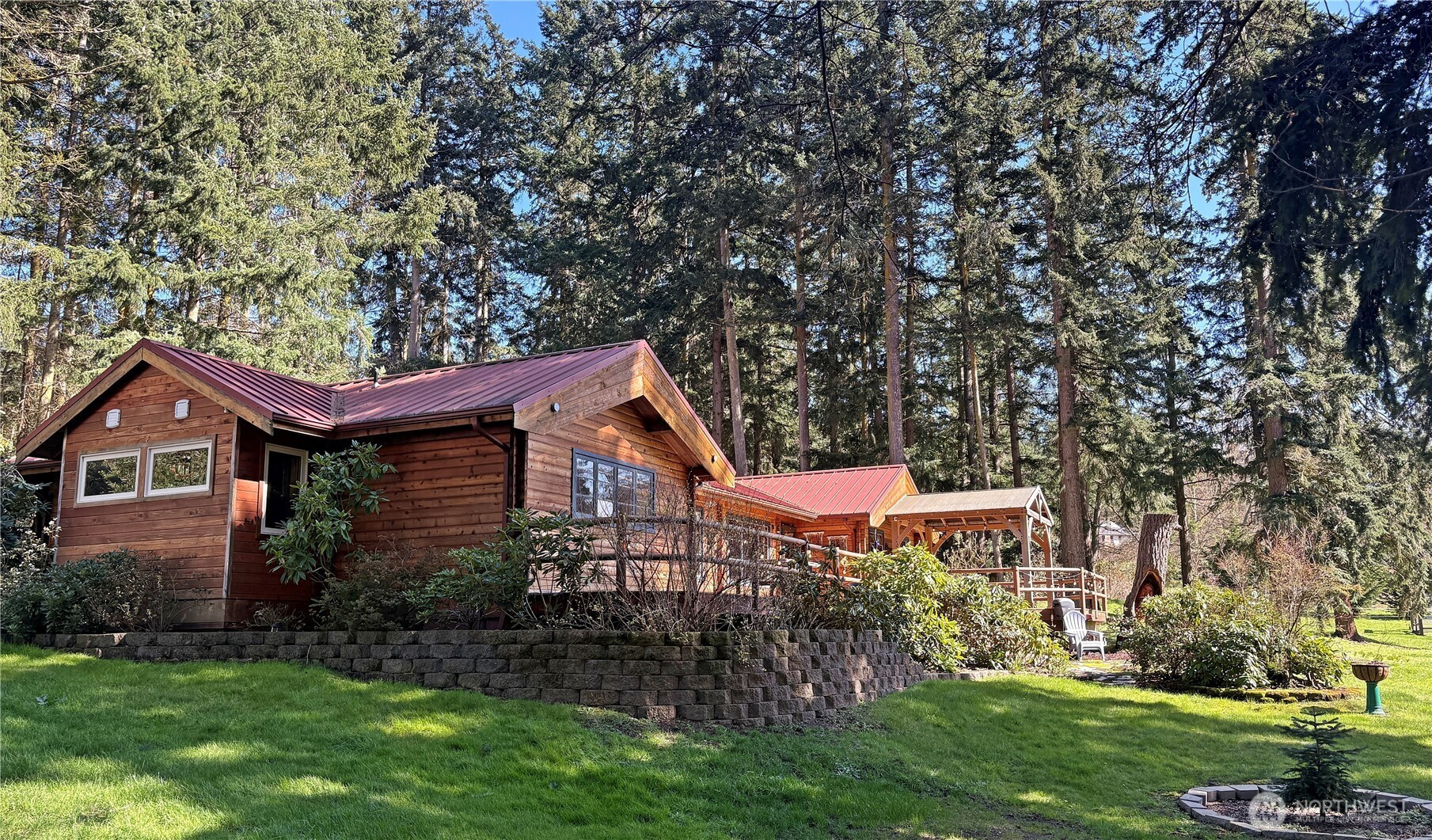 (503) 893-8874Spring is bursting out right here! Charming Pan Abode Log rambler on 5 sunny acres. Main living space features a Great Room w/custom river-rock stone fireplace w/stone chimney on outside wall. Skylights! Renovated beautiful kitchen, new lighting fixtures, new interior doors & new flooring. Heat pump & mini split system, cozy wood stove can heat the entire home. Excellent Indoor/Outdoor living; next to the main living areas is a huge 937 sq ft deck w/a covered Pavilion. Perfect for morning coffee, BBQs & sunsets! Gardeners will love the 2/3 acre deer-fenced gardens w/small orchard & raised garden beds. The architecturally impressive 329 sq ft glass enclosed Garden Gazebo has been called "the best I've ever seen", it's a great creative space that will capture your imagination. A prior owner taught gardening classes there. Delightful hanging furniture in Gazebo stays. Also a garden shed w/outside potting area, two decks & electricity. Large detached garage/shop is perfect for storage, hobbies, extra space or a home-based business with 1008 sq ft shop/garage on main level + 429 sq ft of upstairs storage. Attached is a tall, deep carport. RV parking too. Quiet, beautiful, open & bright, w/wooded sections for privacy. Circular driveway, easy in/out. Great Freeland location near Bush Point & Robinson Beaches at Mutiny Bay, also near miles of tranquil wooded conservation land trails. Spend some time perusing the details in person. Watch the video to see more details.
