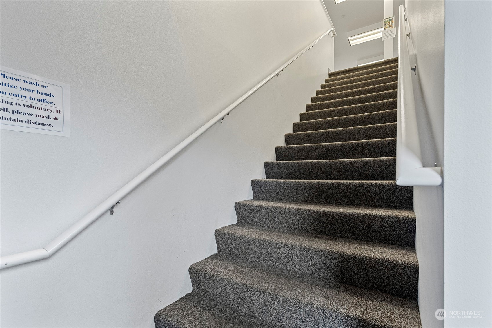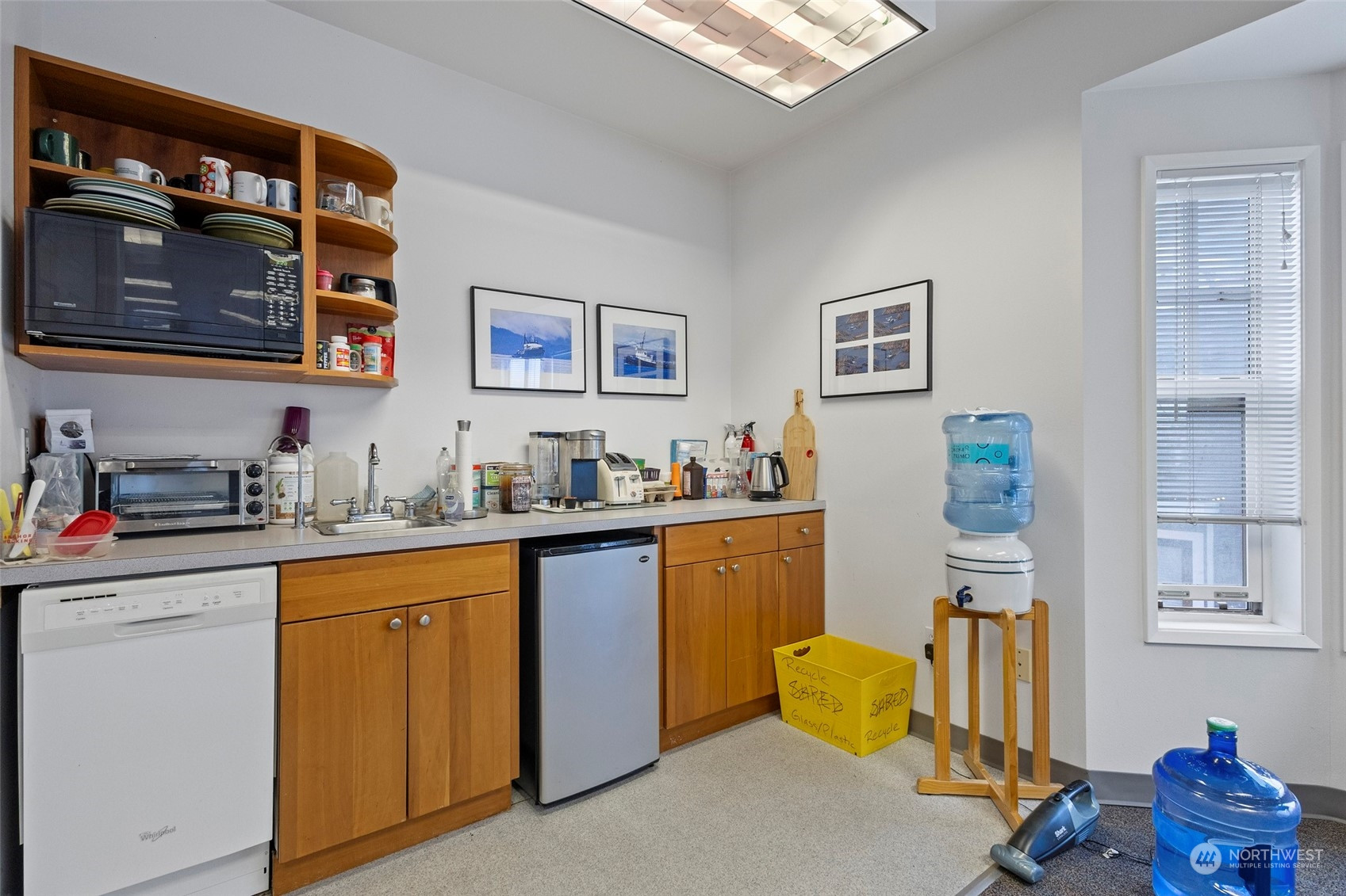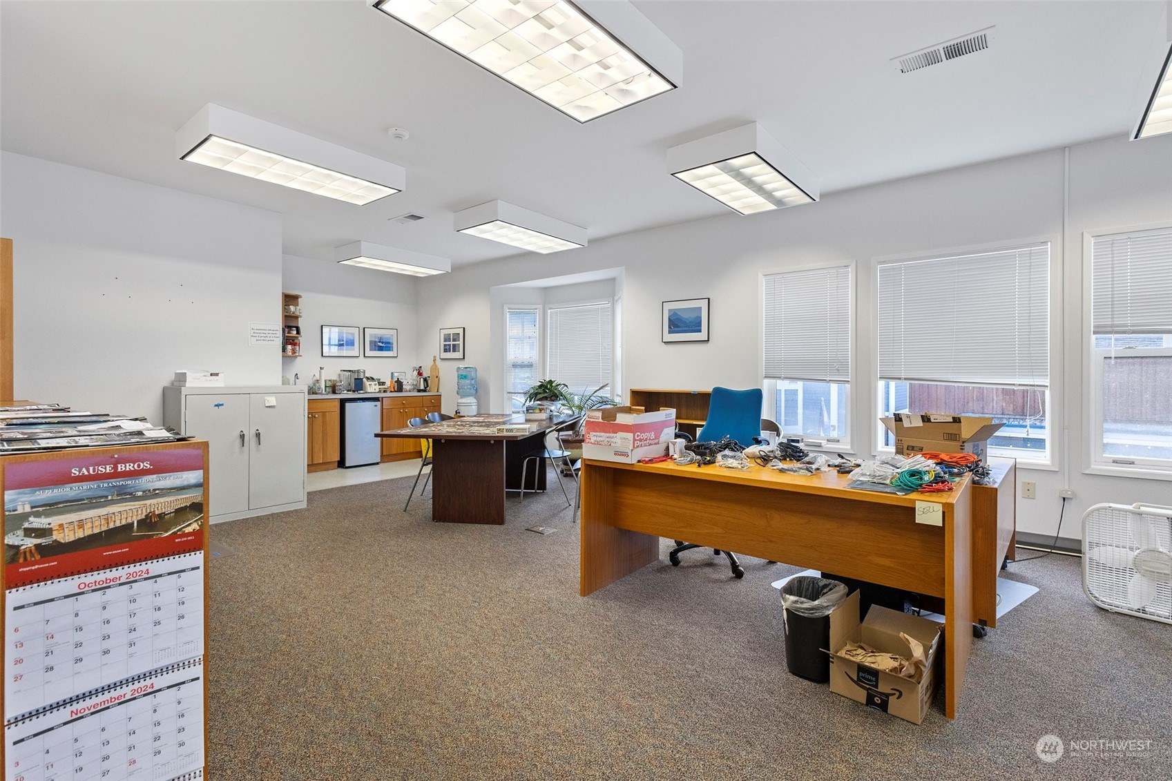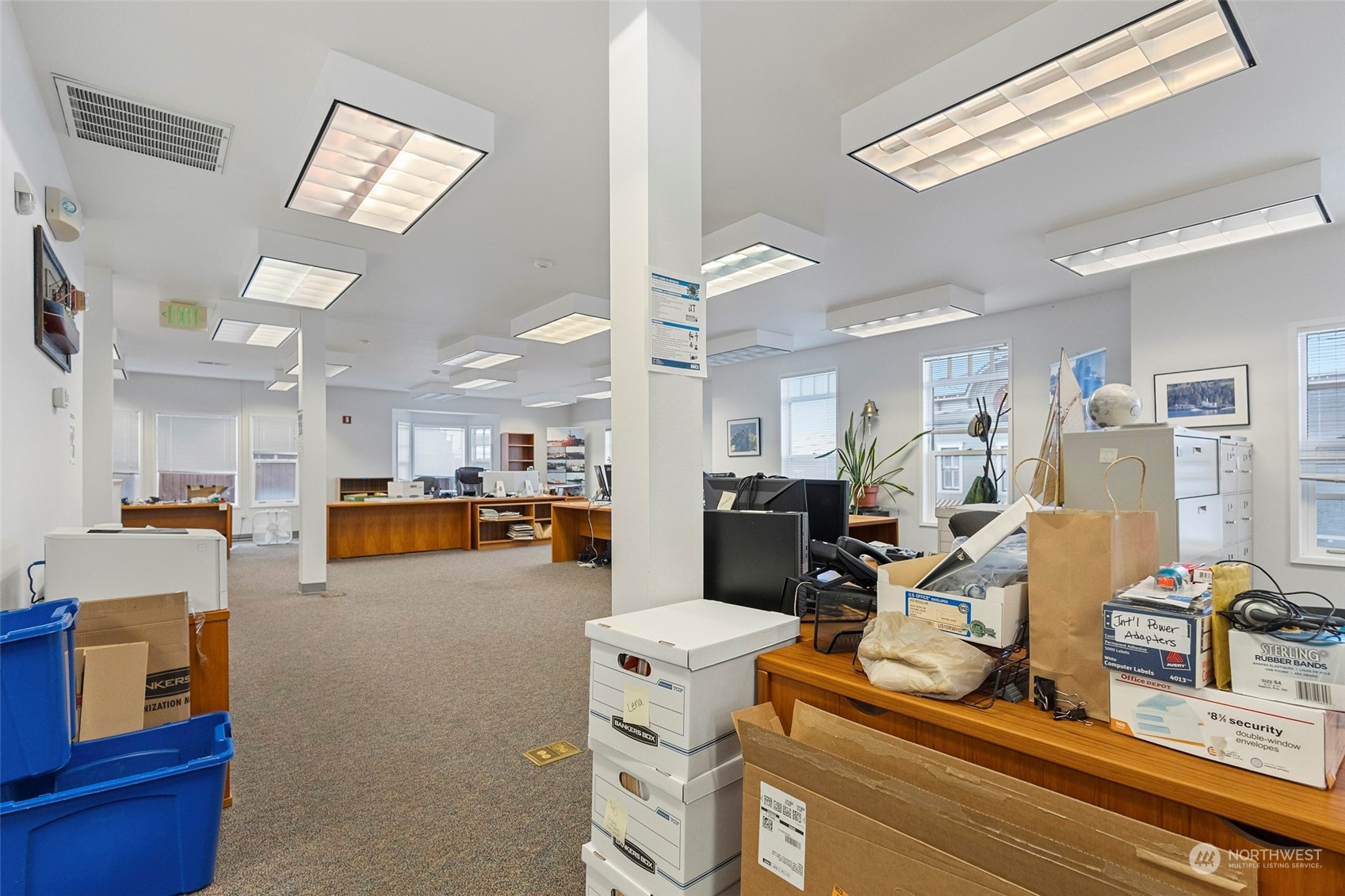 Large open office space with two bathrooms and kitchenette area. Server room separate with heating/cooling. Second floor office space with a view of Penn Cove. Space can be divided for two tenants. There are two stairwells and two ADA compliant bathrooms. Rent is $16.41 SF and NNN is $3.15 SF.