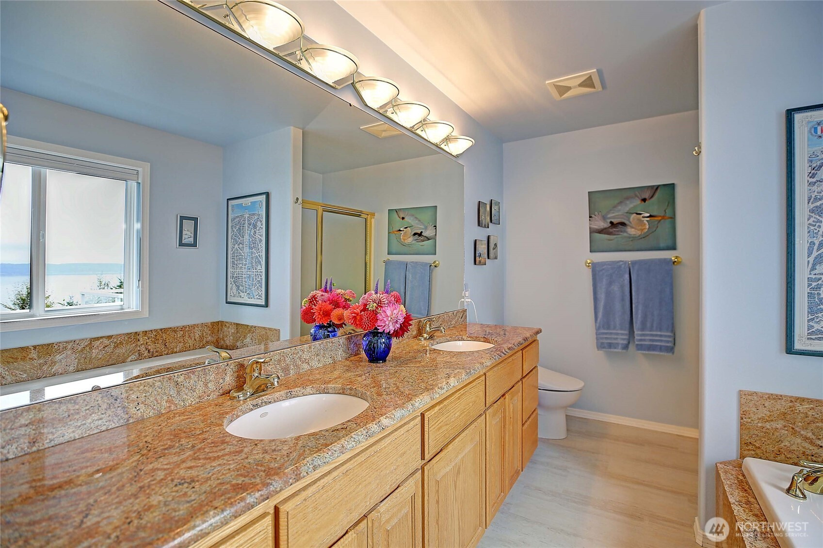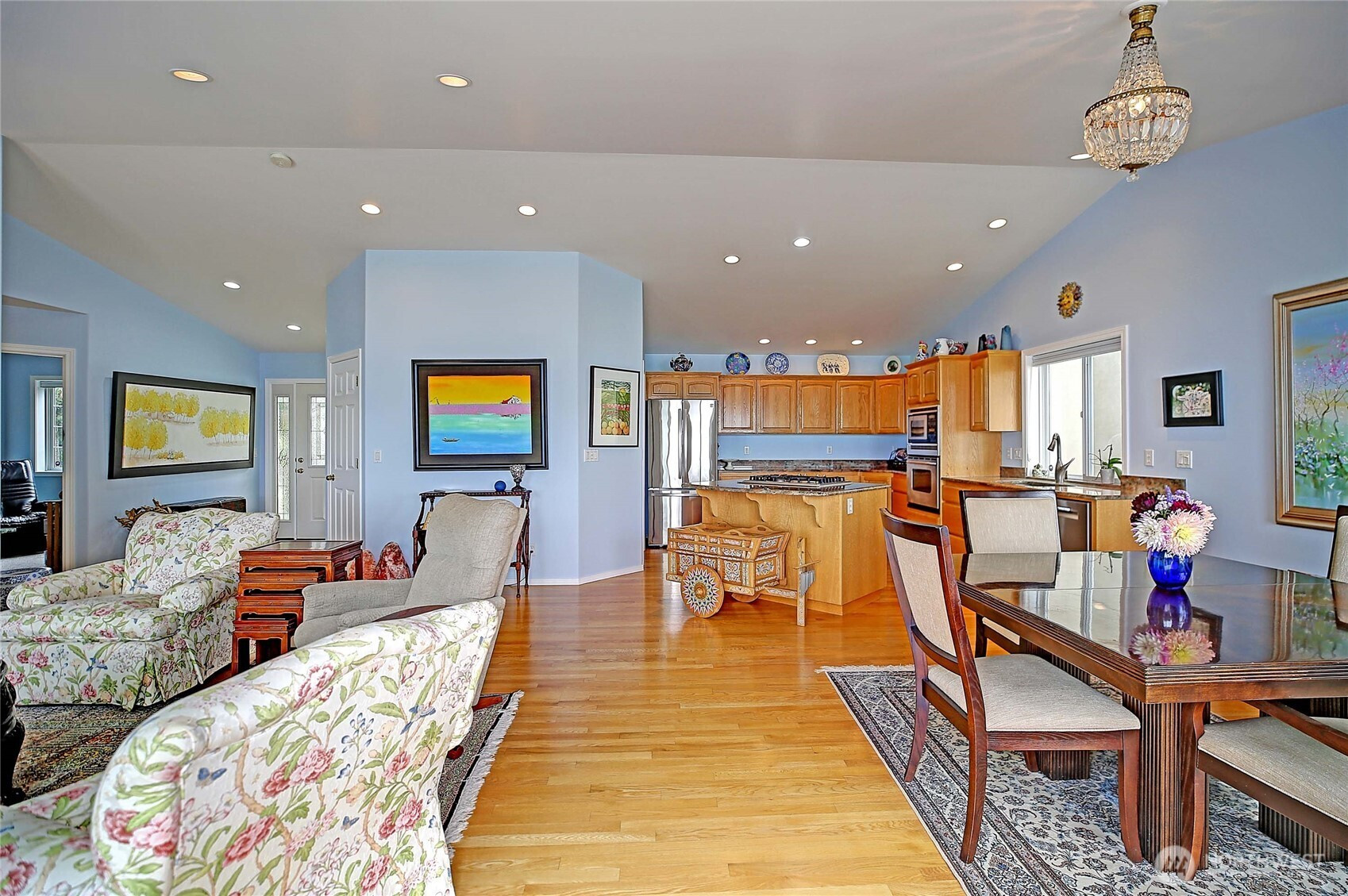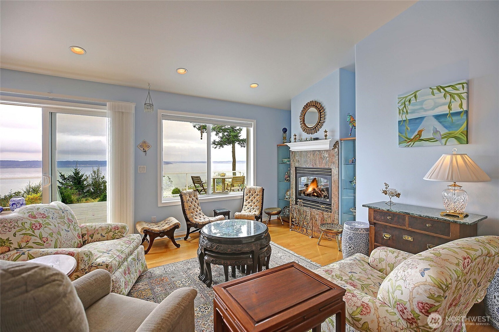 Experience island living at its finest in this west-side Camano view home, situated on 65 feet of level, high-bluff waterfront! Property stretches to the shoreline, offering a rare opportunity for true waterfront ownership. Custom-built, this rambler showcases thoughtful design & timeless craftsmanship, oriented to capture sweeping views of Saratoga Passage, Whidbey Island, Olympic Mountains, & west-side sunsets. Inside, the open-concept layout features granite countertops, hardwood floors, abundant windows, & seamless flow between living, dining, & outdoor spaces w/oversized deck extending the living space outdoors. From soaring eagles overhead to boats passing below, have a front-row seat to the beauty of the PNW. Welcome home!