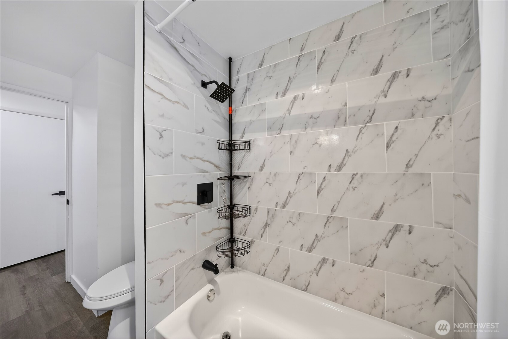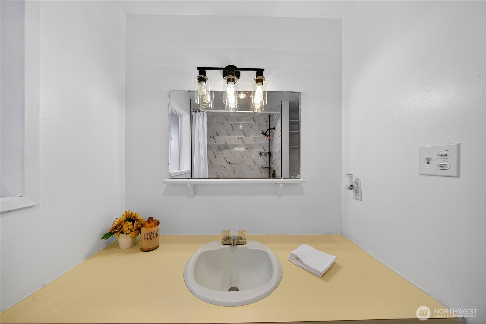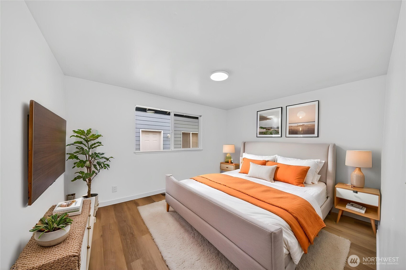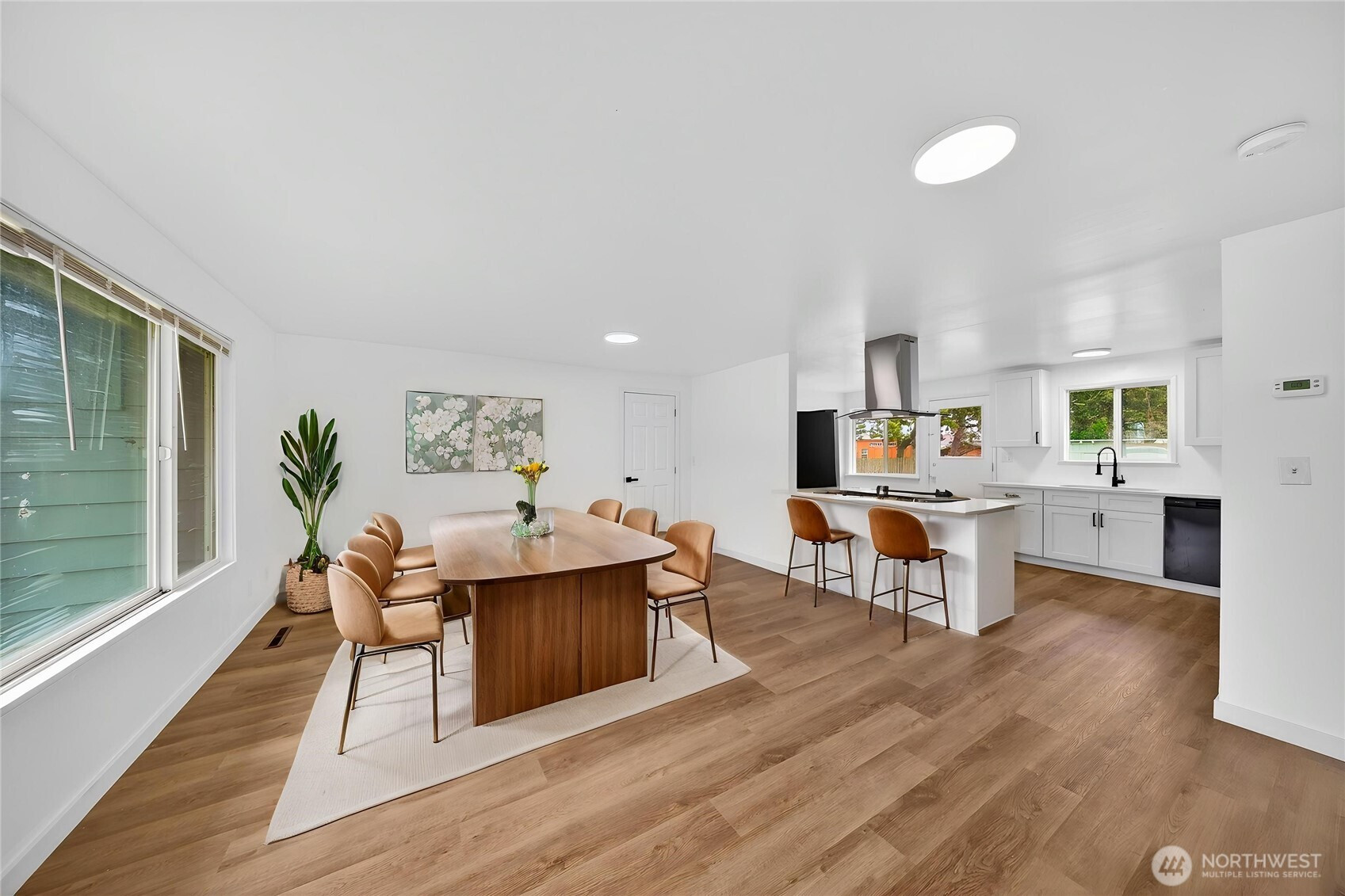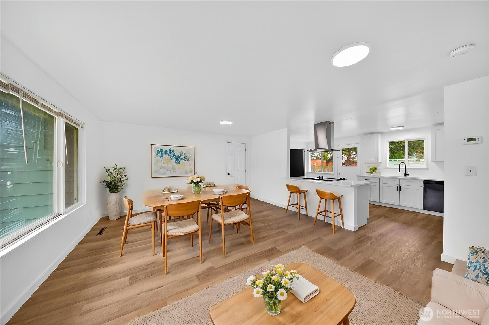 Move-in ready and refreshed, this charming single-level home offers comfort, space, and a location that makes everyday living easy. Step inside to a bright, open layout featuring updated flooring, fresh interior finishes, and a beautifully remodeled kitchen with crisp white cabinetry, modern hardware, sleek countertops, and an oversized island perfect for gathering, dining, or entertaining. The spacious living and dining areas flow seamlessly, filled with natural light and designed for both relaxed living and hosting. The updated bathroom showcases stylish tile work and contemporary fixtures, creating a clean, modern feel. Outside, enjoy a large, level yard with mature trees, plenty of room to play, garden, or expand your outdoor vision. The detached garage and extended driveway provide ample parking, storage, or workspace flexibility. A standout feature is the separate studio unit located with the garage, complete with a full bathroom and a semi-finished kitchenette—ideal for rental income, guests, or a private in-law suite. Ideally located near shopping, dining, schools, and waterfront access, you get the best of convenience and lifestyle right at your doorstep. This is a home you can step into with confidence and start enjoying immediately.