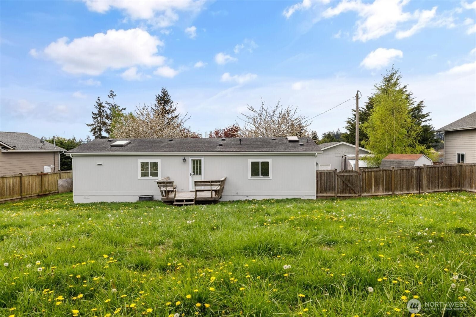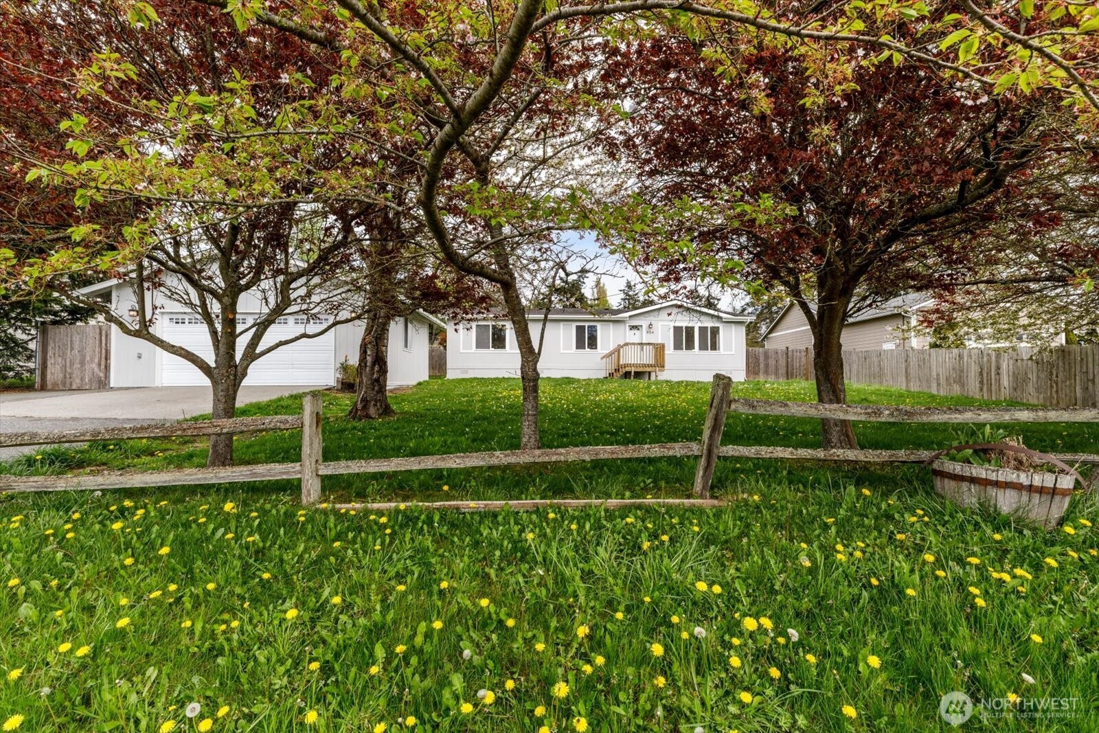Set on a spacious 18,000+ sq ft lot in a desirable location just south of Oak Harbor, this beautifully updated double-wide manufactured home offers comfort, flexibility, and room to enjoy the outdoors. Featuring 2 bedrooms plus a large office/den that could easily serve as a 3rd bedroom, and 2 bathrooms including a private primary suite. The home has been thoughtfully refreshed with new carpet and fresh interior and exterior paint. The kitchen showcases warm wood cabinetry, stainless steel appliances, and durable laminate flooring that flows through the kitchen, dining, entry and bathroom areas. Utility room near the back of the home opens to a deck and private backyard. Outside, mature trees provide privacy and shade, with ample space for gardening, entertaining, or future possibilities such as an ADU, shop or RV/boat storage. A detached two-car garage and additional utility shed offer excellent storage and workspace. Enjoy community amenities including a dock, boat launch, beach, play area, and pool, with residential water use included in the HOA dues. Perfect blend of peaceful living and recreational convenience just minutes from both Coupeville and Oak Harbor. Home is vacant and move in ready!
