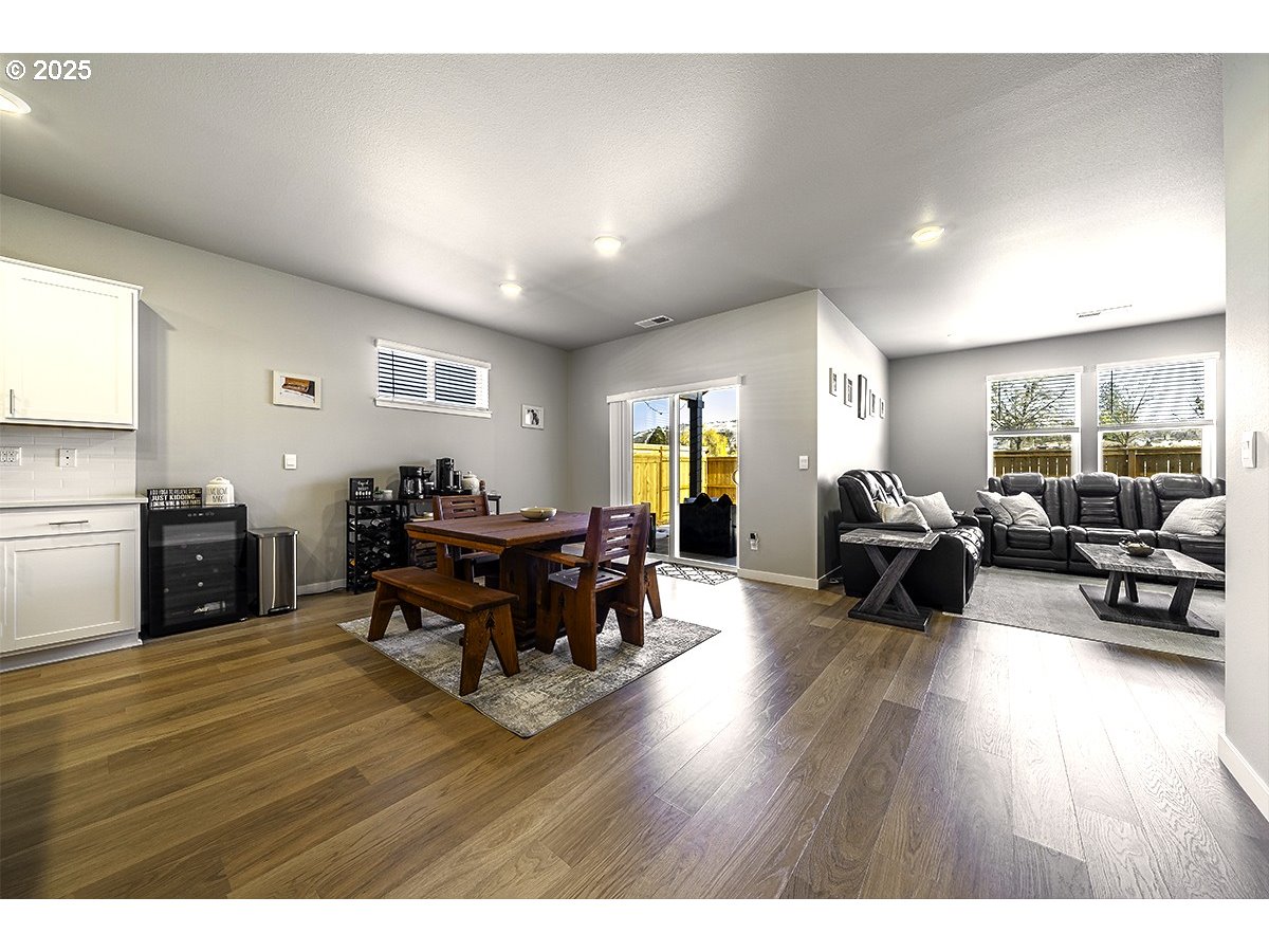NEW PRICE OR BUYER INCENTIVES! 2024-built single-level home with modern design, 4 bedrooms, a 3-car garage and full landscaping. Attractive, stone-clad exterior leads to the expansive open floor plan with contemporary styling, open living areas, sleek gas fireplace, open dining room & chef's kitchen with crisp white cabinetry, quartz countertops, stainless steel appliances, gas range, large island with dining bar seating, and pantry. Premium laminate flooring throughout the main living spaces adds warmth and a smooth finish. Lovely primary suite boasts a large walk-in, dual vanities, quartz counters, & a step-in shower. 3 additional bedrooms, a 2nd full bath, nice laundry room, high-efficiency heating, fenced rear yard, covered patio & an oversized 3-car garage complete this exceptional property. You will love it!