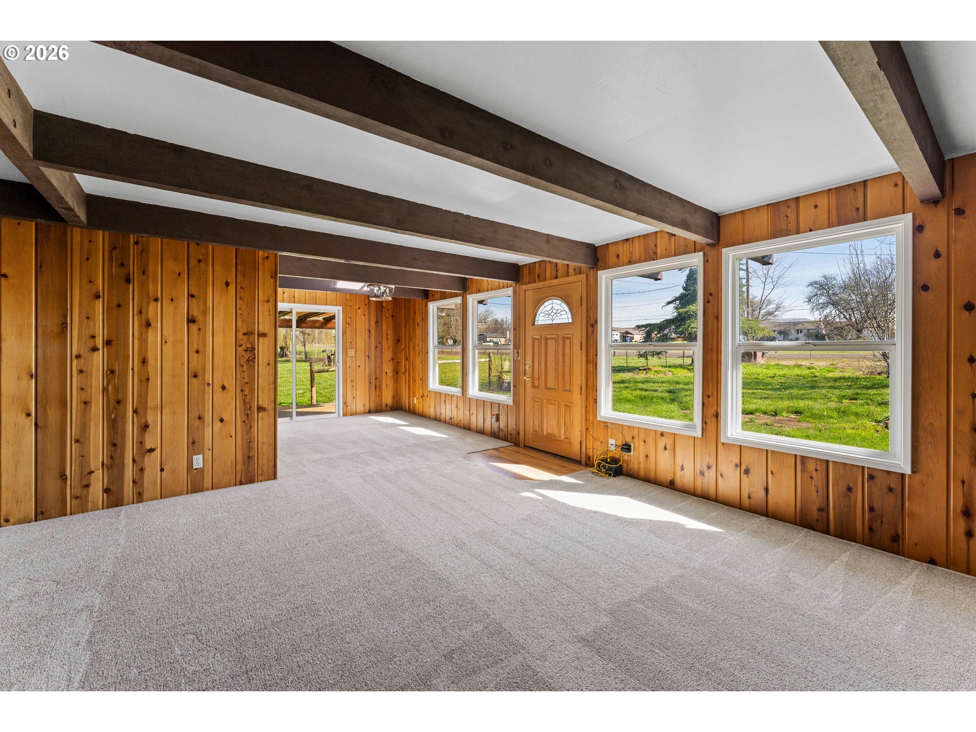 Welcome to this charming country farmhouse on 1.84 acres, where classic character meets thoughtful updates. This 4 bedroom, 2 bath home offers 1,521 sq ft with large windows bringing in abundant natural light while the fireplace adds warmth and cozy farmhouse charm. The home has been refreshed with new carpet, flooring, interior paint, modern fixtures, and updated bathrooms, making it move-in ready. Outside you'll find a large detached two-car garage with workshop area, fenced/ cross-fenced irrigation rights for 1.20ac., and plenty of room for a mini-farm, gardening, animals,FHA/4H projects, or simply enjoying the peaceful country lifestyle.