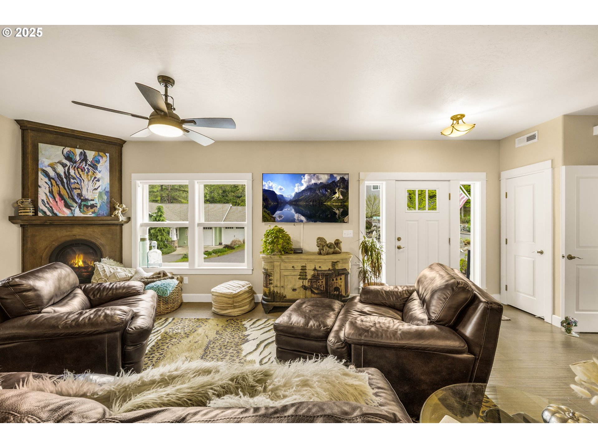 Open main living areas feature engineered wood floors, a gas f/p and a chef's kitchen equipped w/a 6-burner gas range, striking leathered granite & an expansive dining bar. The main-level primary suite offers a spa-like retreat w/dual sinks, oversized shower, & generous walk-in closet. A versatile office/4th bdrm, 1/2 bath, & a laundry/mudroom complete the main floor. Upstairs are 2 spacious bedrooms & full bath. Minutes from downtown where charming streets, boutique shops, fine dining & tasting rooms create the perfect small-town destination feel. Explore award-winning wineries on the famed Britt Wine Trail, enjoy summer concerts at the Britt Music Festival, browse local cafés & artisan stores, or the scenic trolley routes. With endless outdoor recreation, cultural events & year-round festivals, this location captures the best of Southern Oregon's lifestyle & tourism charm. A rare offering that combines timeless character and unbeatable access to the vibrant energy of Jacksonville.