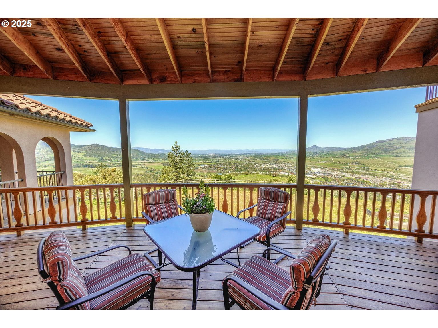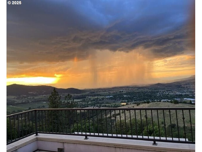 This may be the best view you will ever see! Astounding vistas stretch across the Rogue Valley, beyond the Table Rocks to the Western Cascades. Experience end of road privacy on this 25+ acre estate. This luxury residence presents an old world charm that is warm & inviting, designed for comfort & sophistication. The home features soaring beamed ceilings, stone fireplace, Ironwood cherry floors, walls of windows that extend to the expansive veranda with arched portals that frame the forever view. Large chef's kitchen with Viking Professional range, granite counters, large island & dining bar, formal & informal dining. Beautiful wood detailing features hemlock & knotty alder. Main level primary opens to veranda. 4 bedrooms, 4 baths, total of 4593 SF. Spacious art room/office plus large workshop. 3 car garage. Whether you're hosting gatherings or enjoying peaceful solitude, this home delivers with style, space & serenity -- all in a setting that captures the very best of high-end living.