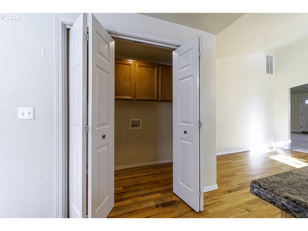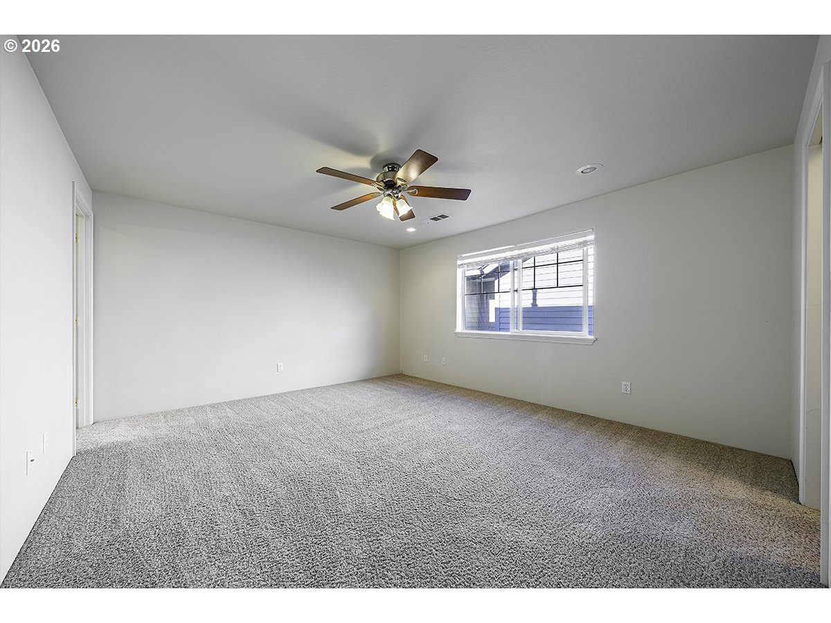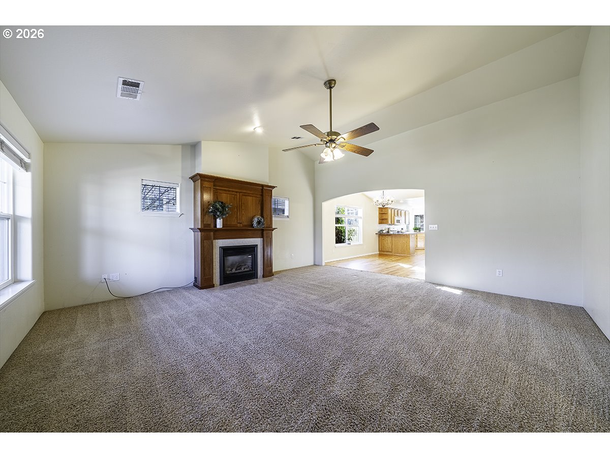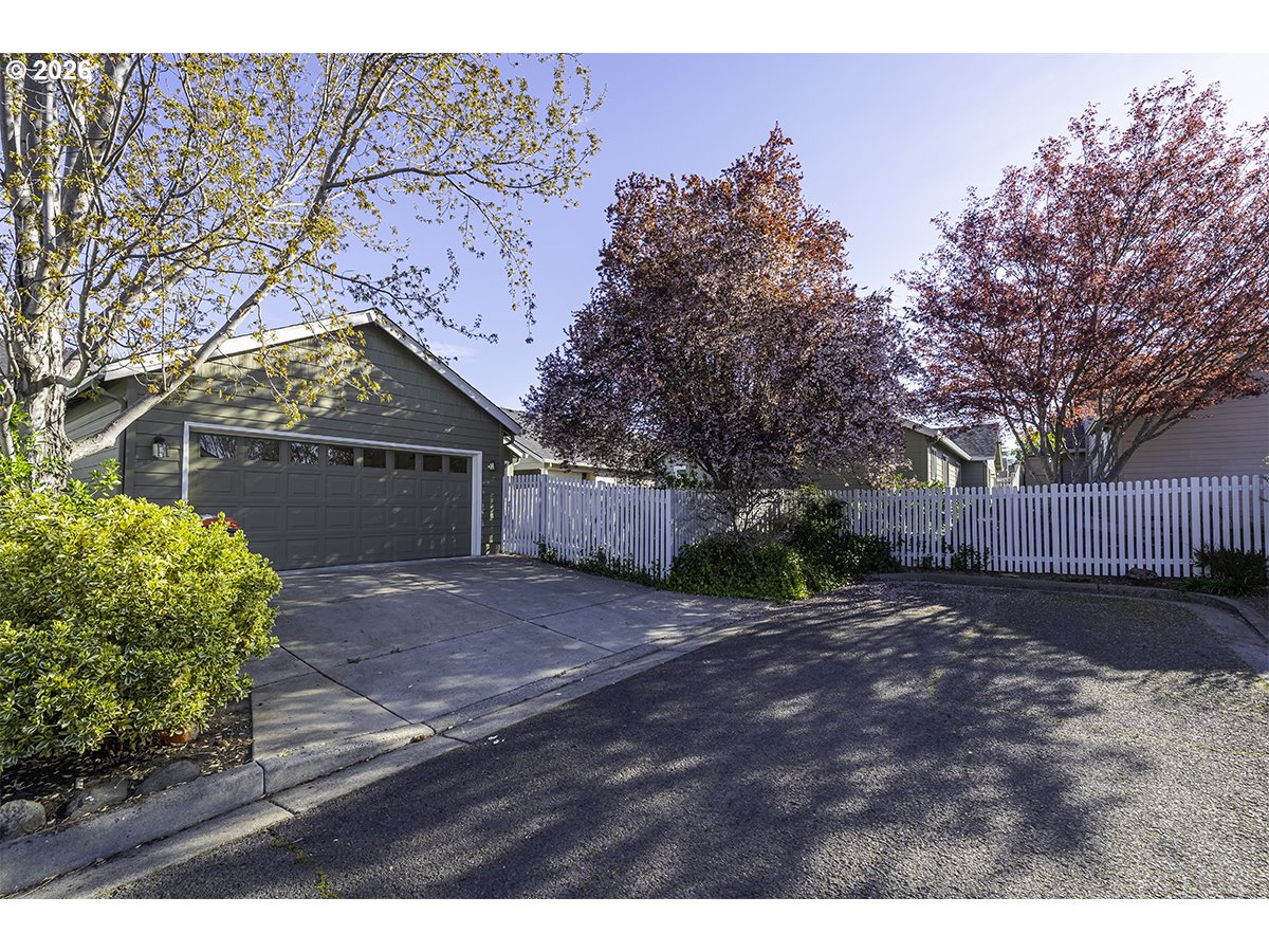You will love this single-level Craftsman-style home in the desirable Hidden Springs neighborhood in East Medford. A welcoming front porch leads into a light-filled interior with vaulted ceilings and spacious main living areas. Large windows fill the home with natural light, while the gas fireplace with tile surround and cherry-toned cabinetry creates a warm, inviting focal point. The living room flows seamlessly into the dining area and kitchen, both with rich hardwood flooring. The kitchen features a breakfast bar, stainless dishwasher, gas range, and corner sink overlooking the easy-care yard and patio. The primary suite offers a walk-in closet, ensuite bath, and oversized step-in shower. Two additional guest rooms and a full second bath are generously sized. Two-car garage with alley access and pull-down storage. Quiet location close to shopping, dining, and Asante Medical Center.