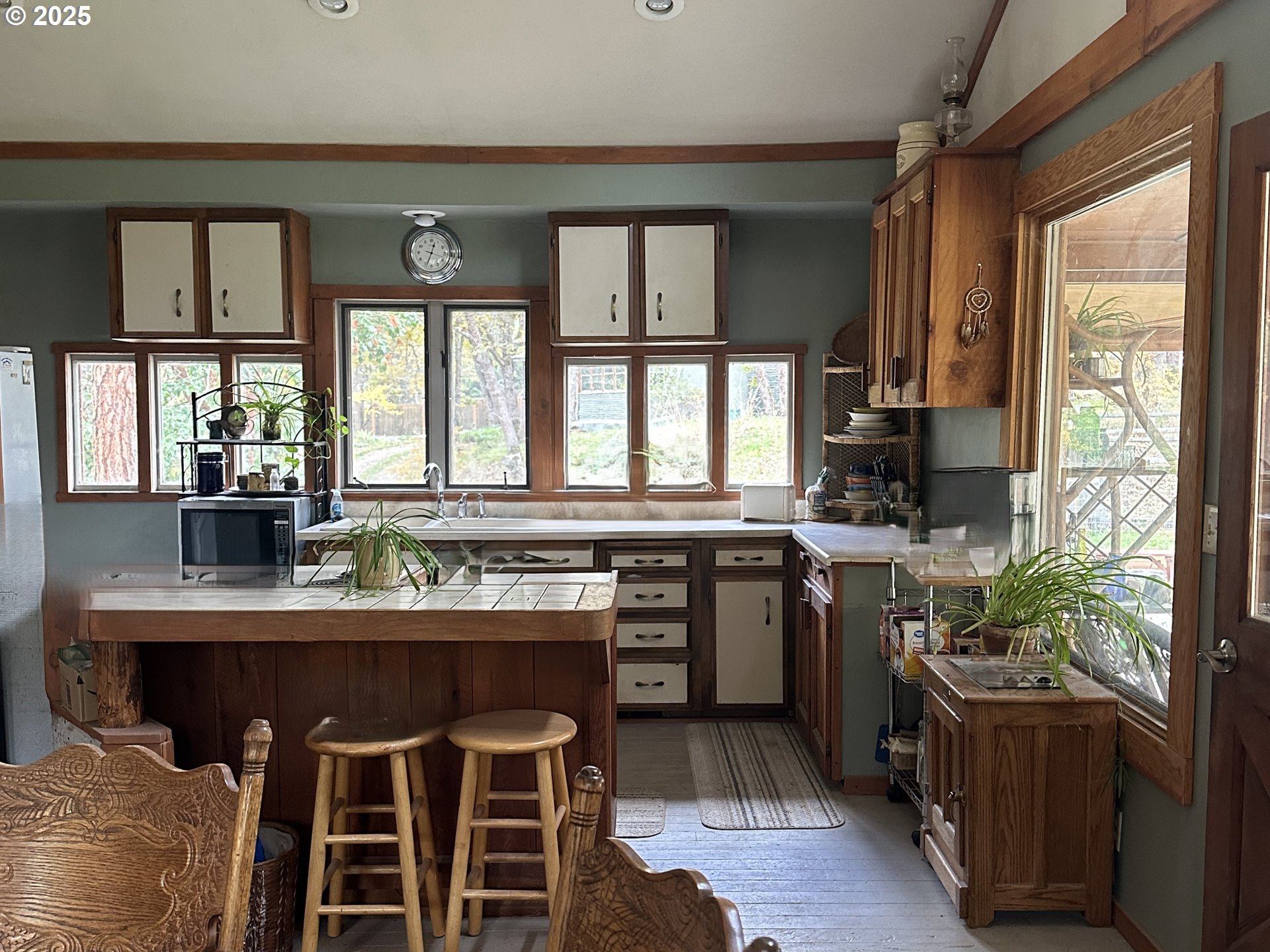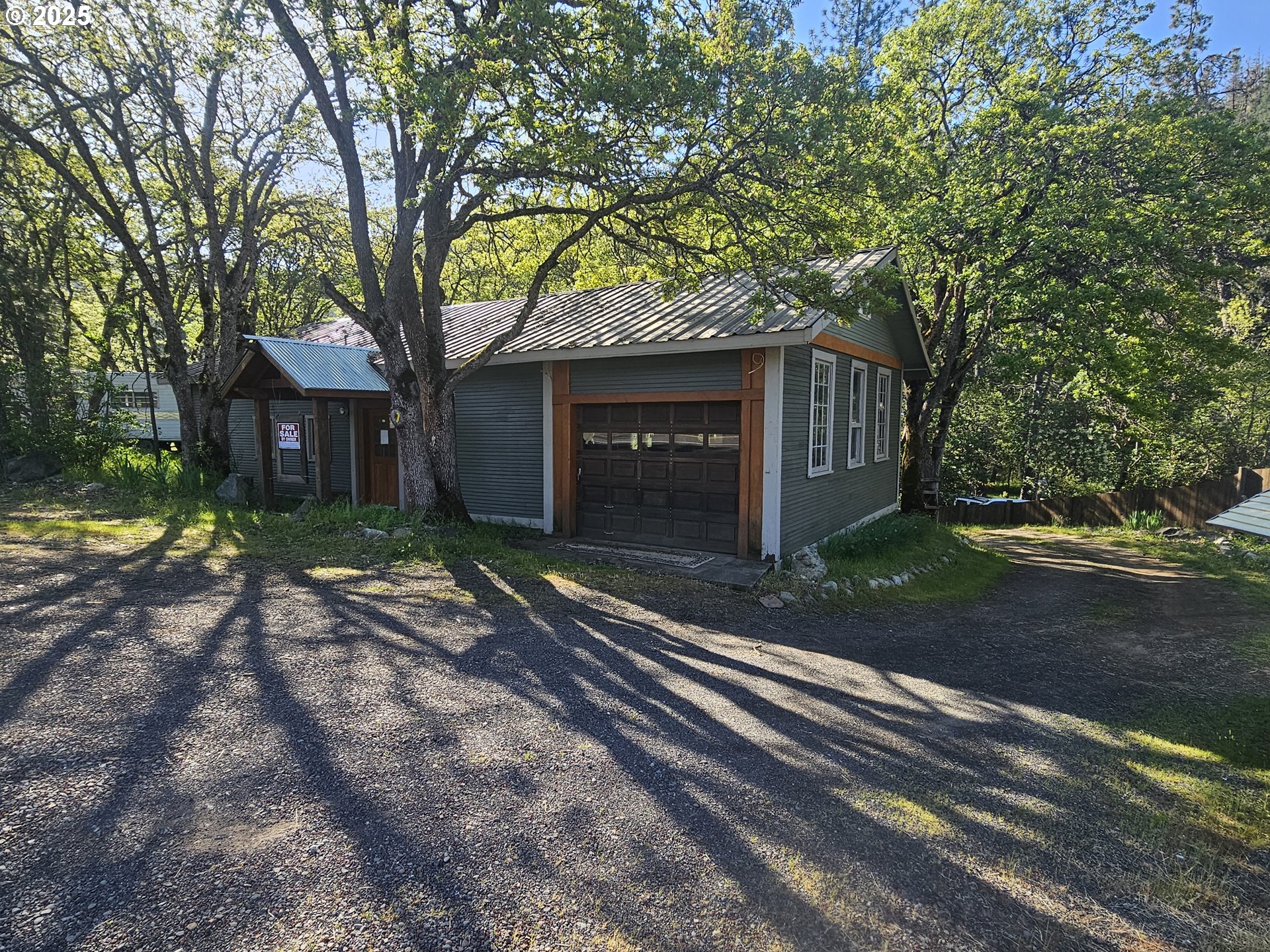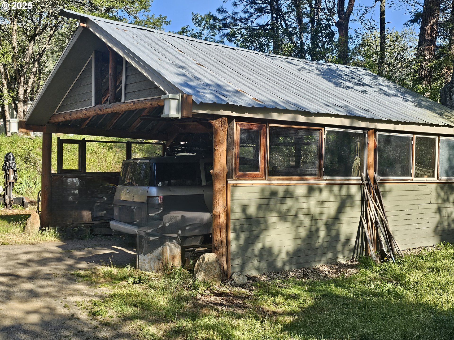(503) 893-8874Head to the hills! Bucolic 2.48 acres, bordering BLM land and Poorman's Creek, part of the old Pearce Placer Goldmining Claim in George Black Gulch.Remodeled throughout with vaulted and beamed ceilings, second kitchen, open floor plan. RV parking with water, power and septic hook-up. Workshop, garage and cabin.