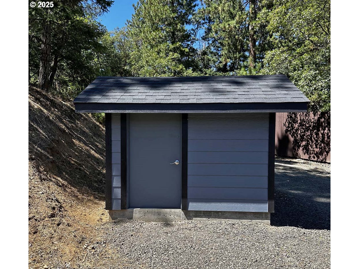 Rural residential land in the woods, improved with outbuildings and home site. Close to city of Ashland, yet feels like your own private escape at roughly 3,500 feet elevation. Deer, turkeys, quail, and other wildlife abound. Parcel is 2.15 acres on a beautiful hillside with extensive excavation work done. Gated access, private setting, partial mountain views through the evergreens. The sunny upper home site pad is leveled and has well pump building & holding tank. Lower area is shaded by tall trees and has an ADU-styled cottage outbuilding with oversized 1 car garage. Custom-built sauna building with a certified woodstove. Seasonal pond, pipe-fed from a creek running through the property with Mt Ashland snow melt. Medium sized solar vented greenhouse, plumbed from wellhouse. Clever temporary outhouse with flush toilet, gravity-fed from the well and mounted atop a concrete holding tank. Versatile shed sits next to the pond. Underground grid power is at the property entrance, not yet connected. Outbuildings are wired for future electricity and plumbed for water from the wellhouse. Well log and 2024 flow test report available.Ashland is famous for natural beauty, annual Shakespeare festival, restaurants, wineries, and culture. This property will not disappoint and is ready for the next owner to make it a forever home in the woods.