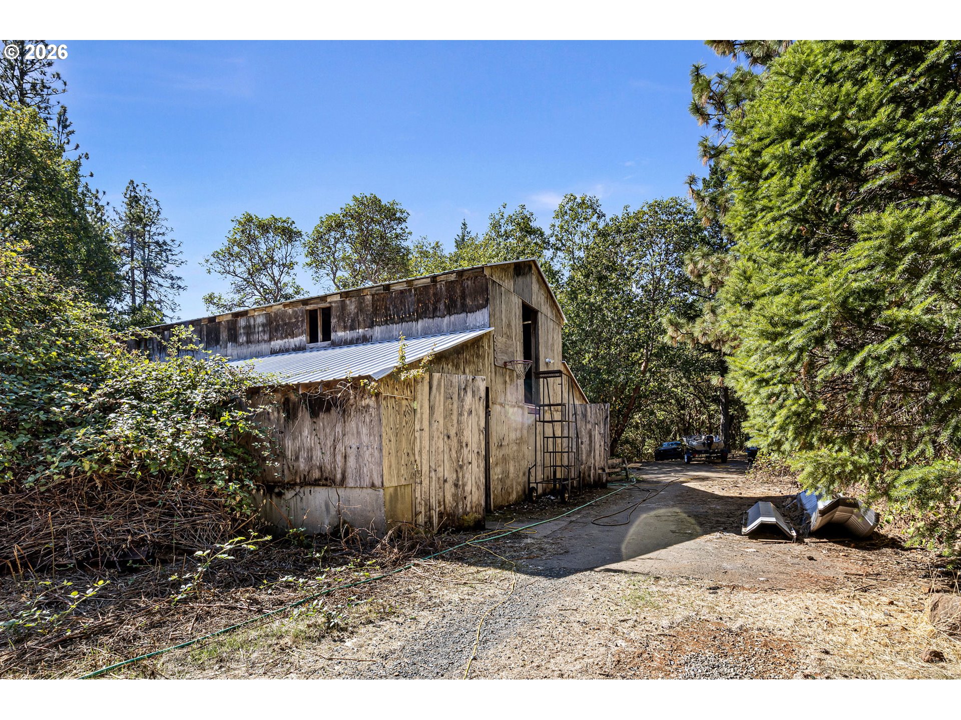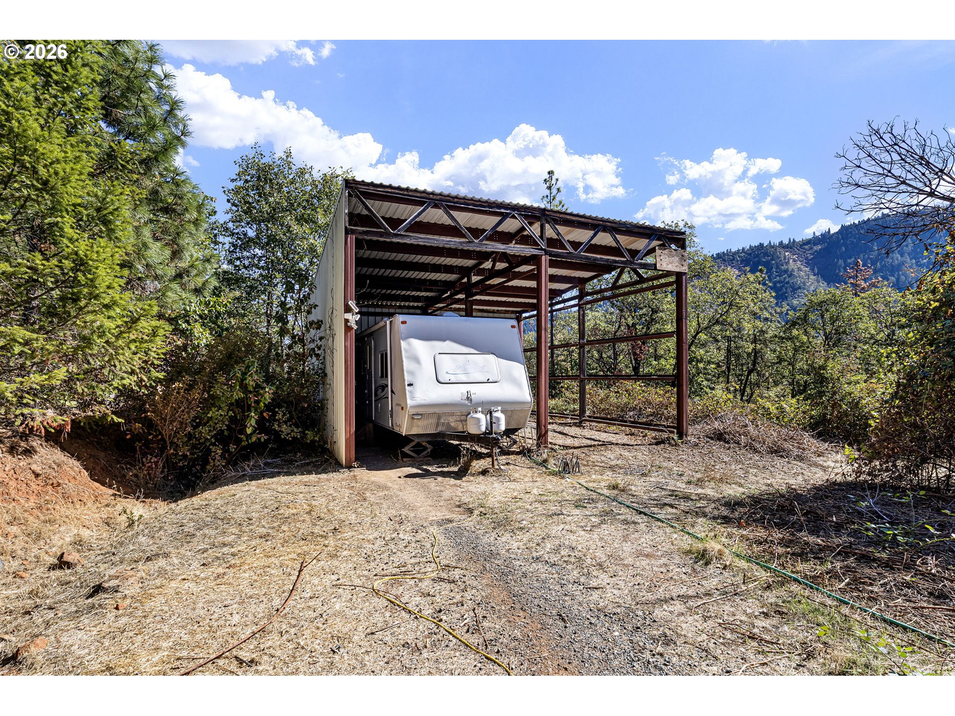 TAX DEFERRAL AND SUBDIVIDABLE / PRICE REDUCTION/ MOTIVATED SELLER! There is lending available for this property.Rare 96-Acre Mountain Retreat near the Rogue River! Don't forget to watch the video attached to this listing to see the beauty ofowning nearly an entire mountain with this exceptional 96-acre property offering privacy, natural beauty, and incrediblepotential. This nearly 1,800 sq. ft. older mobile home is perfect to update, replace, or live in while you build your dream home. Asecond dwelling may also be possible (buyer to verify).Enjoy a gardener’s paradise with a fully tall fenced ¼-acre garden complete with irrigation, plus a year-round irrigation stream that runs through the property. The expansive 2,000+ sq. ft. barn/workshop includes multiple rooms, ideal for storage, hobbies, or livestock. Additional amenities include an older hog pen, a large fenced dog run, multiple RV hookups, and several spacious carports for vehicles or equipment. The property spans both sides of the freeway, including land on the scenic Rogue River side—offering endless possibilities for recreation, shing, or future development. The long, paved driveway winds through the natural landscape, providing easy access and a beautiful approach to your mountain estate. Merchantable timber adds long-term value, and a great producing well provides reliable water. This is a truly unique opportunity to own a vast piece of Southern Oregon’s beauty—perfect for those seeking a private mountain retreat, working farm, or investment property with incredible potential. Buyer to verify all details and no showings without appointment.
