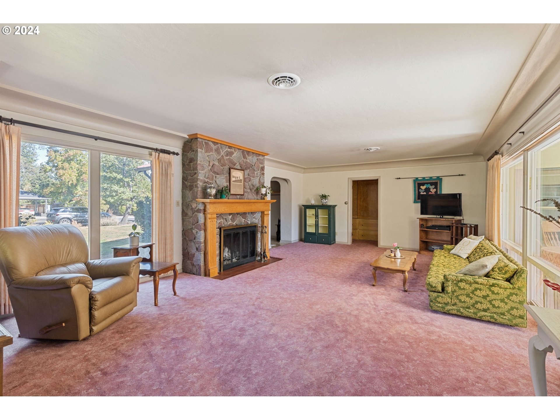 (503) 893-8874TWO residences plus HUGE shop all on .60 acre right in town! 2,052 SF mid-century main home built of natural stone has many classic touches: curved ceilings and walls, original vintage fixtures, built-in cabinetry and hardwood floors throughout, extra spacious rooms, formal dining room, and wood-burning fireplace for ambience. Updates include all new metal ductwork and new gas furnace, attic insulation, and new roof in 2022. A 1,488 SF 2bd/1ba apartment above the detached two-car garage, with three sizable bonus rooms, offer extra living and leisure space. The private deck to backyard & established garden area, complete with 8x8 greenhouse, provides a peaceful retreat. Shop is 34x52 with 3 bays, 220 power, and loft. Outside are two RV parking spots w 30A outlets + lots of add'l room for parking and recreation. Tucked away from the main road, yet convenient to amenities, this mini-compound is lovingly maintained and move-in ready! Shown by appointment only, pre-approval required.