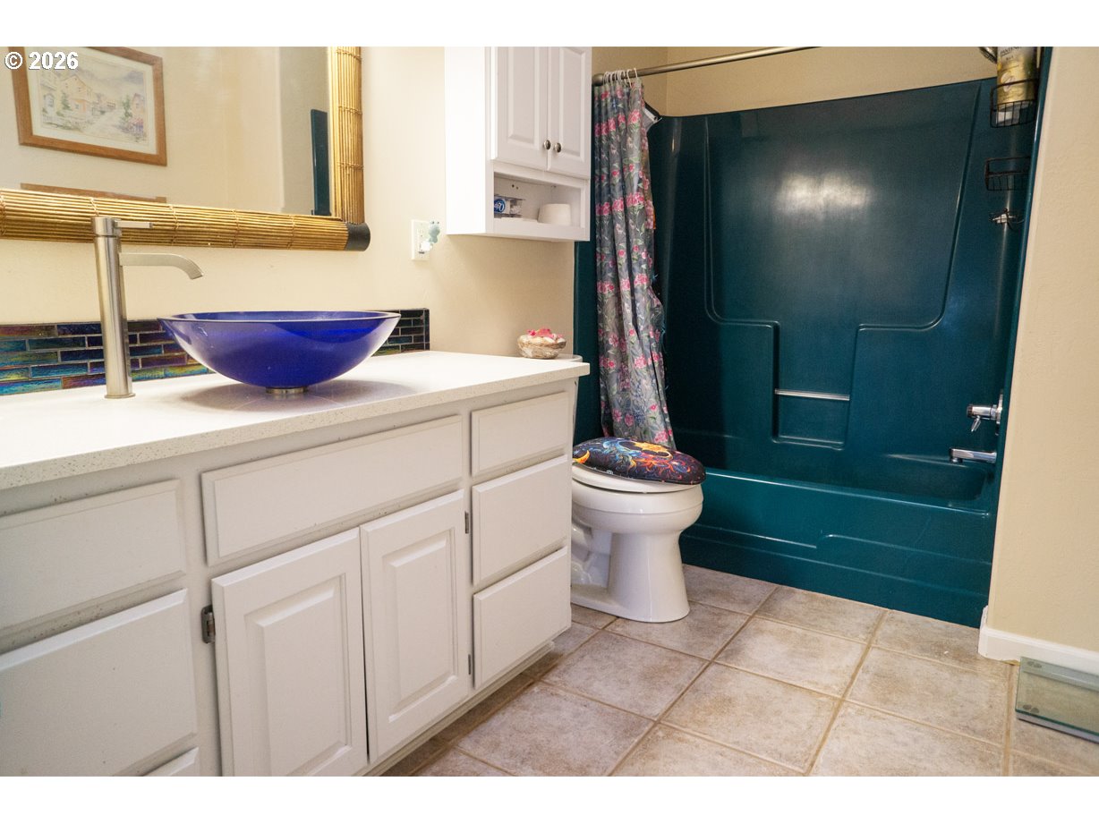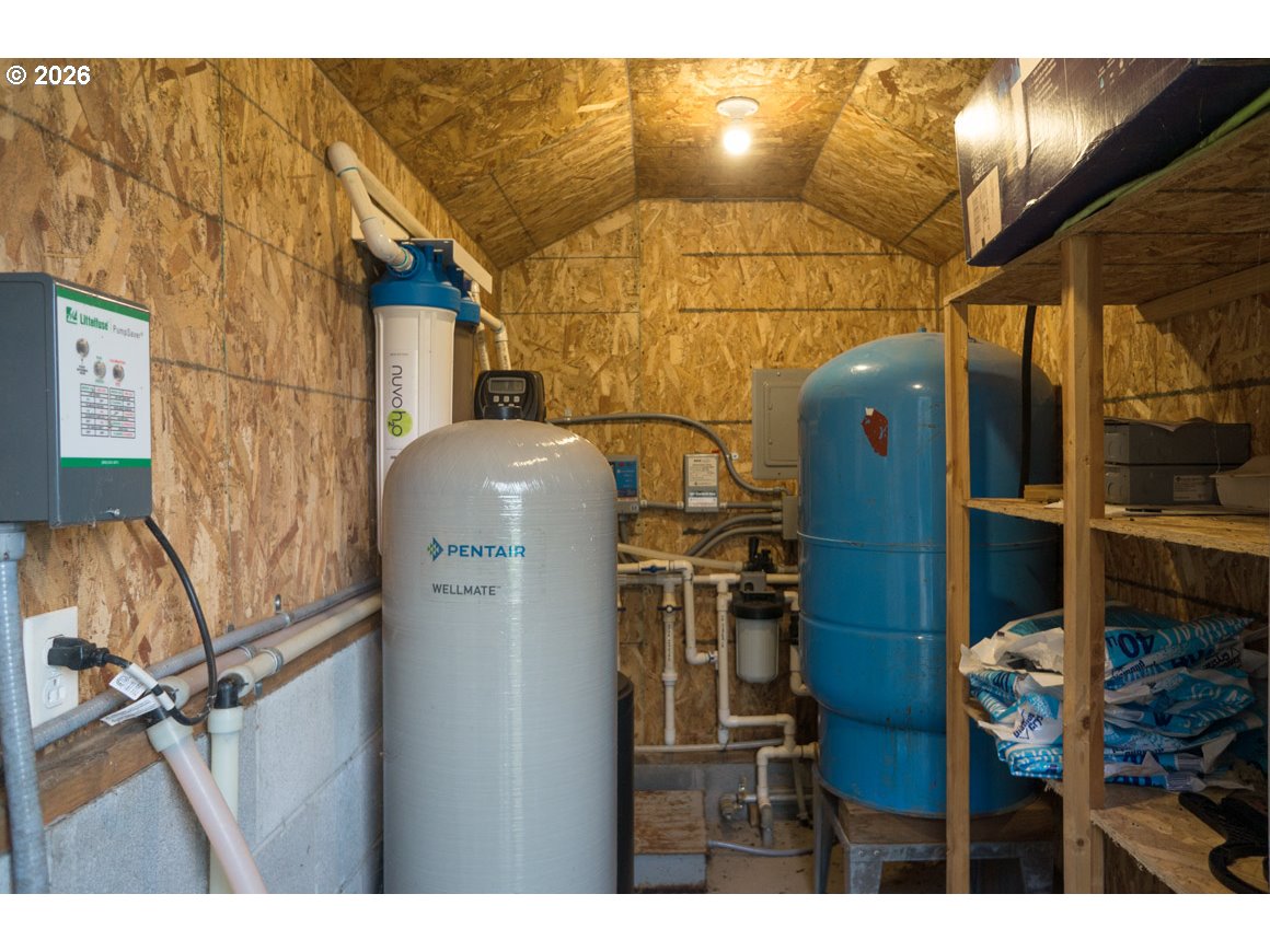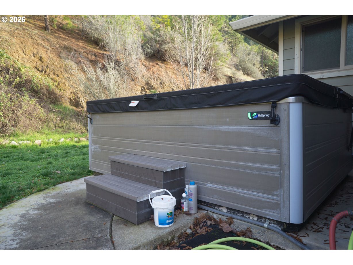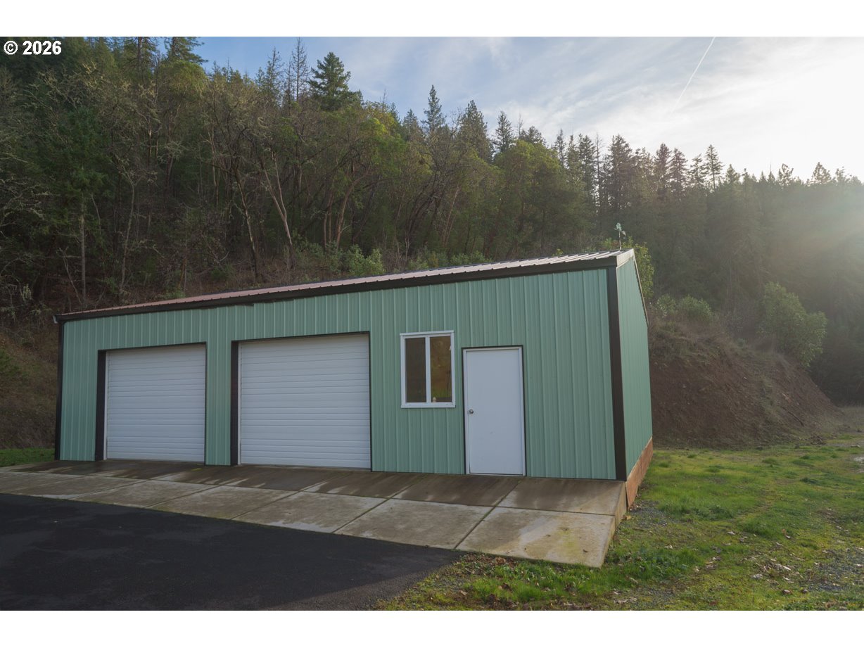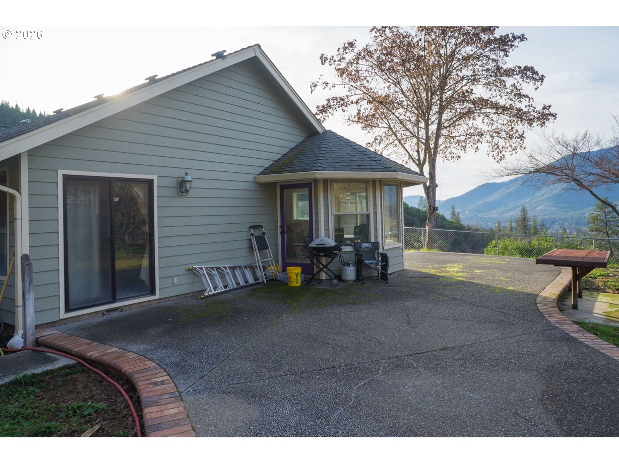 Peaceful home in the woods! Just outside the small city of Rogue River, with easy access to town and stunning views of the valley from the living room, kitchen, dining nook, and second bedroom. Partial split-level design: family room is three steps down; remainder of home is on main level, except for loft space above living room. Laundry room with deep sink and pass-through access to the attached garage. Large carport, shop building with oversized vehicle doors and insulated ceiling, Tuff Shed with workbench, and 30x40 greenhouse frame. High-end hot tub on back patio. Connection for generator. RV pad with power, water, and sewer hookups. Well house has water softener and 2,500 gallon storage tank behind. Small spring-fed pond near shop. 14+ acres of privacy with a paved, gated driveway and mixed forest with beautiful madrone trees. Backs up to Federal forest land. This scenic region offers hiking, rafting, fishing, hunting, wineries, the arts, and a mild climate. 15 minutes to Medford or Grants Pass for major shopping and Rogue Valley International Airport; 2 hours to the gorgeous southern Oregon coast and the redwoods; 1.5 hours to Crater Lake. Please do not drive in unaccompanied. Arrange a tour of this special property!