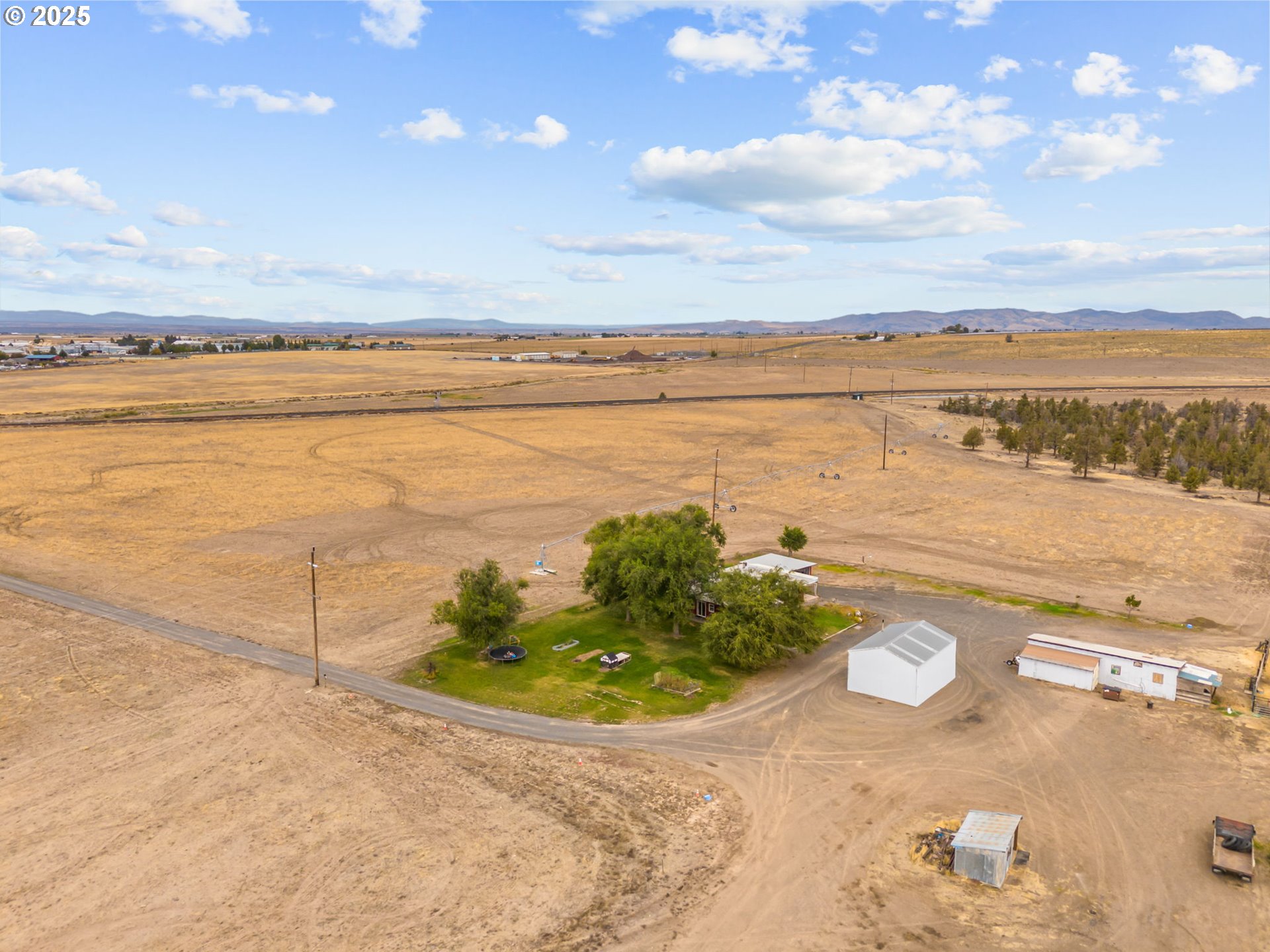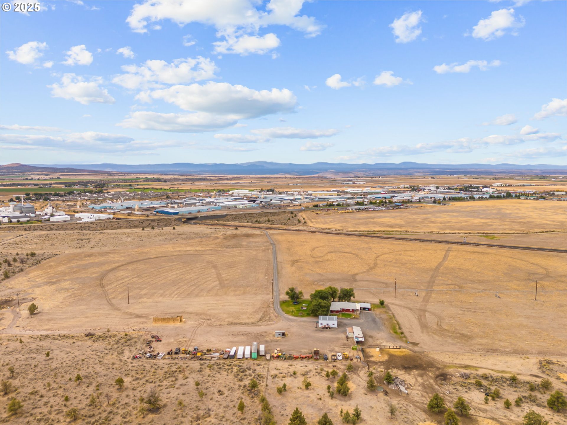 Positioned at the gateway of Central Oregon’s rapid expansion, this 158-acre property presents a rare chance to acquire land with immediate agricultural utility and extraordinary long-term development potential. Located north of Madras, directly on the Urban Growth Boundary (UGB) and across from existing commercial zoning, this property offers future residential, commercial, or mixed-use projects. Multiple access points and direct adjacency to the railroad, it is strategically situated for both growth and connectivity. 76 acres of irrigation rights, providing interim income potential and agricultural viability while awaiting development. Panoramic 360-degree views and diverse topography, enhancing both development flexibility and marketability. Farmhouse & Outbuildings: A 3-bed, 1-bath home with sunporch, plus shop, bunkhouse/storage shed, and mature landscaping—suitable for on-site management or interim rental income. Infrastructure upgrades (2023): new water line, new irrigation pivot with buried mainline, plus wheel lines and hand lines. With Central Oregon experiencing sustained population growth and economic expansion, properties with this proximity to the UGB, commercial zoning, and transportation corridors are increasingly rare. This offering provides a unique opportunity to secure a strategic landholding with both current income and future development upside.