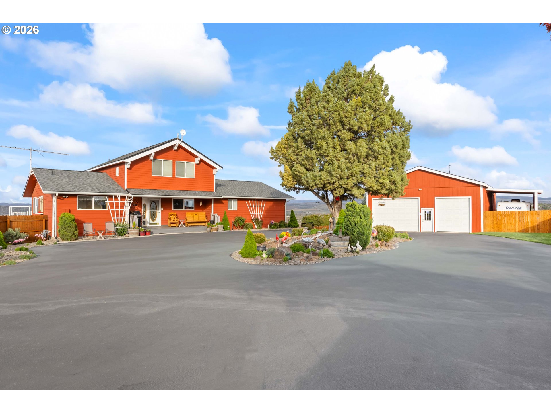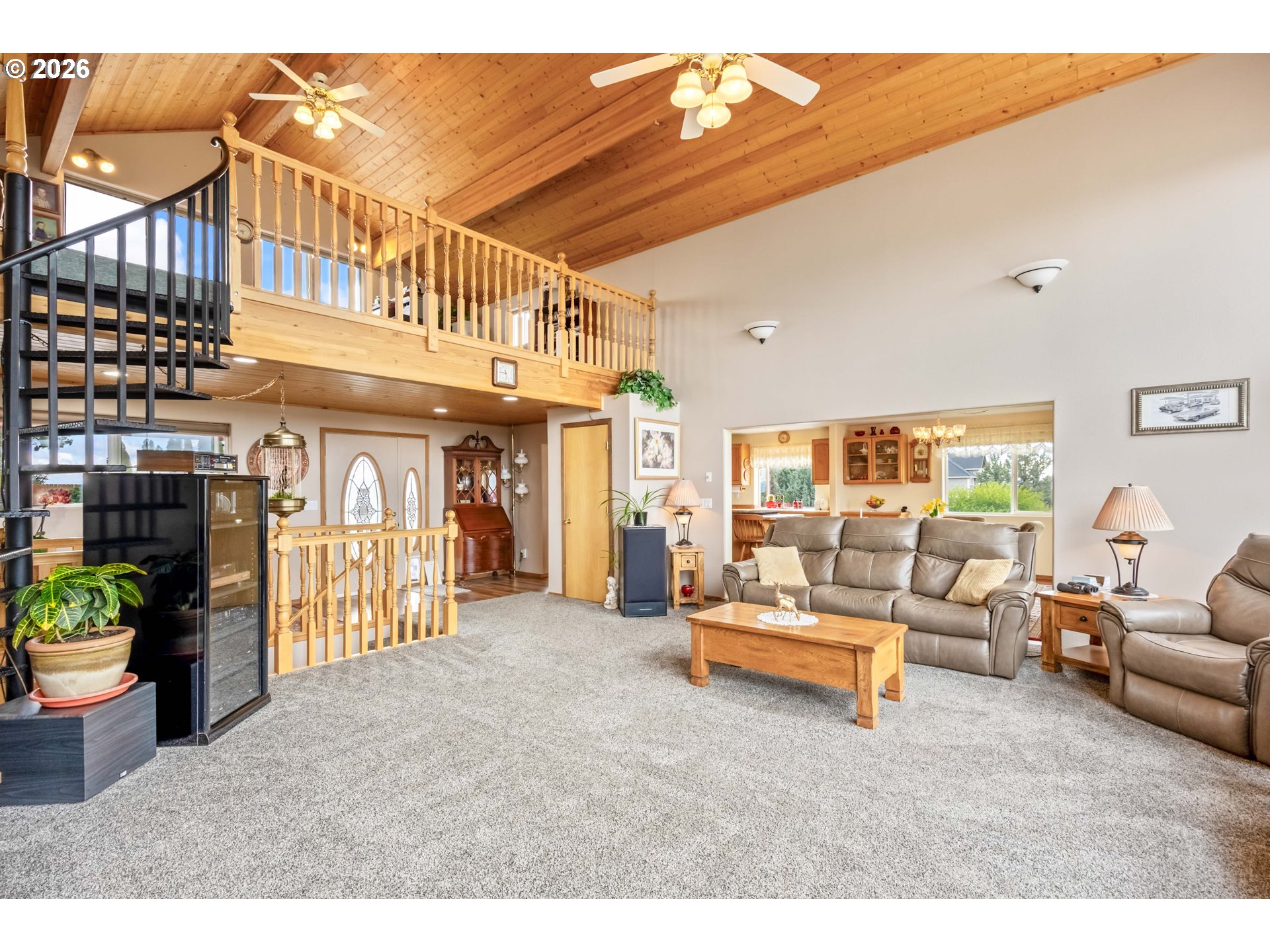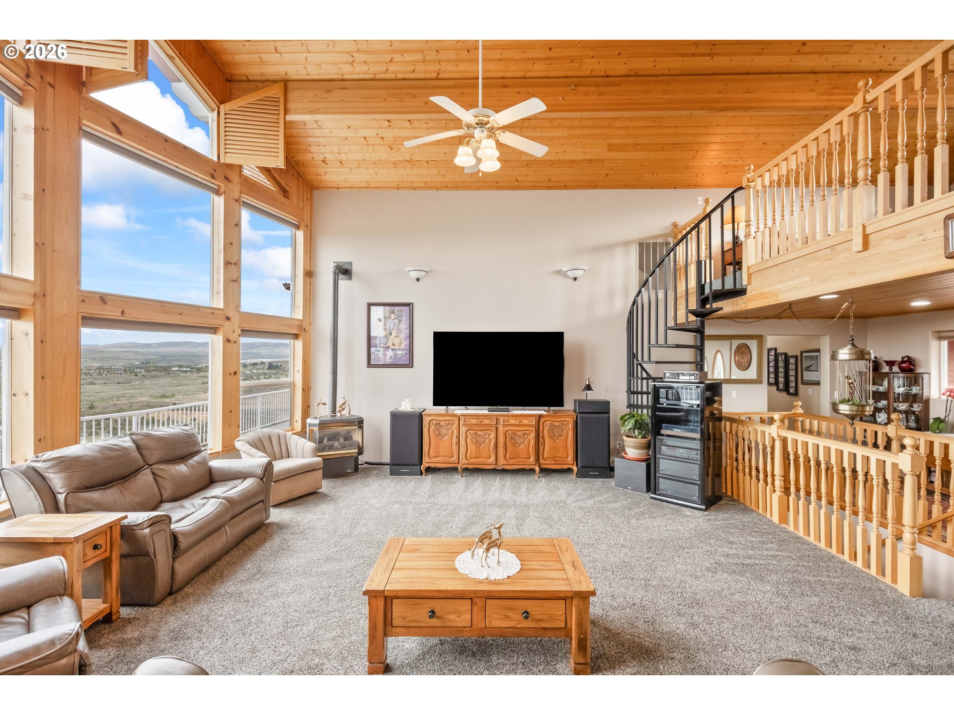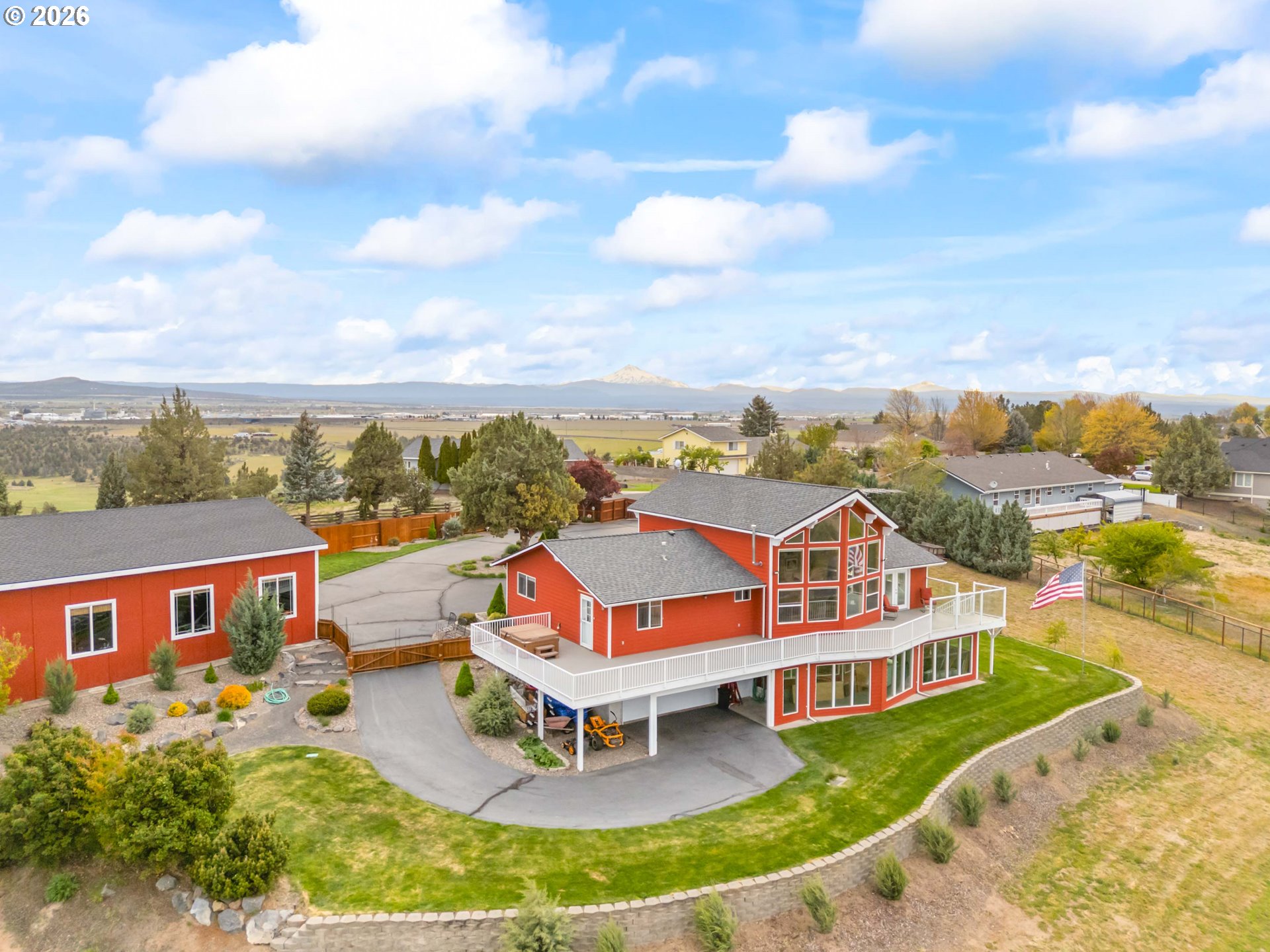 (503) 893-8874Incredible valley and mountain views set the stage for this beautifully maintained 4 bed, 2.5 bath home with over 3,000 sqft of living space! Soaring ceilings, massive picture windows, a loft, and a spiral staircase create a stunning first impression and fill the home with natural light. The open living room and bright kitchen offers plenty of storage, an island cooktop, and great flow for everyday living and entertaining. Enjoy the sunroom and take in the breathtaking scenery from nearly every room. Outside, the meticulously cared for yard is fully fenced and features underground sprinklers, a full drip system, green house, mature plum, peach and apple trees, and hot tub hookup. Located in a desirable neighborhood, the paved driveway leads to a large 32 x 48 shop with plenty of room for projects, storage, and toys. RV parking and dump add extra convenience. A rare combination of views, space, and functionality!