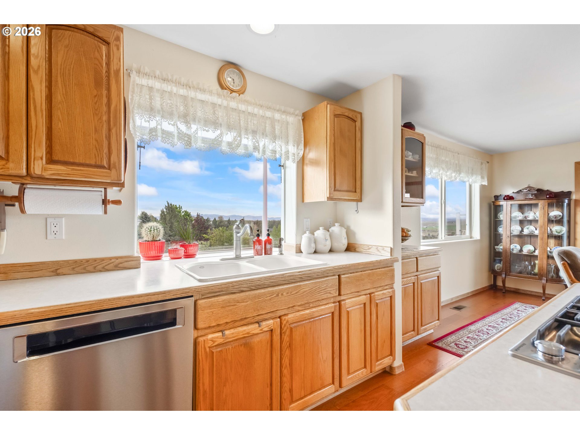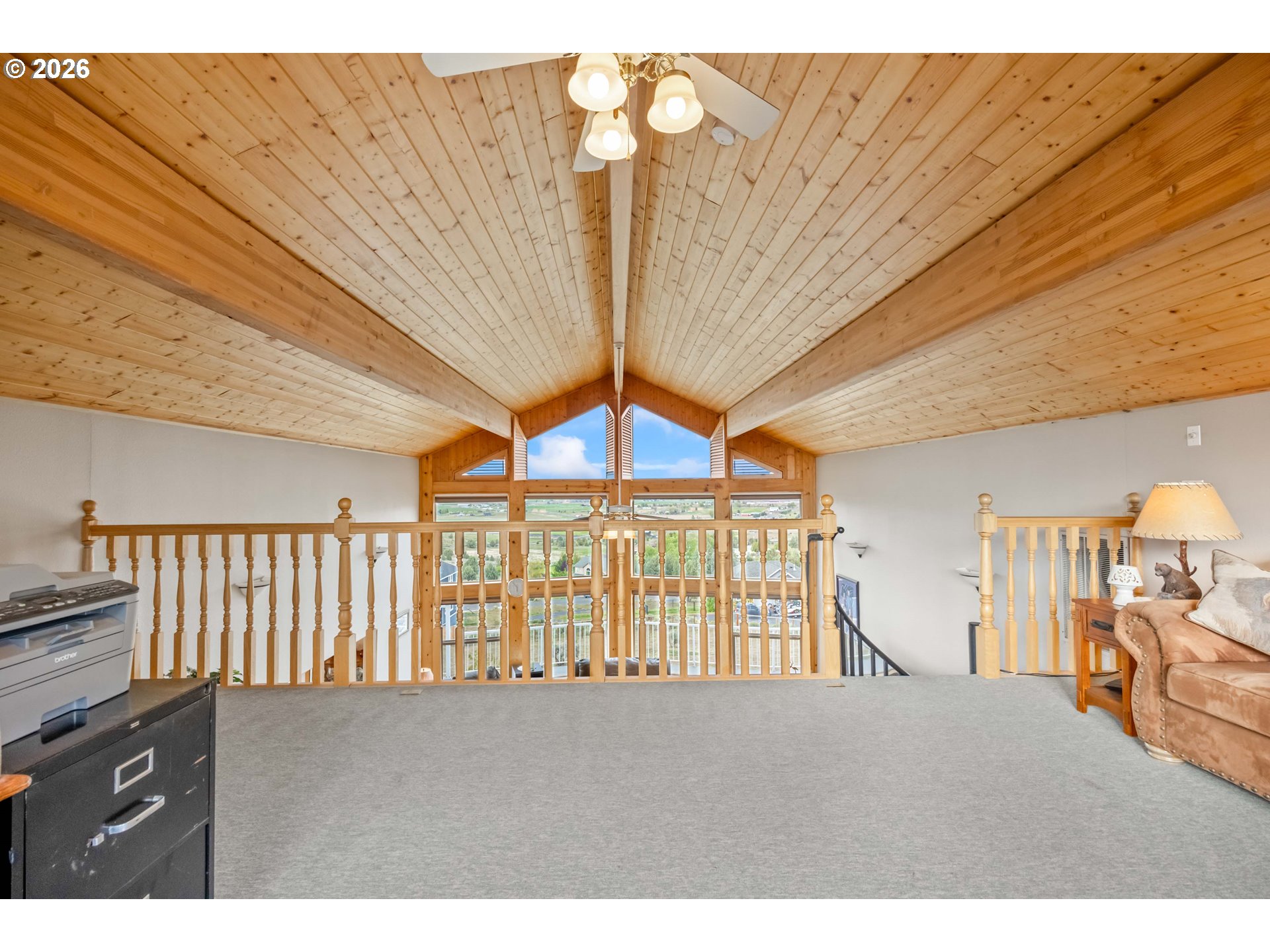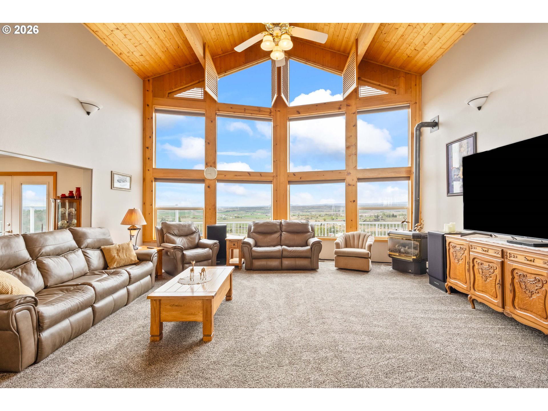 (503) 893-8874Incredible valley and mountain views set the stage for this beautifully maintained 4 bed, 2.5 bath home with over 3,000 sqft of living space! Soaring ceilings, massive picture windows, a loft, and a spiral staircase create a stunning first impression and fill the home with natural light. The open living room and bright kitchen offers plenty of storage, an island cooktop, and great flow for everyday living and entertaining. Enjoy the sunroom and take in the breathtaking scenery from nearly every room. Outside, the meticulously cared for yard is fully fenced and features underground sprinklers, a full drip system, green house, mature plum, peach and apple trees, and hot tub hookup. Located in a desirable neighborhood, the paved driveway leads to a large 32 x 48 shop with plenty of room for projects, storage, and toys. RV parking and dump add extra convenience. A rare combination of views, space, and functionality!