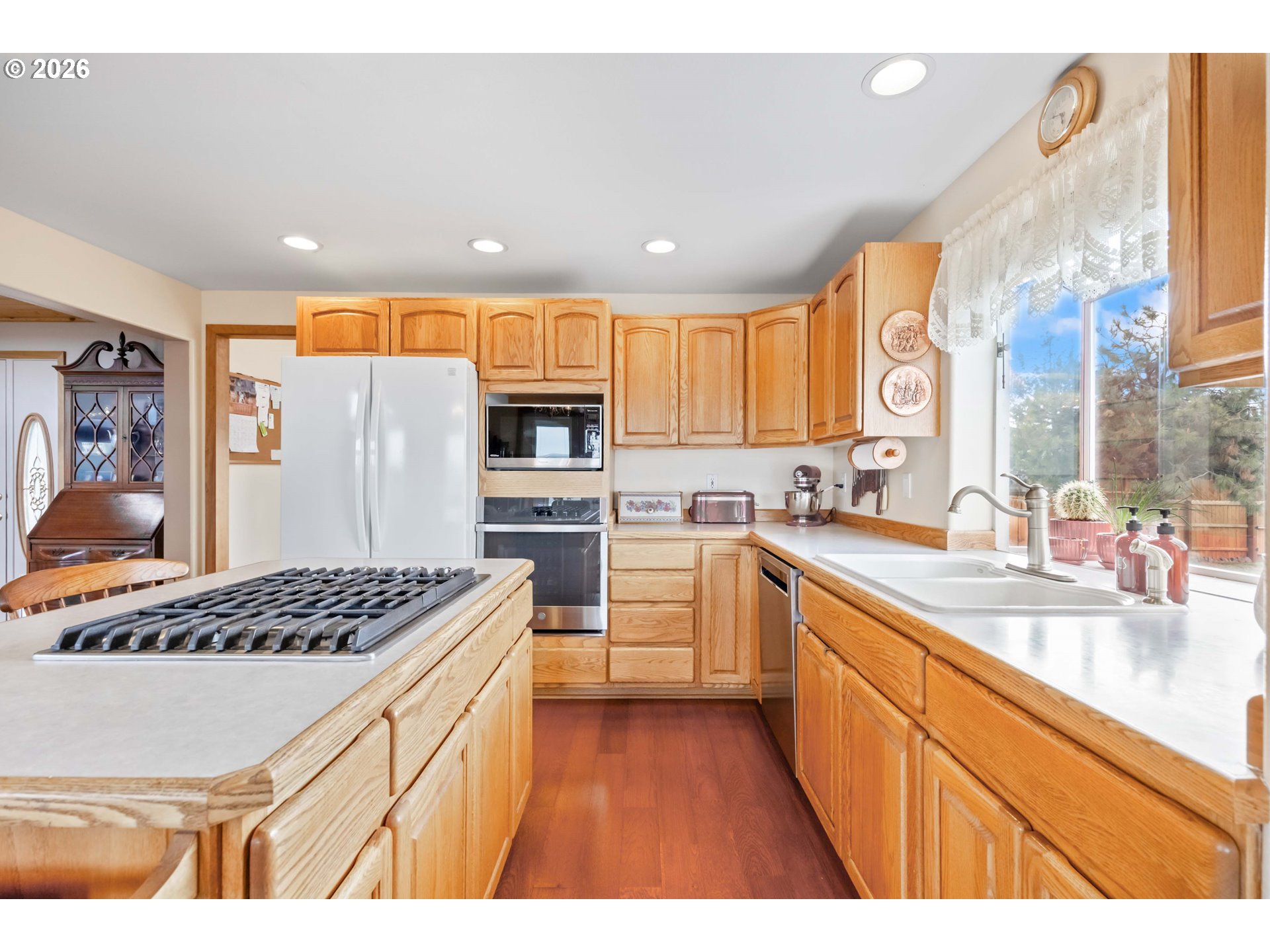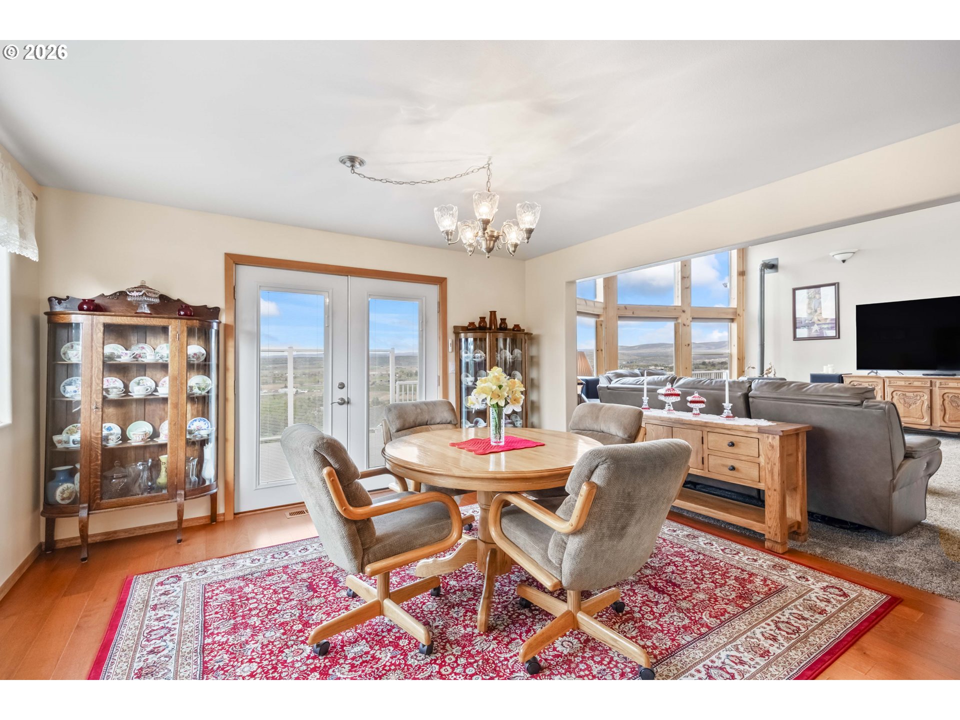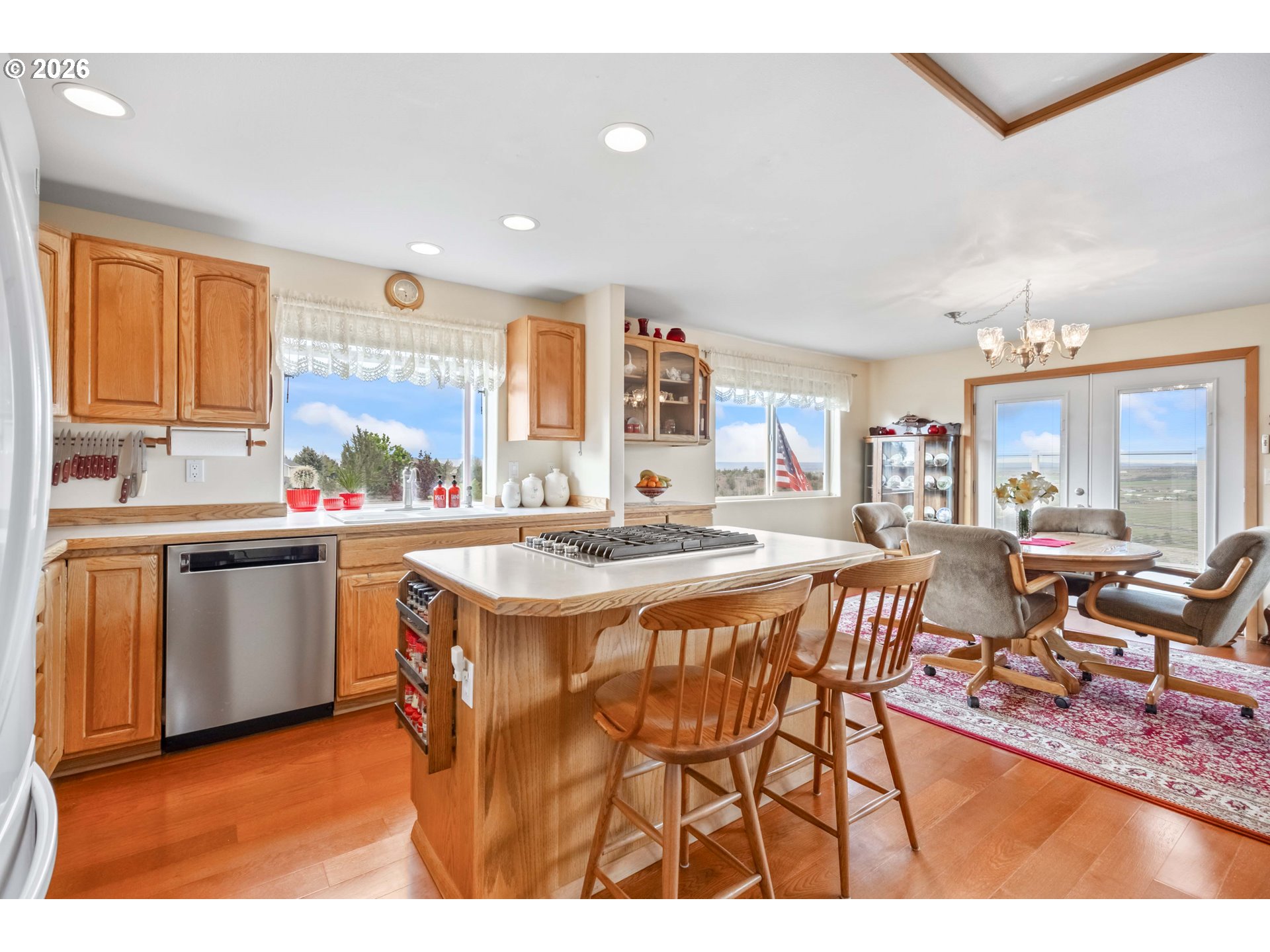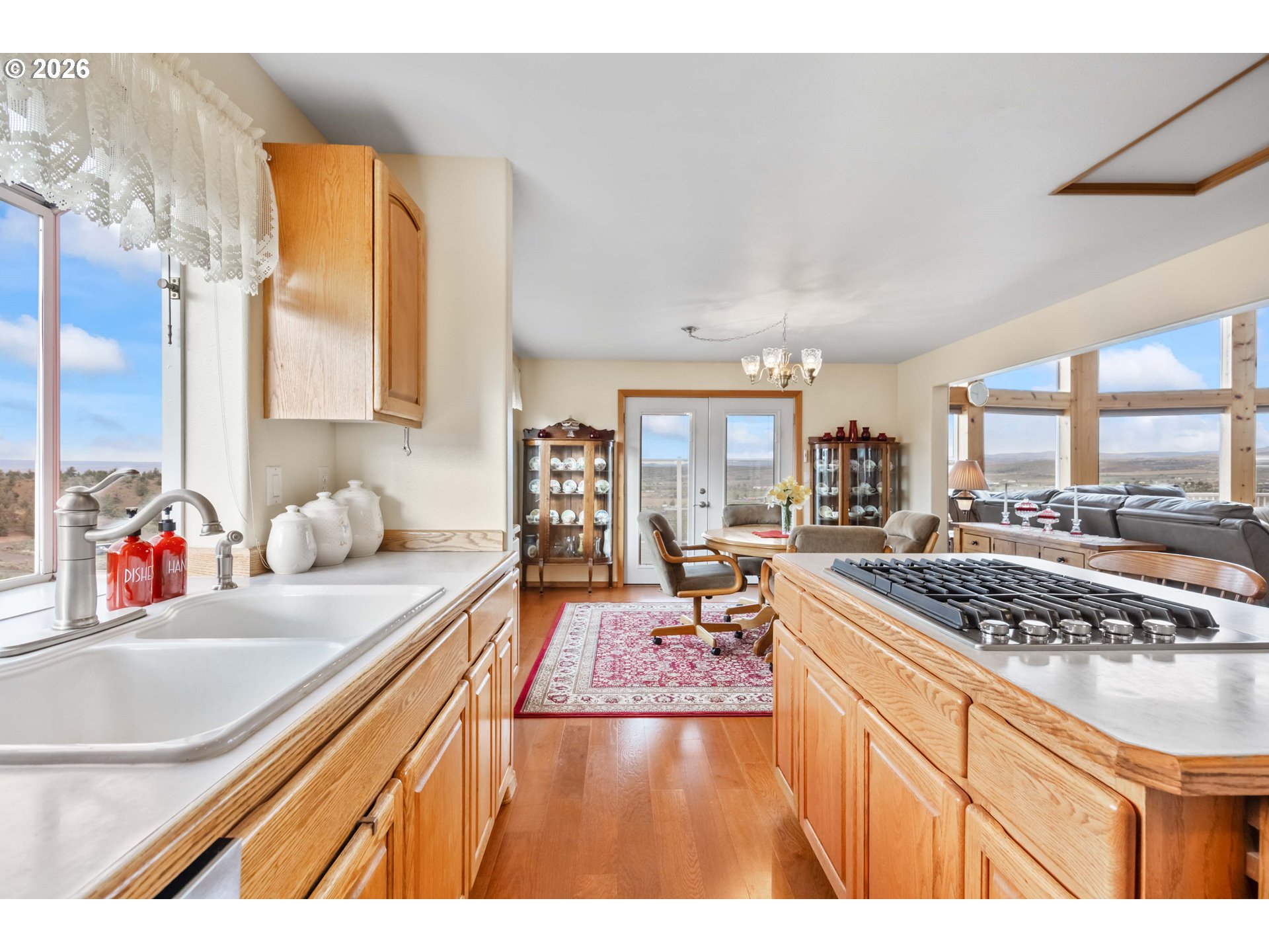 (503) 893-8874Incredible valley and mountain views set the stage for this beautifully maintained 4 bed, 2.5 bath home with over 3,000 sqft of living space! Soaring ceilings, massive picture windows, a loft, and a spiral staircase create a stunning first impression and fill the home with natural light. The open living room and bright kitchen offers plenty of storage, an island cooktop, and great flow for everyday living and entertaining. Enjoy the sunroom and take in the breathtaking scenery from nearly every room. Outside, the meticulously cared for yard is fully fenced and features underground sprinklers, a full drip system, green house, mature plum, peach and apple trees, and hot tub hookup. Located in a desirable neighborhood, the paved driveway leads to a large 32 x 48 shop with plenty of room for projects, storage, and toys. RV parking and dump add extra convenience. A rare combination of views, space, and functionality!