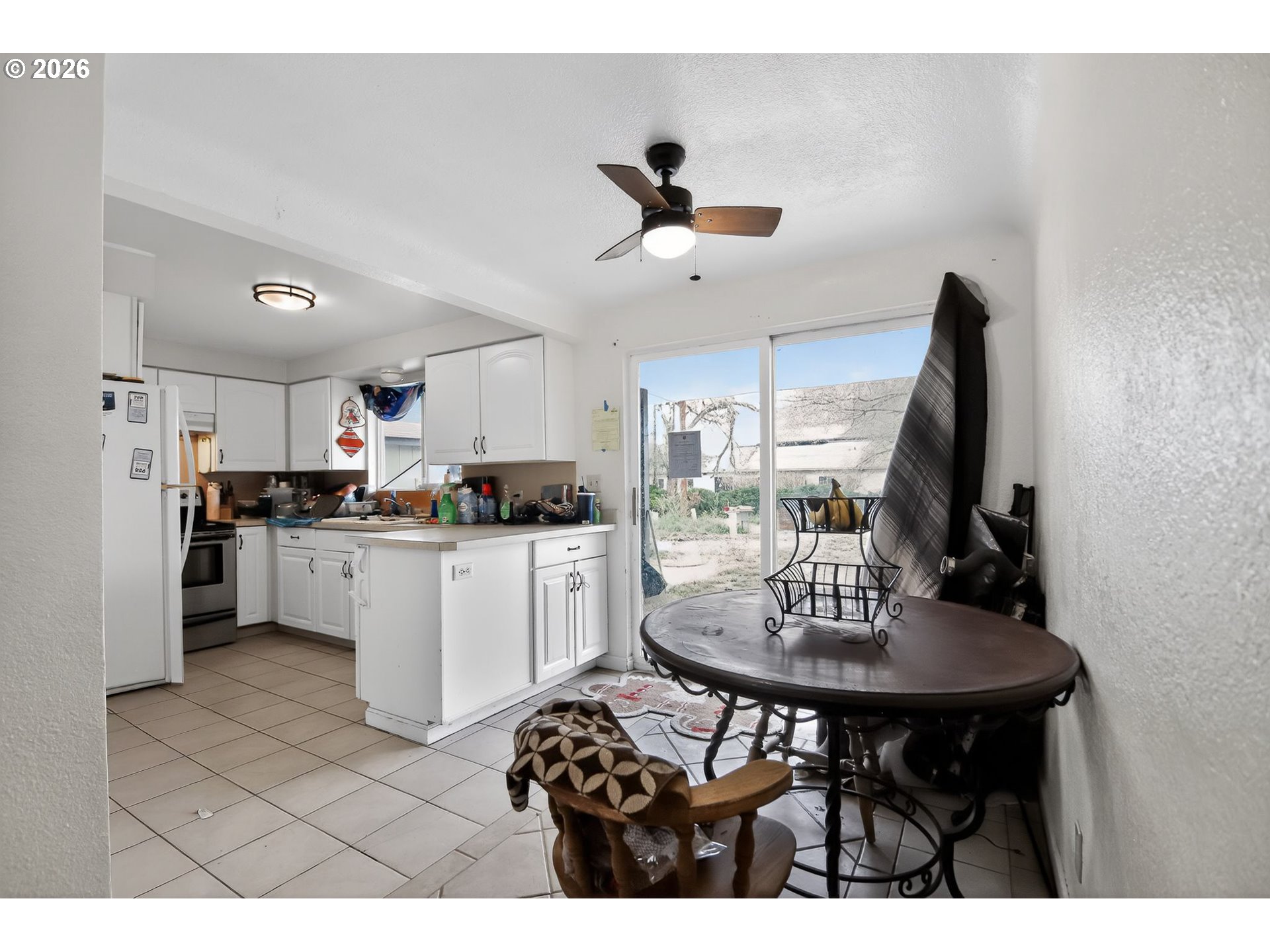 Welcome to this inviting single-level home in the heart of Madras, offering comfort, functionality, and easy living. With 1,403 square feet, this 3-bedroom, 1.5-bath home provides a practical layout designed for everyday convenience.Inside, the living room features wall-to-wall carpet, creating a cozy space to relax. The kitchen flows seamlessly into the dining area, making mealtime and entertaining simple and connected. The dining room includes a ceiling fan and sliding glass doors that open directly to the backyard, bringing in natural light and offering easy indoor-outdoor access.All three bedrooms are comfortably sized, each with its own closet and wall-to-wall carpet, providing both comfort and storage.Step outside to a spacious backyard with plenty of room to garden, play, or create your own outdoor retreat.Located in a quiet neighborhood with easy access to local amenities, this home is a great opportunity for anyone looking for single-level living with space and potential.