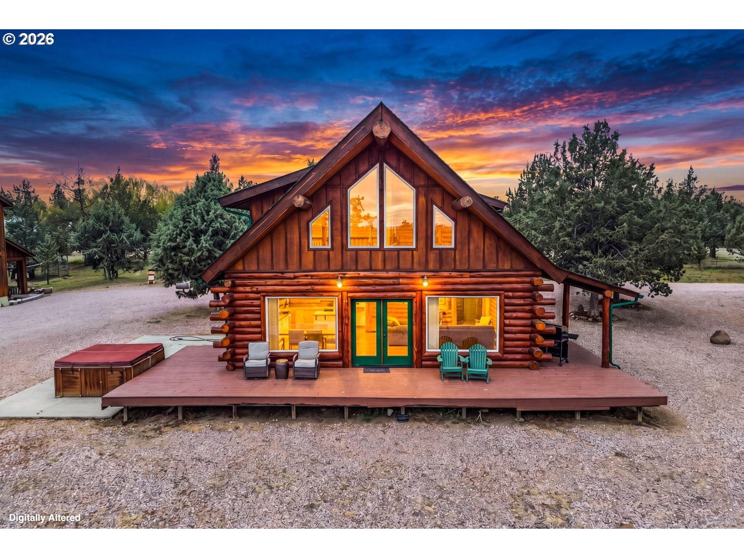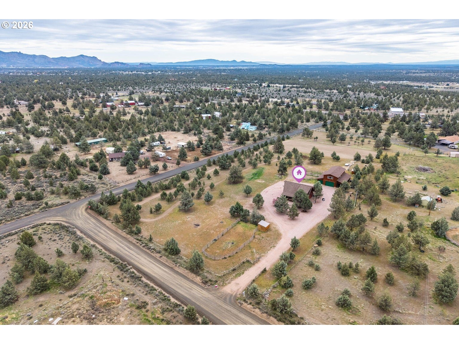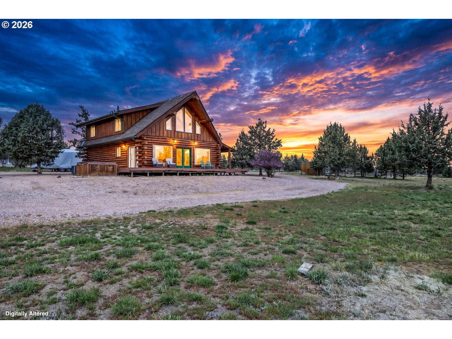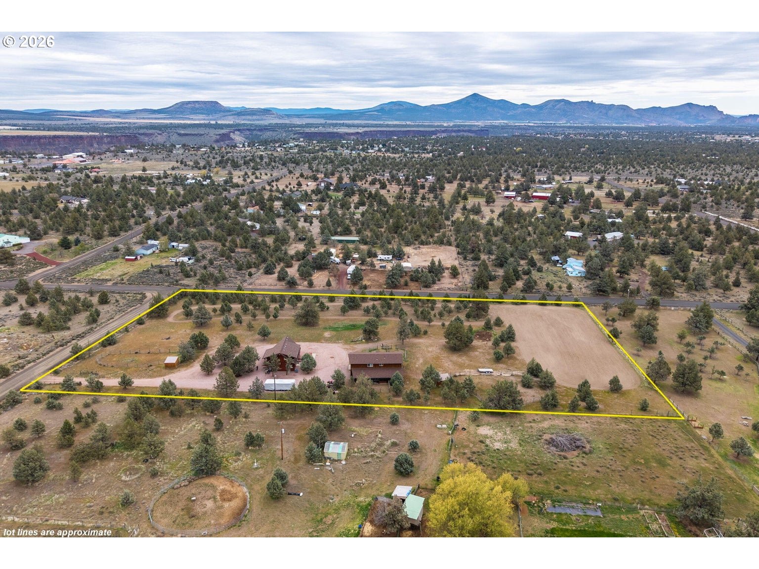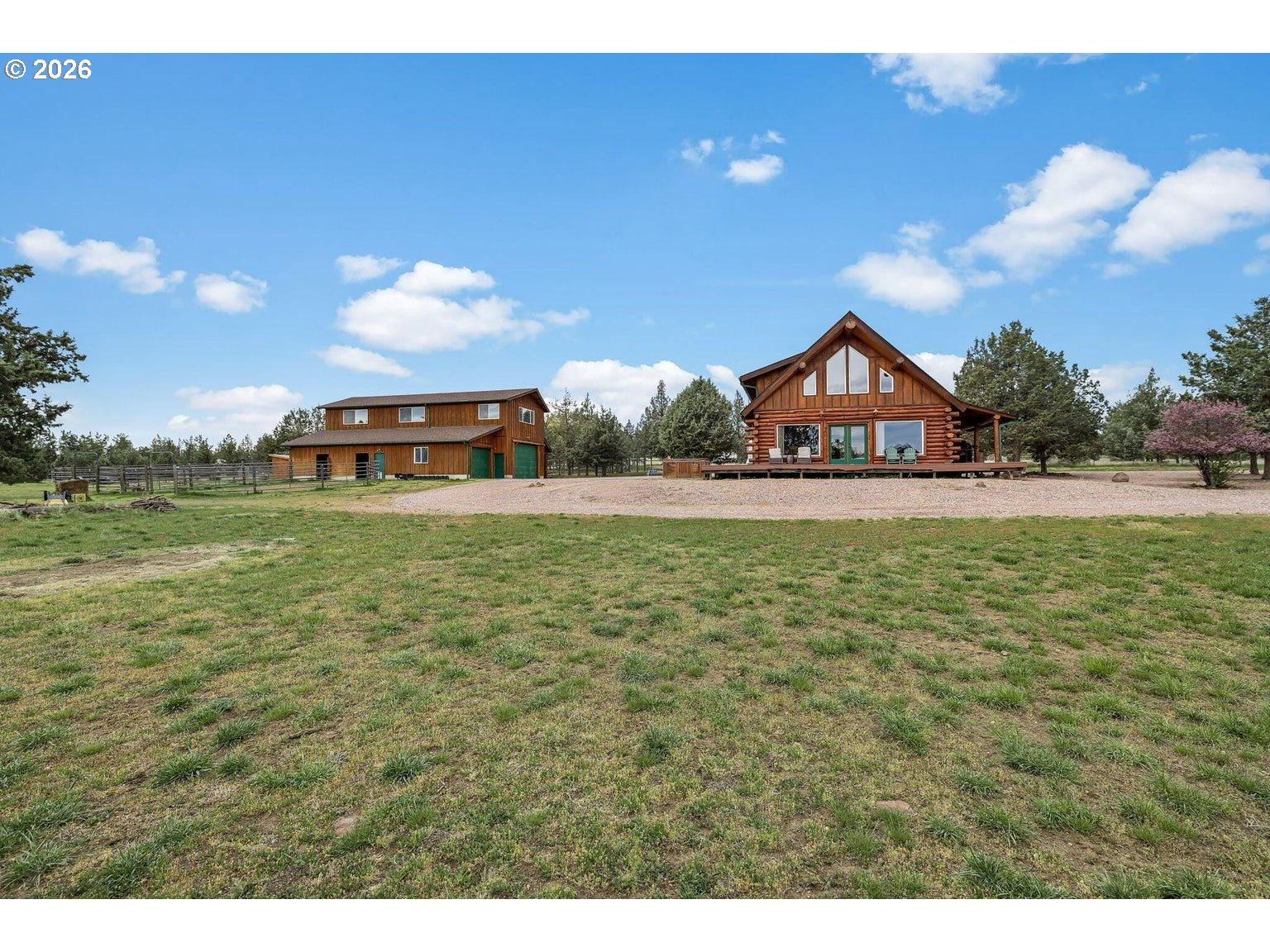 Wide open spaces & warmth throughout define this stunning hand-hewn log home, complete w/guest suite on 5 horse-friendly acres in the heart of Crooked River Ranch's high desert. Open floorplan w/vaulted ceilings & large picturesque windows flood the home w/natural light & sweeping views of the surrounding landscape. Kitchen boasts an abundance of cabinetry & prep space w/central island, dedicated eating area, granite counters & updated appliances. Main-level primary suite offers convenience & comfort w/double vanity & walk-in shower. Upstairs: 2 BDs, full BA & open loft area w/breathtaking sunrise views. Large deck perfect for entertaining year-round. Fully permitted 2 BD/1 BA guest suite w/living rm, 2 well-appointed bonus rms great for gym, hobbies or storage & its own septic system. Plenty of room for critters & toys: 2 stalls, tack rm, indoor hay storage, 2 runs, shelters, sanded arena & auto-heated waterers. Min to world-famous Smith Rock SP, Crooked River, trails & Redmond.