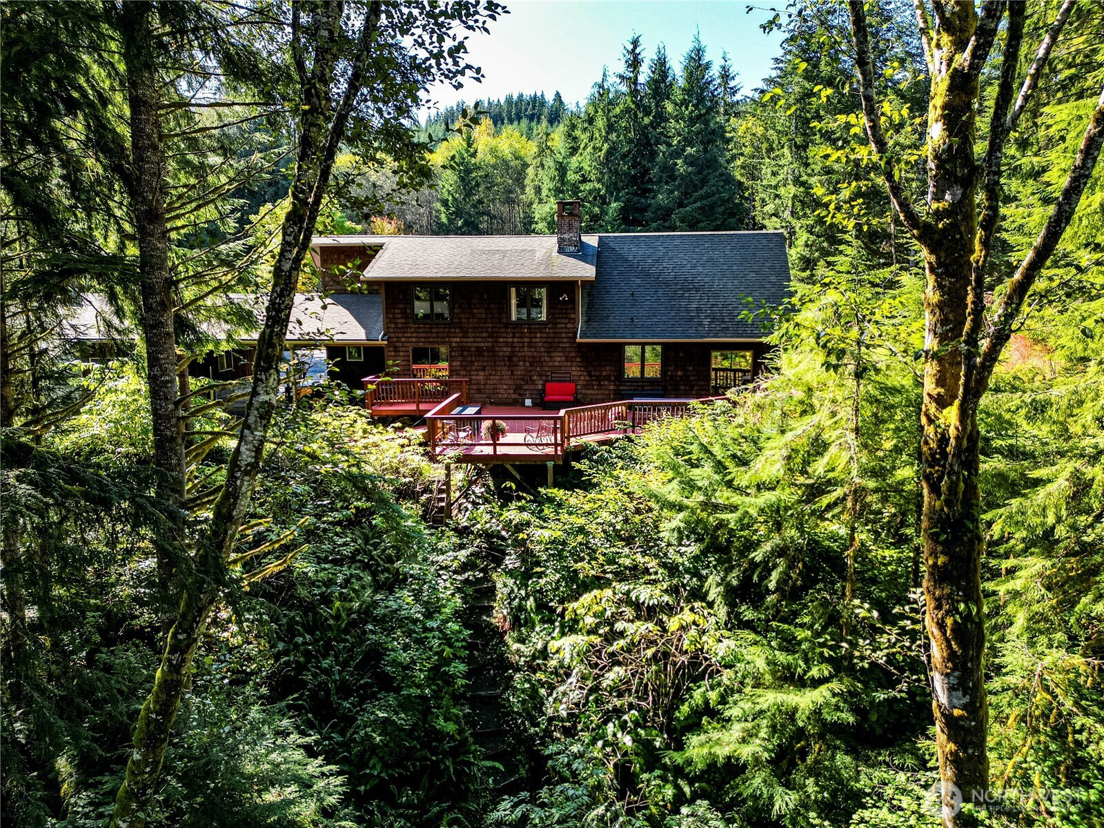 Incredible custom-built home along the Bogachiel River with over 300 ft of river frontage and sweeping water and mountain views from an expansive overhanging deck and bedroom windows. High-quality, spacious 3-bedroom, 2-bath home with a roomy loft, immaculately maintained and thoroughly updated. Attached carport leads to a large two-car garage with adjoining woodshop. Set on over 4 acres across two parcels and includes a beautifully crafted 2-bedroom, 1-bath log cabin currently operating as a very successful short-term rental. Open trails, established garden, fruit trees, big fish pond, and exceptional privacy. A truly one-of-a-kind property that you do not want to miss!