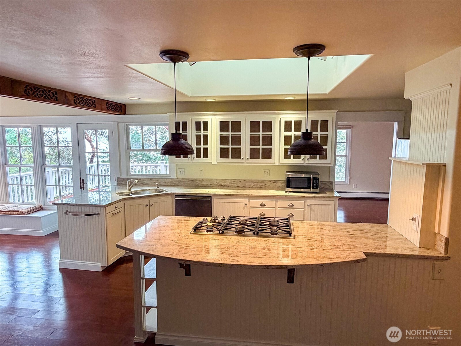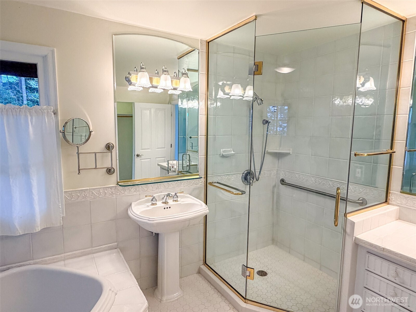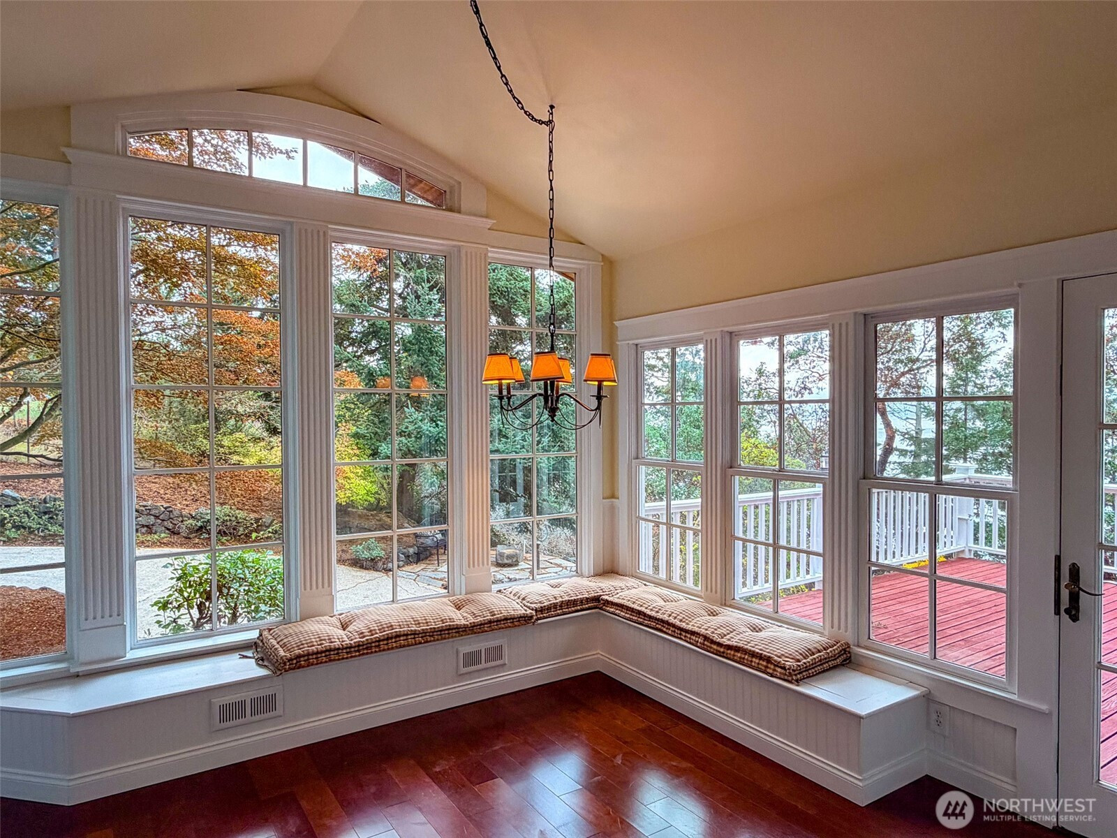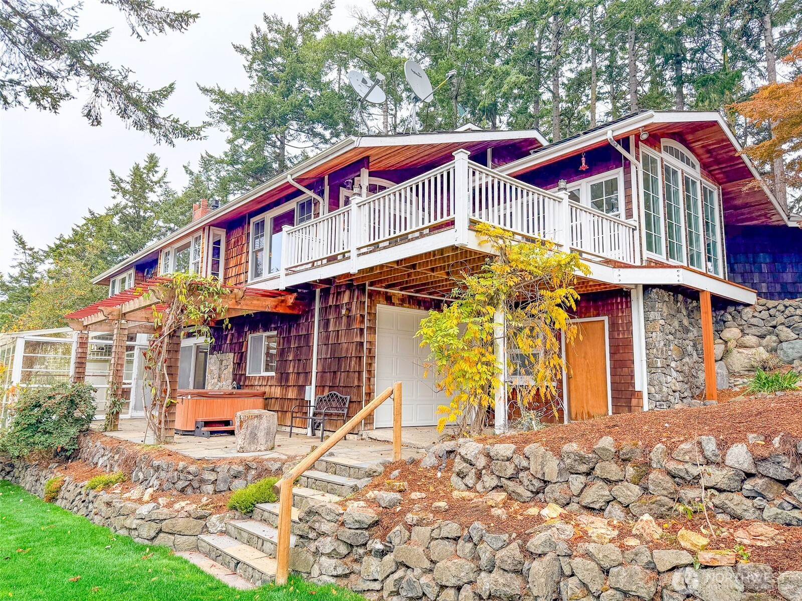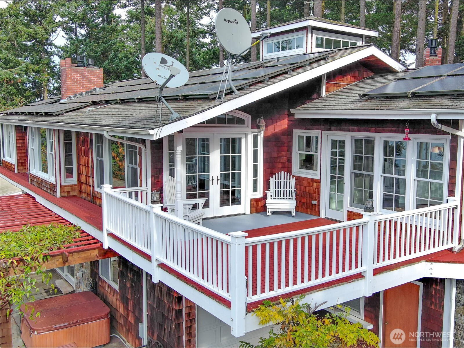 Welcome Home! Spectacular, extremely private & unique home nestled on .48 ac of Discovery Bay, Olympics and beyond views! Dramatic wood double door entry to a wide and spacious foyer to the expansive living area with engineered Brazilian hardwood flooring and fireplace with propane insert. Full size dining w/double doors to the deck looking out to the views as well as the gourmet kitchen w/lovely breakfast "room" all glassed. Primary bdrm w/free standing propane FP, gorgeous bath and soaking tub/walk-in shower and oversized closet. Lower level enjoys the 2nd bed, 3/4 bath and 1/2 bath, office and wet bar and another full size fireplace and propane insert. Large greenhouse! 44 solar panels for efficiency & generator. Full remodel in 1995!!