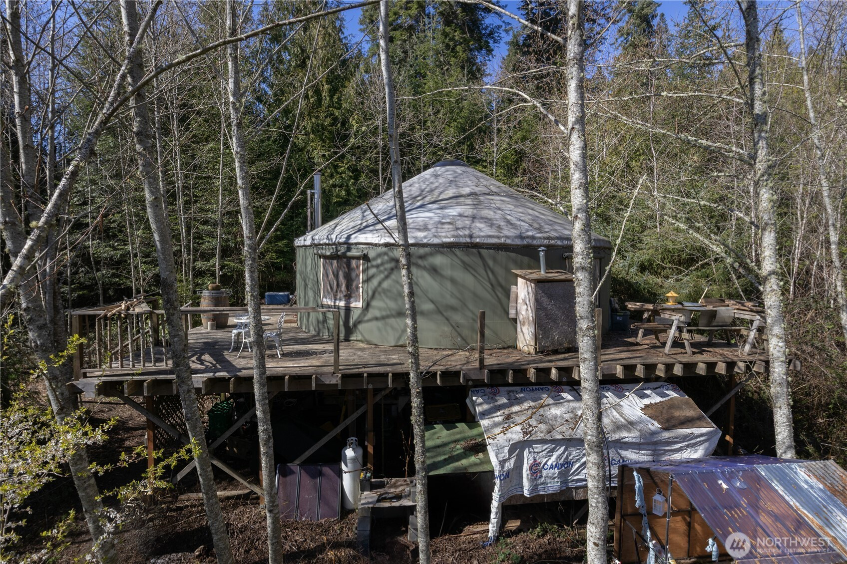 Escape to Your Own Private Sanctuary — 19.56 AcresTucked away in serene seclusion, this remarkable property blends forest and open meadow with breathtaking mountain views. A spring-fed pond, cozy outbuilding, and a fully equipped yurt — complete with woodstove, kitchen, and outdoor shower — make this land ready to enjoy from day one. Live comfortably in the yurt while you design and build your dream home. Room to roam for animals, gardens, and whatever life you're imagining. Shared well in place. All this, just minutes from the vibrant charm of Port Townsend — world-class galleries, farm-to-table dining, parks, and saltwater beaches await. Your land. Your vision. Your life.