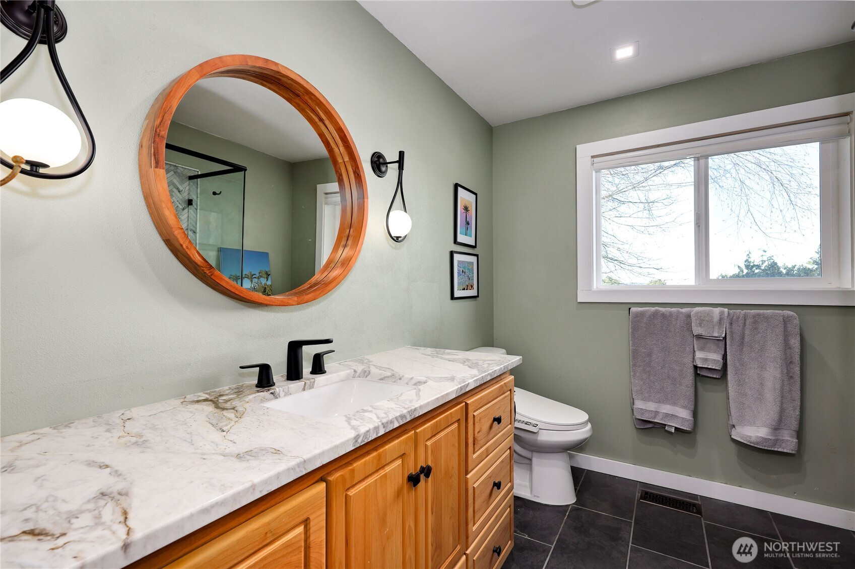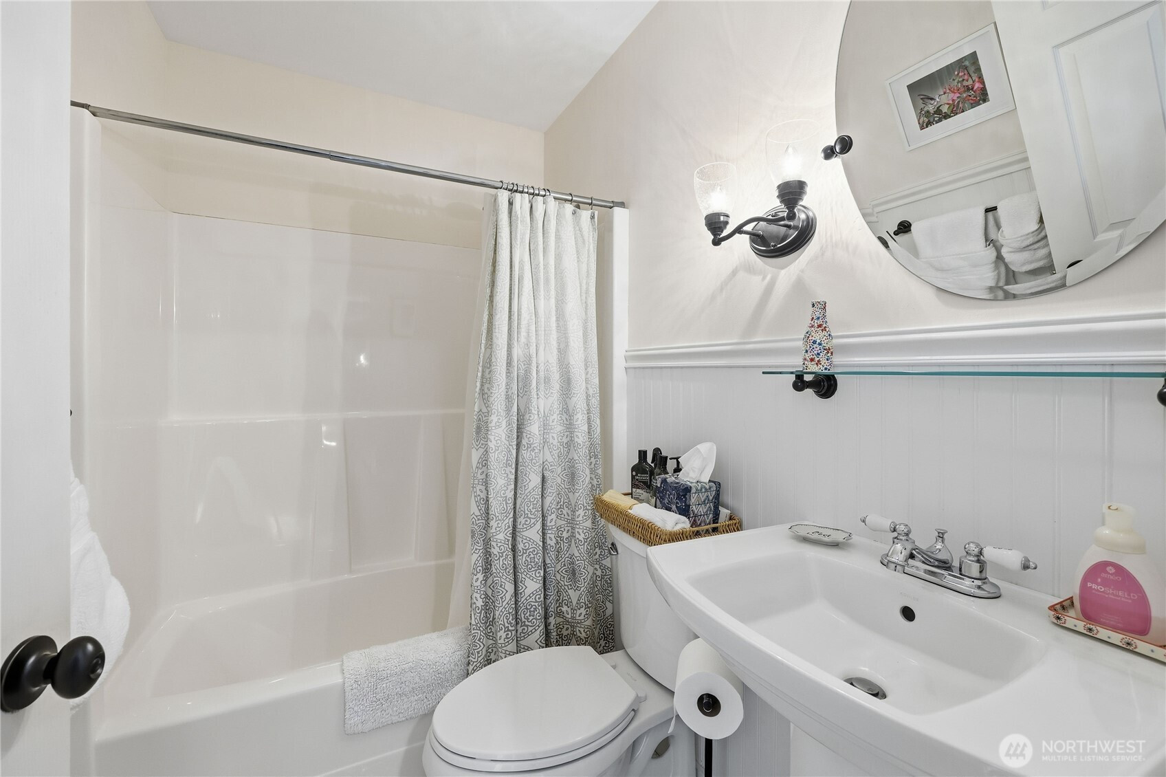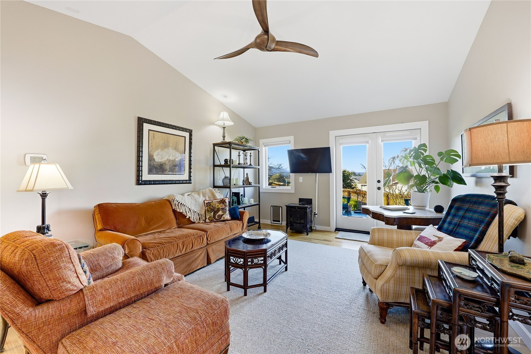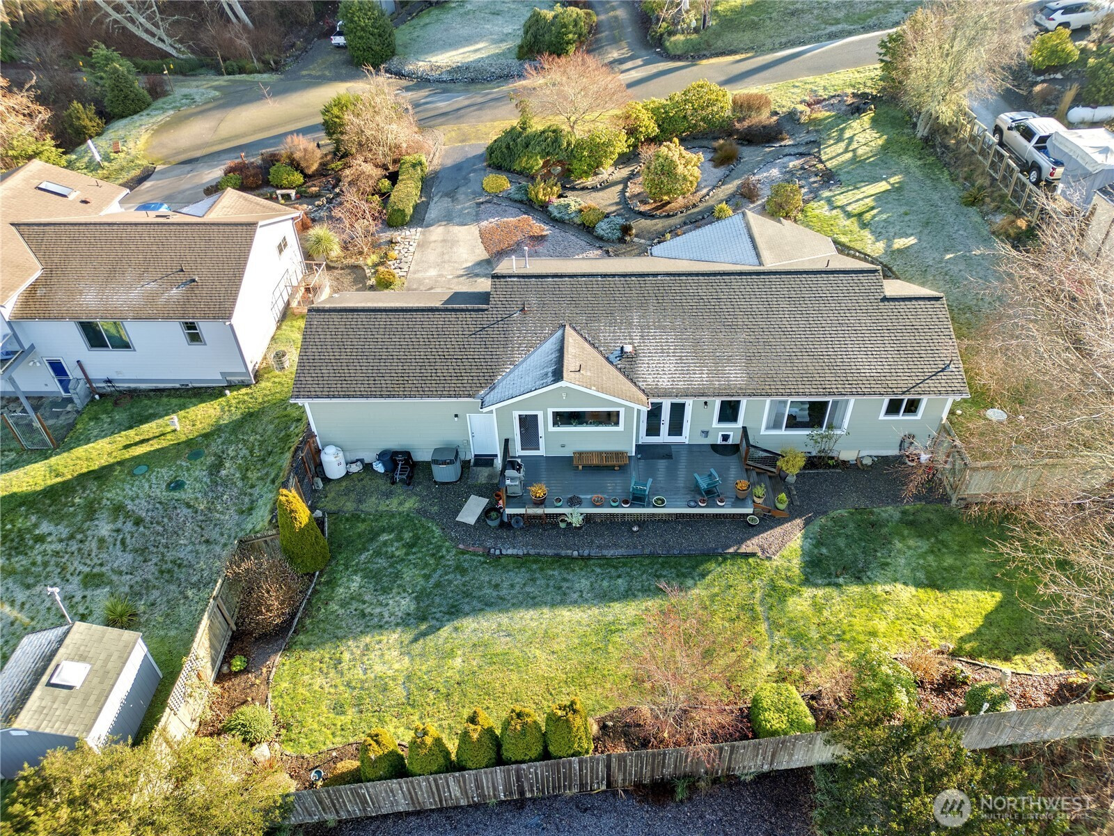 This delightful single-story home in the beautiful Cape George community is located on a quiet cul de sac and offers the perfect blend of charm, character and comfort. The welcoming covered front porch leads into the light-filled living room with propane fireplace. The fully remodeled kitchen features custom cabinets, huge pantry, stainless appliances, large picture window, and a versatile center island. The primary suite includes a large bedroom, two closets, and an updated primary bath. Two additional bedrooms and a full bath provide design flexibility. The spacious west-facing back deck is perfect for entertaining or lounging. The peaceful pet-friendly back yard is fully fenced. Lovely landscaping surrounds the home, with plenty of room for gardening. Just steps from a short trail to the waterfront neighborhood park. Extensive community amenities include marina, boat launch, kayak/canoe storage, clubhouse, indoor pool, waterfront gym, pickleball court, picnic pavilion, playground and more. Come join this fun and friendly neighborhood and enjoy all Cape George has to offer.