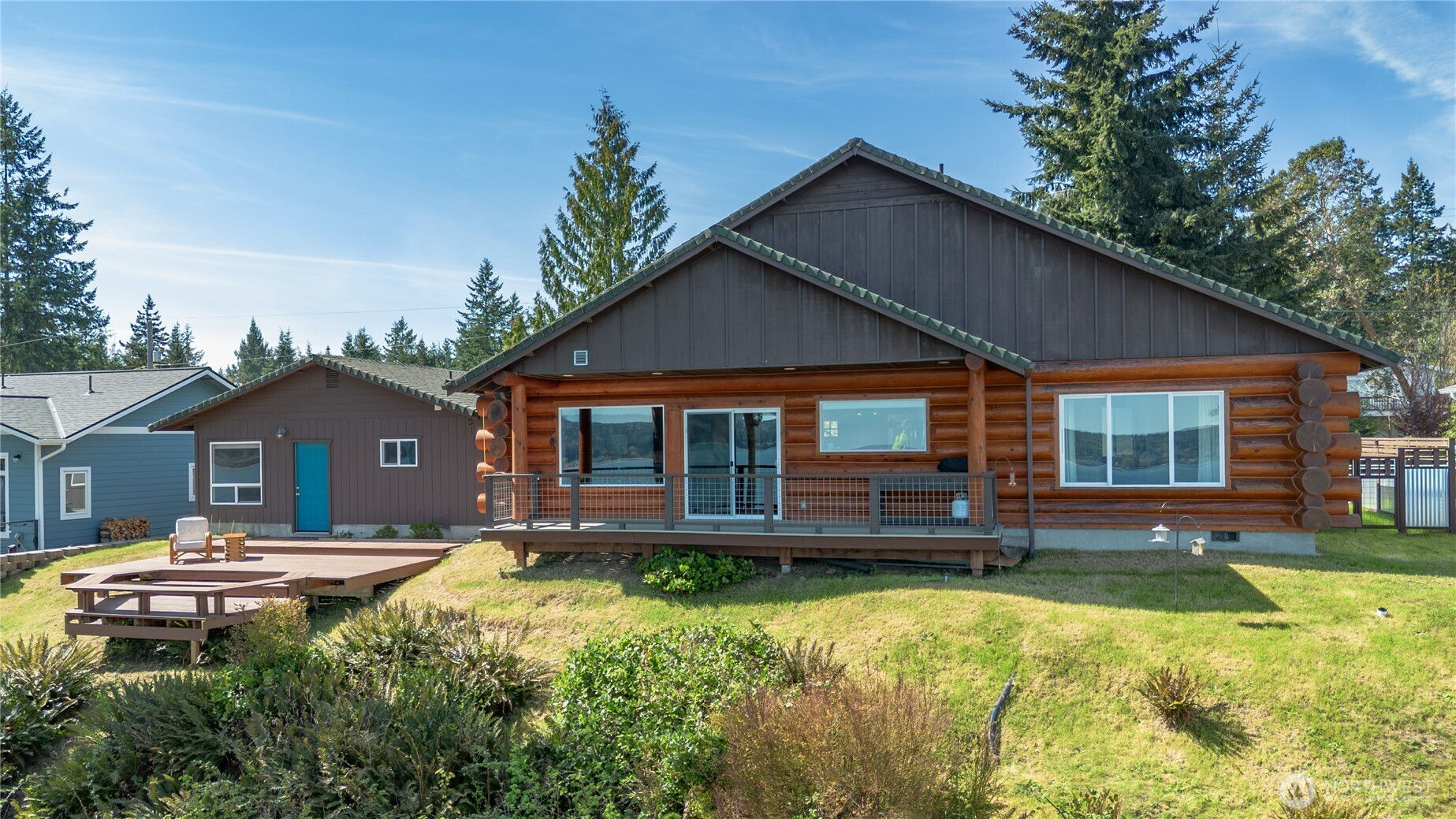 Perched above it all in Port Ludlow, this 2-bed, 2.5-bath log cabin offers peaceful living on the Olympic Peninsula with a perfect balance of rustic charm and everyday comfort. Take in sweeping 180° views of the Hood Canal and Cascade Mountains from all main living areas, filling the home with natural light and breathtaking scenery. Step outside to a private front yard with a patio & fire pit—ideal for relaxing, entertaining, or simply soaking in the quiet beauty that surrounds you. Private beach access invites you to explore the shoreline just minutes away, whether for beachcombing or sunset walks. An oversized detached 2-car garage with a bonus room/guest house adds incredible flexibility for hosting, working, or creating your own retreat space. This is Northwest living at its finest—private, scenic, and effortlessly inviting.
