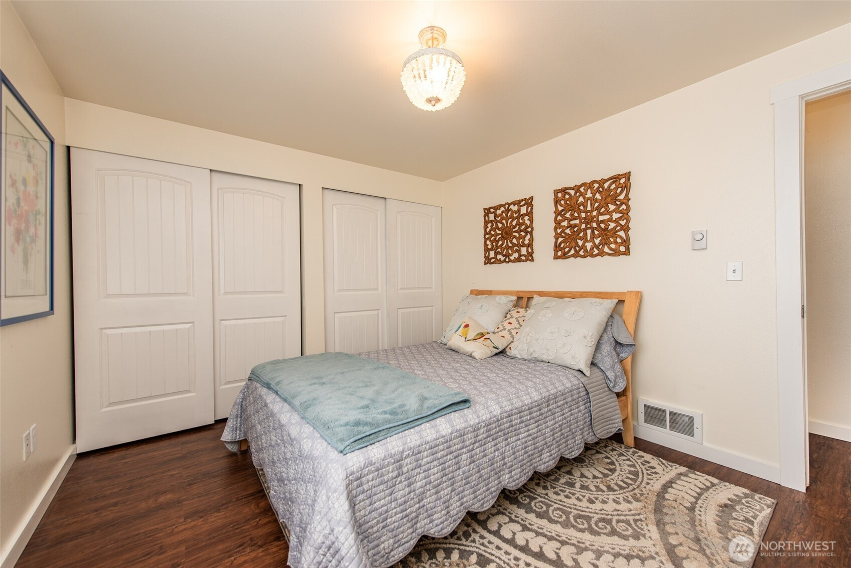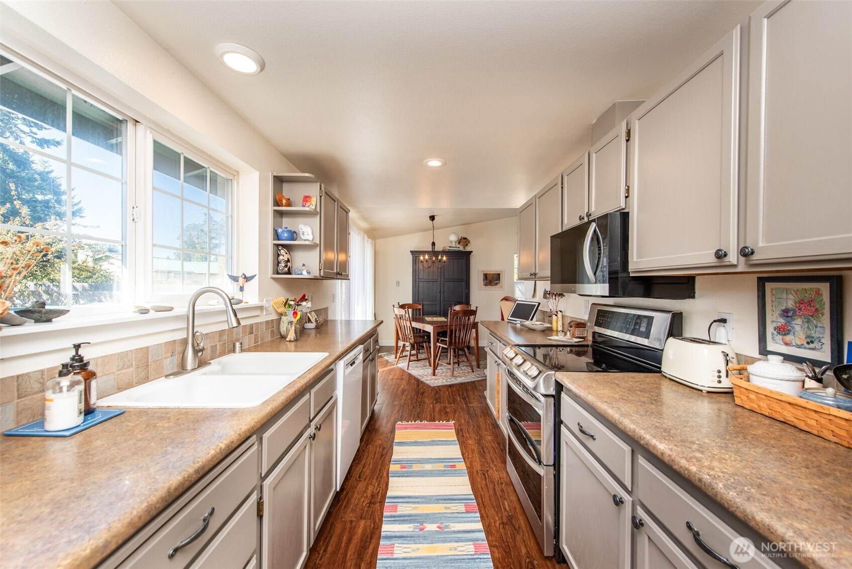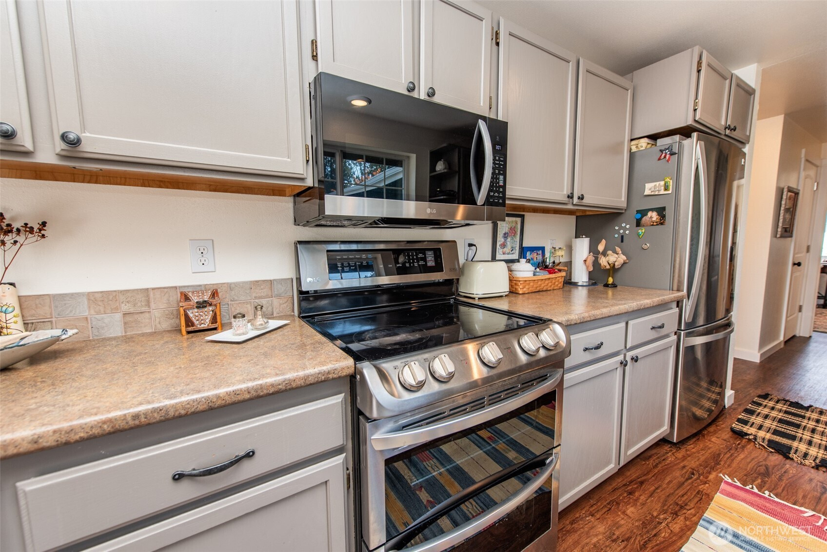 This is a comfortable 3 bedroom home with 2 full bathrooms on a corner lot on a section of Thomas Street that does not go through in either direction. There's very little traffic in this quiet, centrally located neighborhood of nice homes surrounded by tall trees. The 2 car garage has a 50amp EV outlet for charging electric vehicles. A large deck off the kitchen over looks the fully fenced back yard with a fire pit, and raised bed planters. The home is freshly painted and the front yard is nicely landscaped. The home was updated in 2020 with new luxury vinyl plank flooring, along with a new range, refrigerator, washer/dryer and new vanities in the bathrooms. The microwave was replaced this year. This house is ready to be your new home.