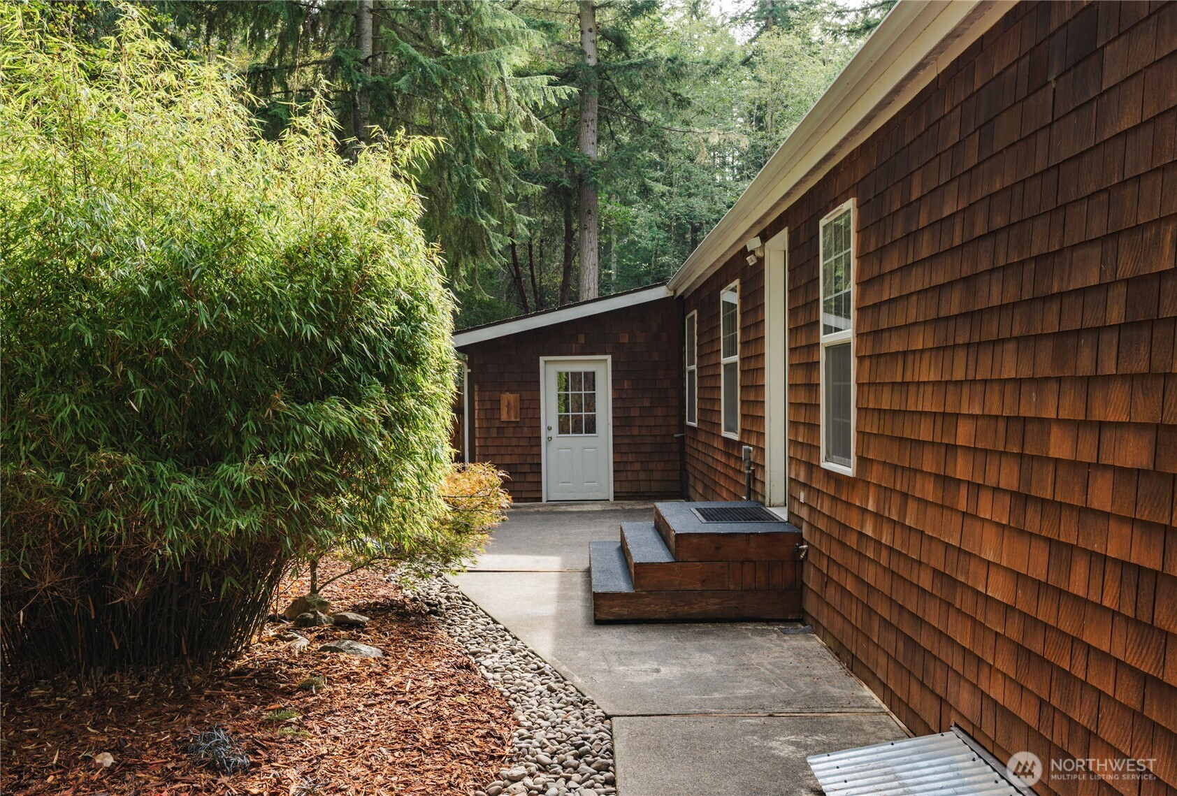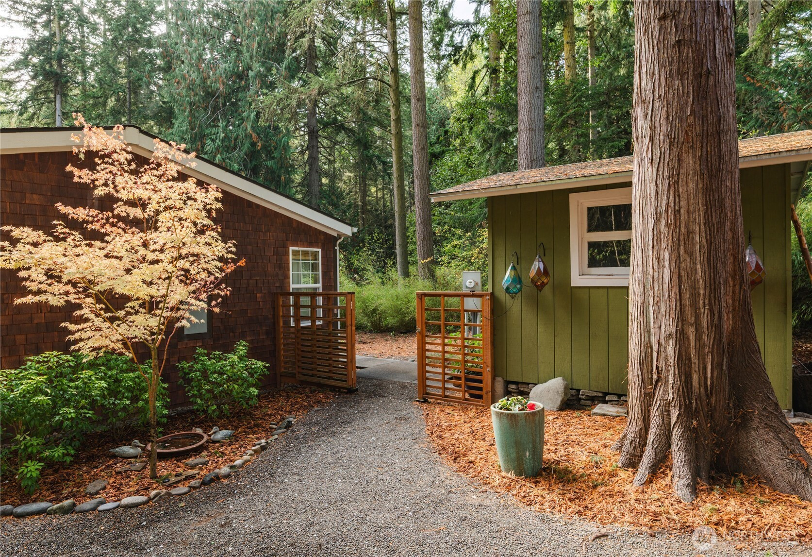 Welcome to your woodland wonderland- a quiet oasis nestled among the trees with private access to the Larry Scott Trail. This is close- in living just south of Port Townsend. Enjoy this beautifully landscaped and meticulously-maintained home that sits at the end of a private road. Garden shed, workshop/garage and fully fenced with fruit trees and native landscaping. Enjoy the surprise around the back- 575 sq ft cottage-complete with washer and dryer- perfect for out of town guests, home office or a writer's retreat! There are many possibilities for use! New cedar fence installed in 2024.