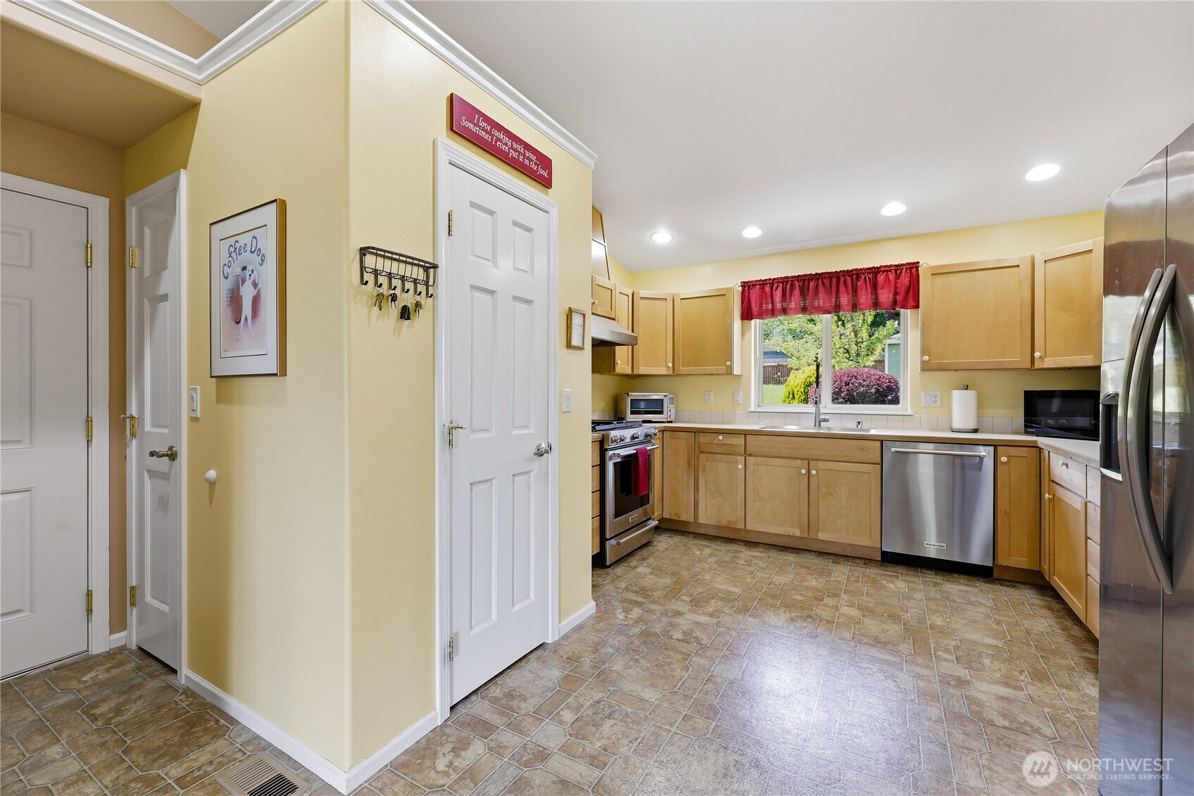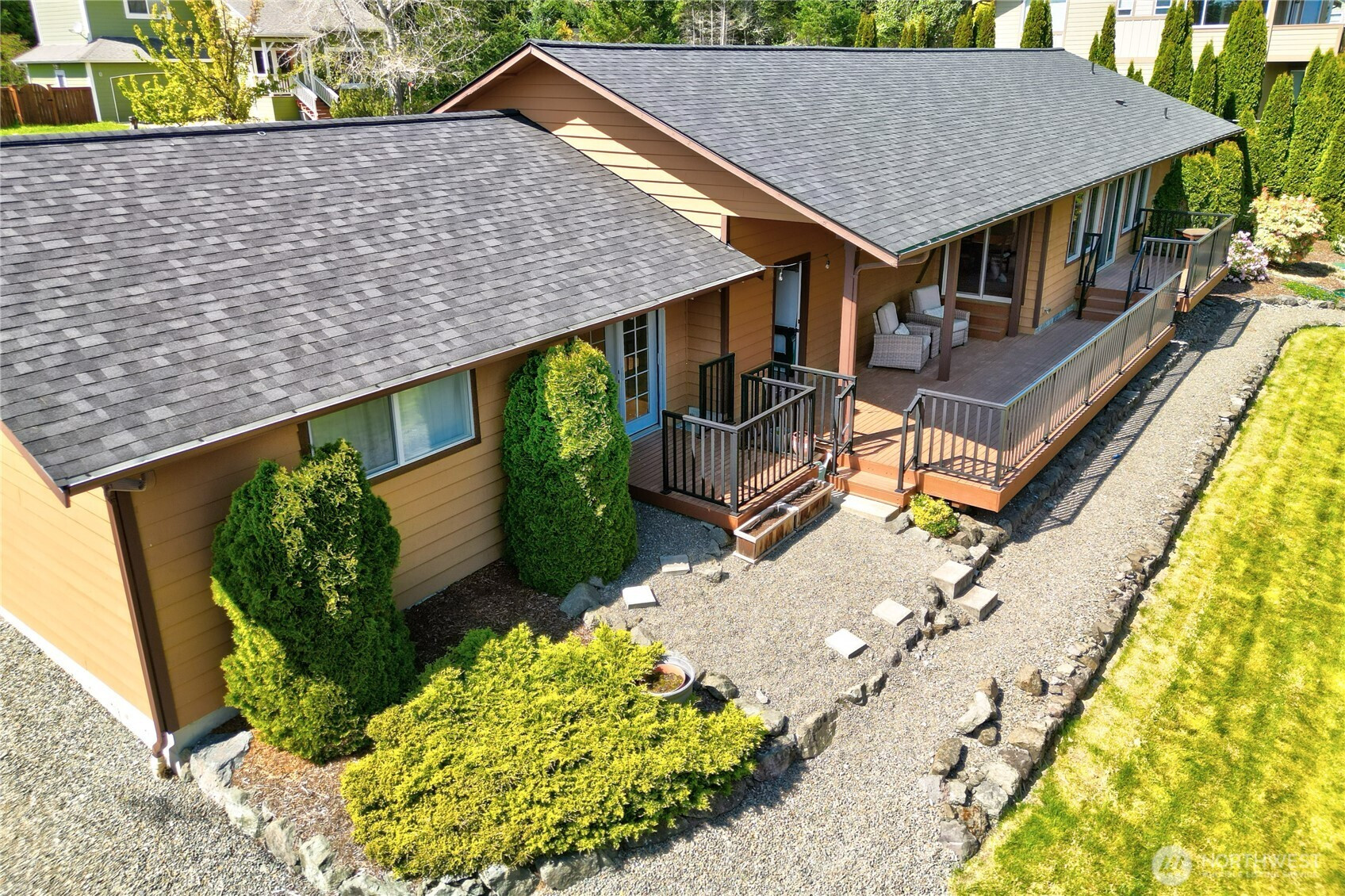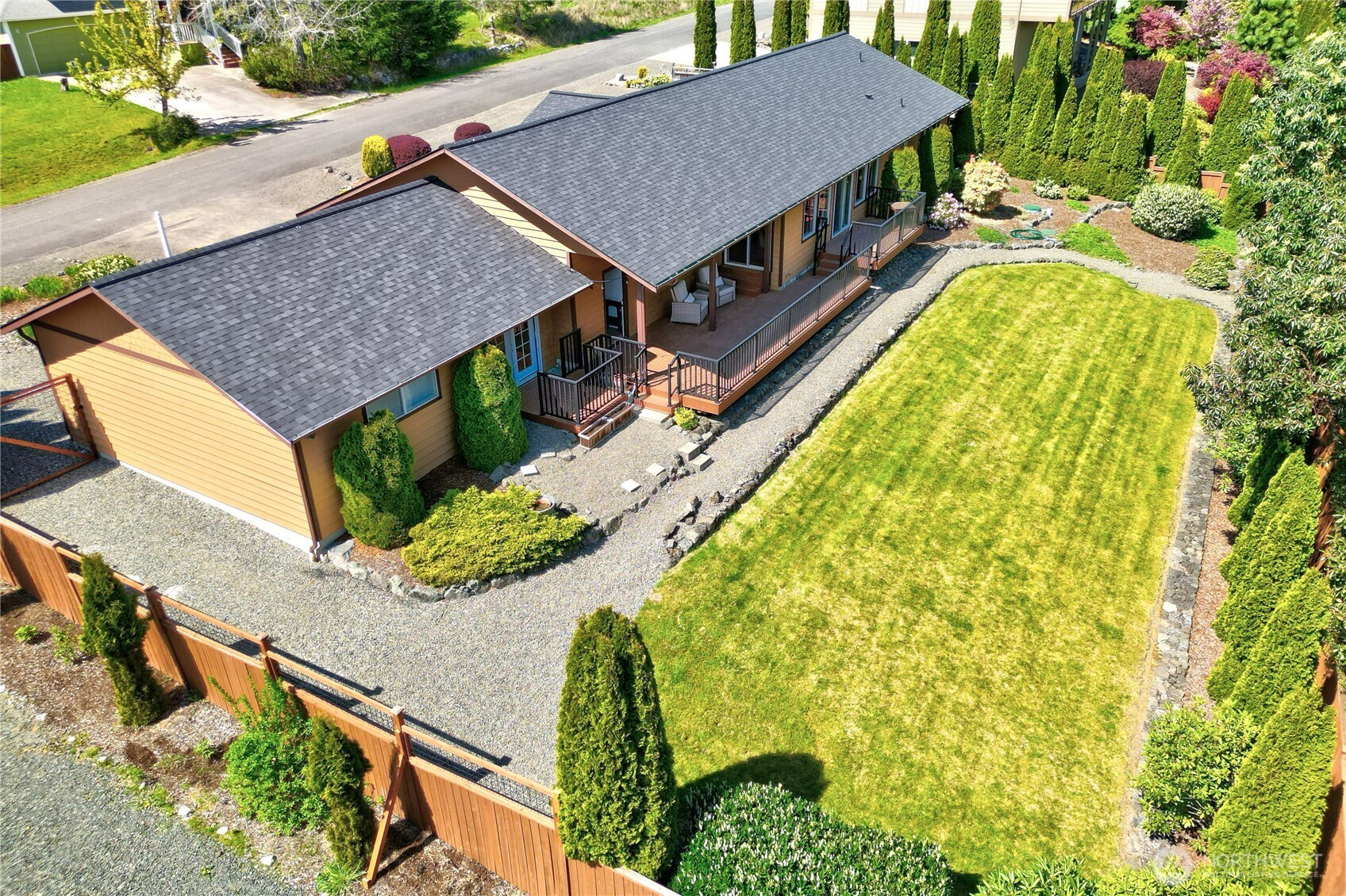 This meticulously maintained single-story home provides exceptional charm and outstanding versatility. The inviting entry leads to an open plan living / dining area overlooking the manicured lawn and beautiful landscaping. The attractive kitchen features maple cabinets with slide-outs, new appliances including a KitchenAid dual-fuel range, farm sink, and a large refurbished pantry. The primary bedroom has an ensuite bath with walk-in shower and is complemented by two additional bedrooms and a full bath. The oversized two-car garage offers storage and work space, with direct access to the back deck. The versatile studio has an exterior front door and would be perfect for a home office/business, or use as a home gym, craft room, music room or myriad other uses. Store your boat, RV or classic car in the third garage bay, or create your fantasy workshop. Wonderful covered deck to enjoy morning coffee or dining on warm summer evenings. Fully fenced yard for pet enjoyment and safety. Quality features include cedar siding and new roof. Peaceful neighborhood, no HOA. Less than 15 minutes from downtown Port Townsend. Come create the life you've dreamed about at this special turn-key property.