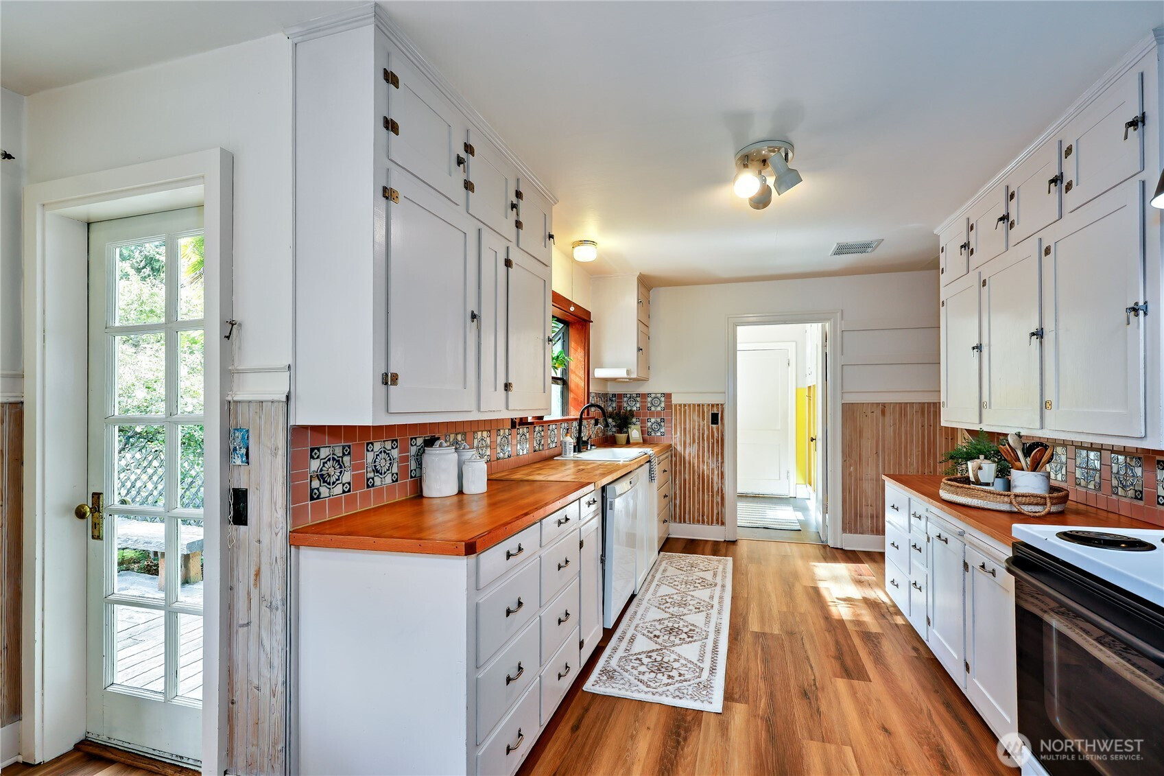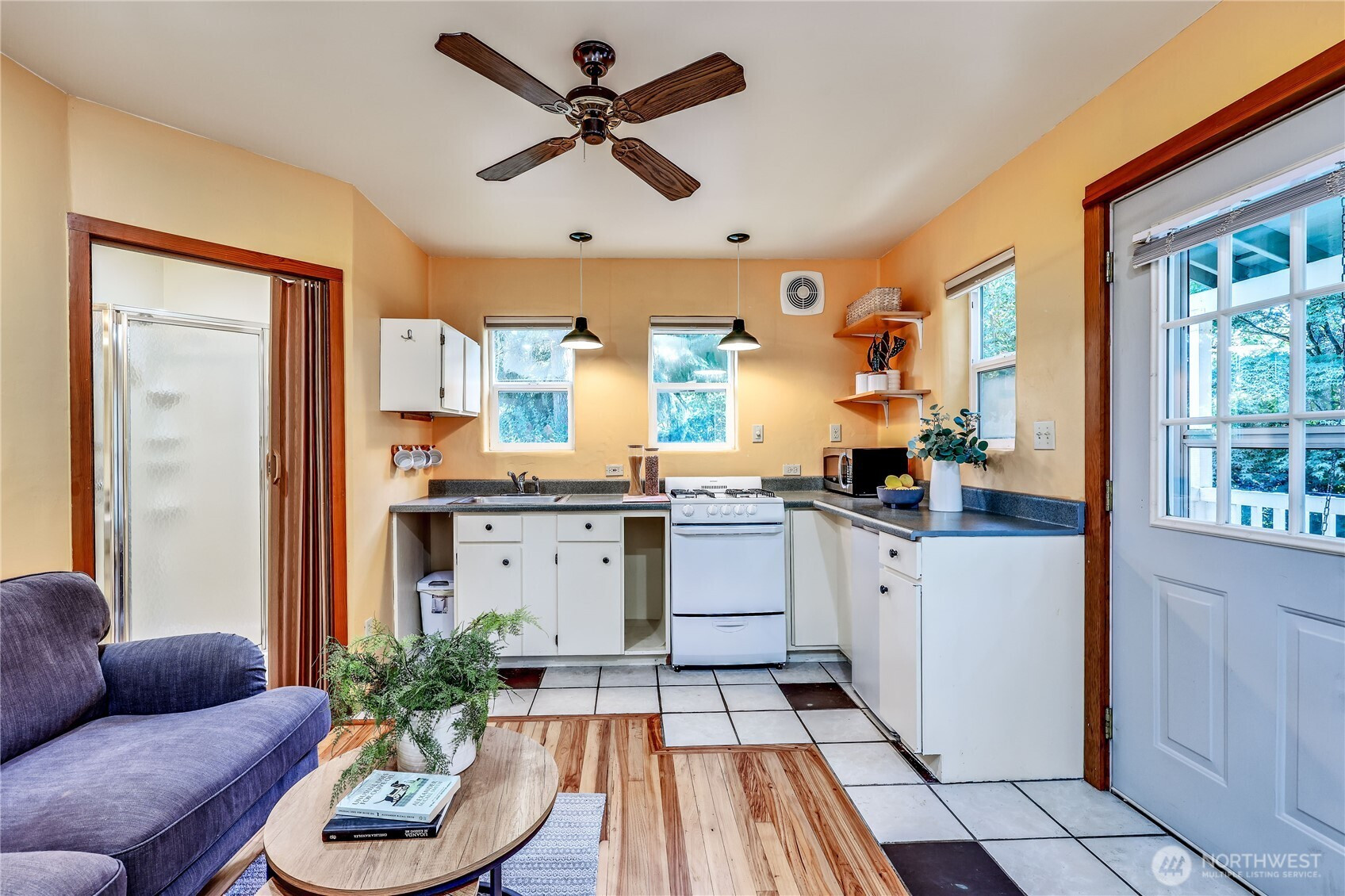 This hidden oasis in the heart of town is a 1936 bungalow lovingly cared for by just two long-term owners & now ready for its next chapter. Nestled on four city lots at a quiet dead end, privacy & lush gardens flourish here. The 3 bed, 1 bath home brims with period charm, while a sunny south-facing deck invites outdoor dining & relaxation. A generous garage offers room for projects, hobbies, a greenhouse & pantry. The 512 sqft ADU, built in 2000 with its own yard & entry, has been a cherished rental ever since. A truly charmed property ready to welcome you home.