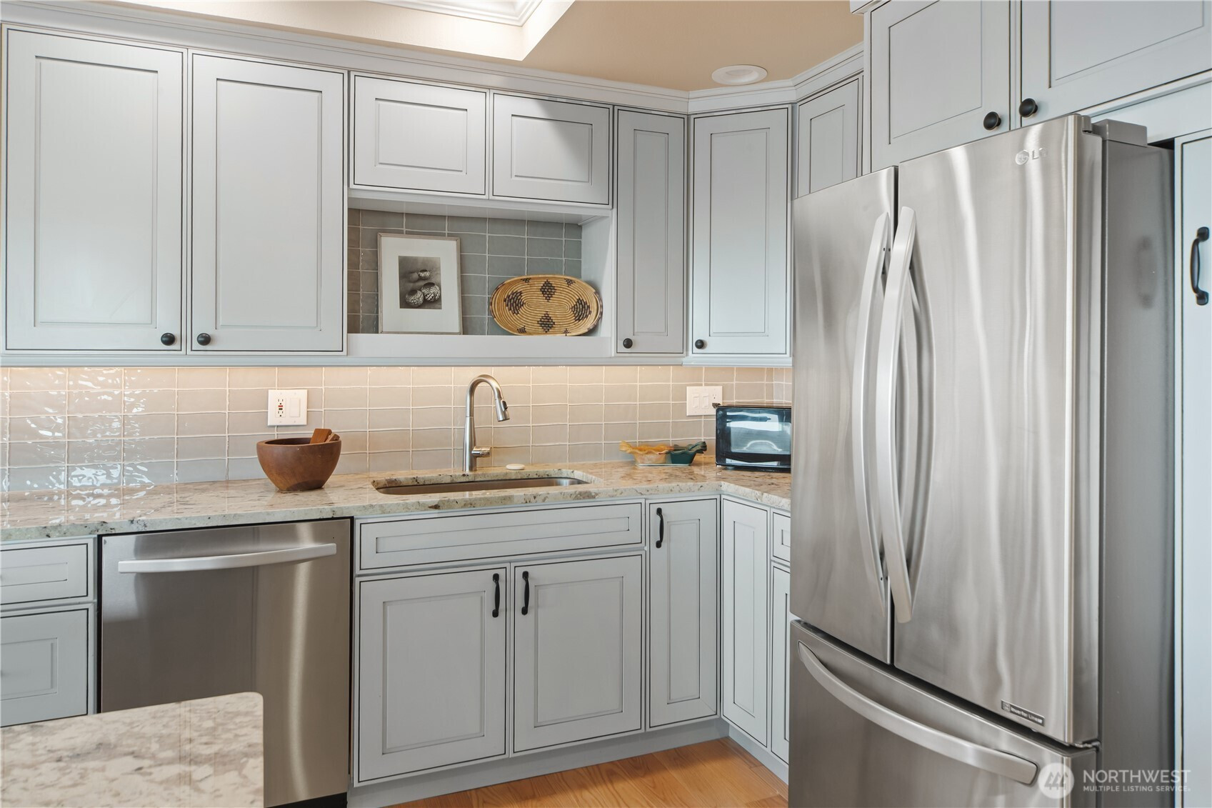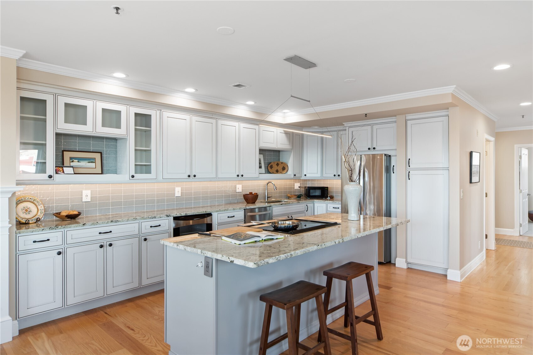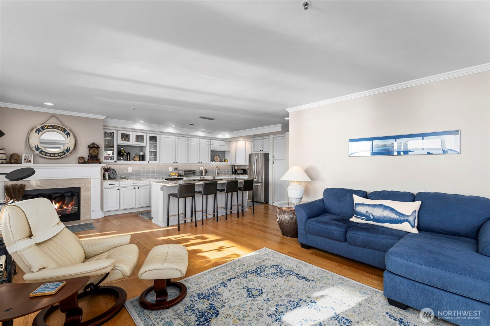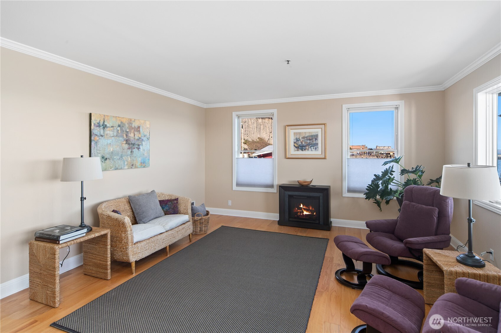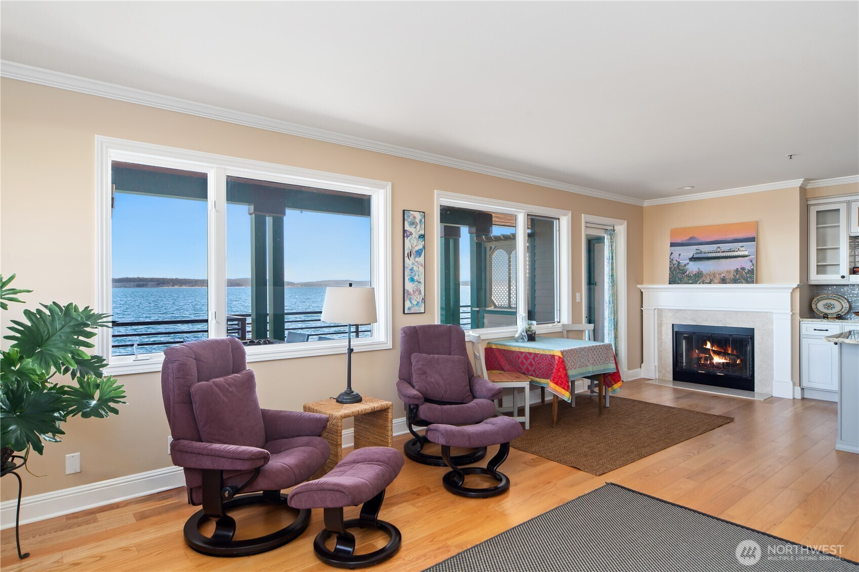 Breathtaking waterfront living awaits! This beautifully renovated main-level end unit condo offers panoramic views of PT Bay—with an active boat & marine life, watch the ferry glide by & enjoy stunning sunrises from the comfort of your home. Just a 5-minute stroll from the vibrant downtown area, you’ll have easy access to top-notch restaurants & shopping. The modern kitchen features granite countertops, Stainless steel appliances, wine fridge & ample storage, perfect for any home chef. Enjoy the oversized deck & listen to the waves lapping on the shoreline. Primary suite features deep soaking tub. Wood burning fireplace in living rm. Garage parking included. Don’t miss this chance to own your private piece of waterfront paradise!