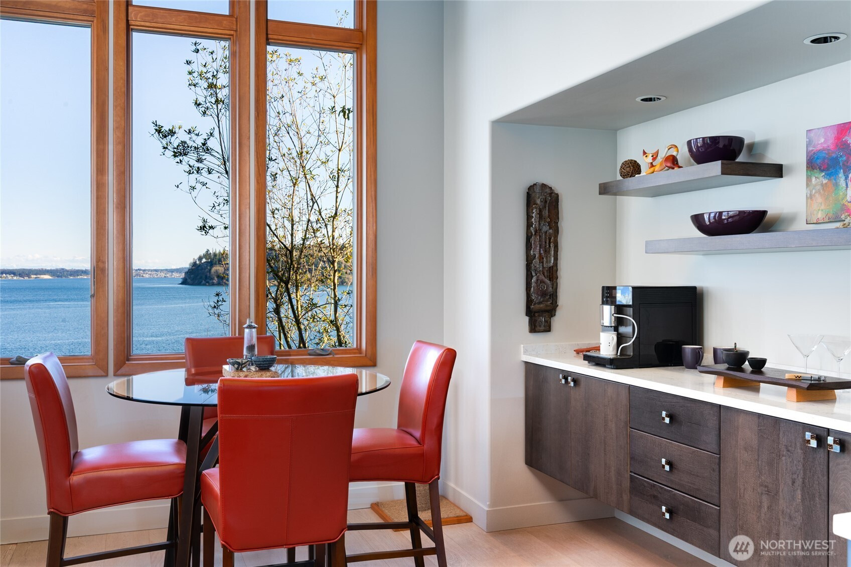 Perched above the shimmering waters of Puget Sound, this exceptional waterfront residence has been completely reimagined to blend modern luxury with the serene beauty of the Pacific Northwest. Expansive walls of windows capture breathtaking, views of Admiralty Inlet and the Cascade mountains while filling the home with natural light and creating a seamless connection to the surrounding landscape. The open-concept floor plan showcases refined craftsmanship throughout, highlighted by soaring ceilings, warm wood accents, & a stunning chef’s kitchen designed for both everyday living & entertaining. Featuring sleek cabinetry, premium appliances, and an oversized island, the kitchen anchors the home’s inviting gathering spaces. Main living areas easily connect to outdoor entertaining spaces perfect for dining al fresco, relaxing, & enjoying the peaceful waterfront setting. The primary suite serves as a private sanctuary with tranquil water views, a spa-inspired bath, & a calming, light-filled atmosphere. The beautifully updated bathroom offers modern finishes, a spacious walk-in shower, & an elegant soaking tub designed for ultimate relaxation. The lower level provides two private ensuite bedrooms, ideal for guests, multi-generational living, or extended stays. Surrounded by lush landscaping & located in one of Port Ludlow’s most desirable waterfront neighborhoods this rare offering presents an exceptional opportunity to experience refined Northwest living at its finest.
