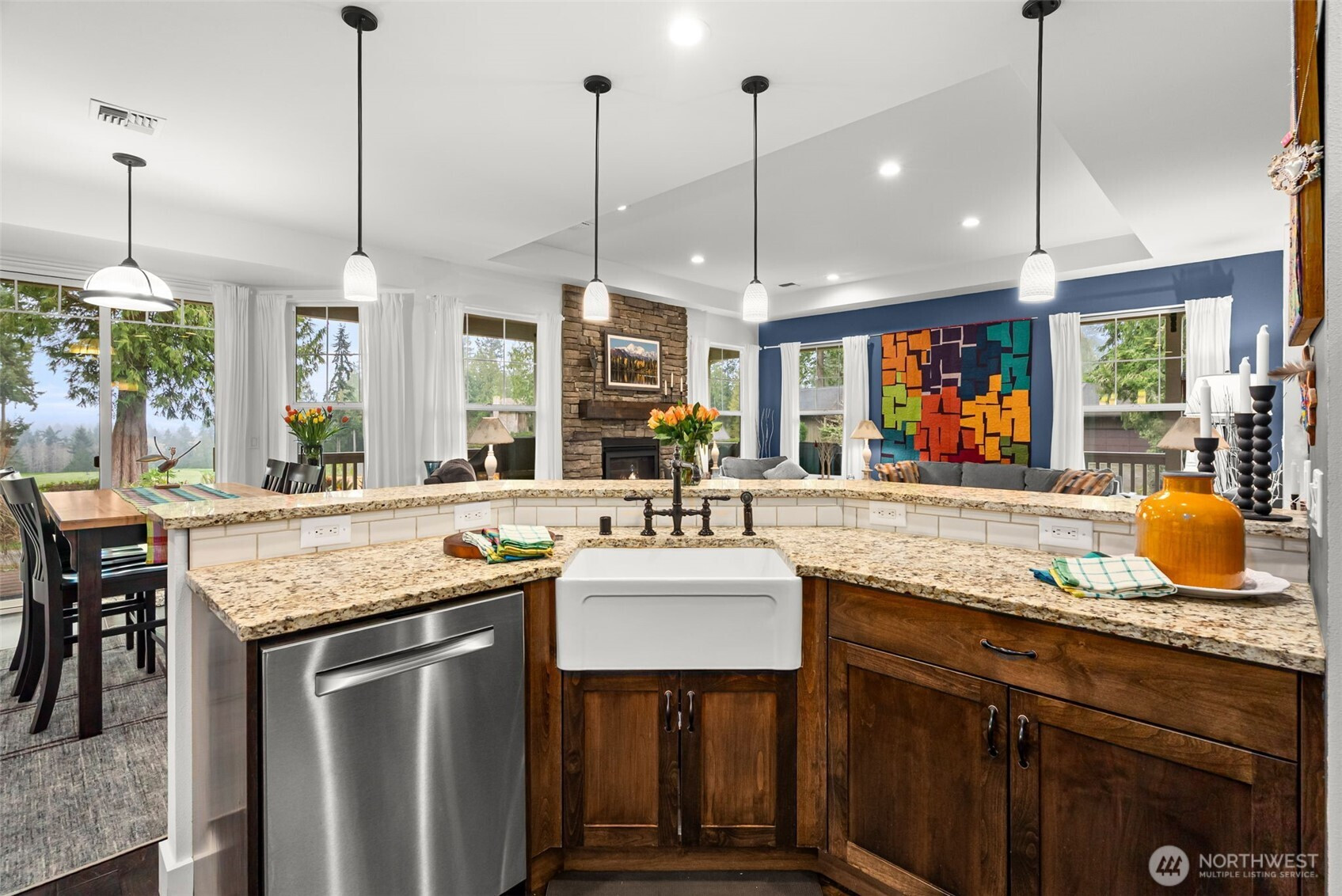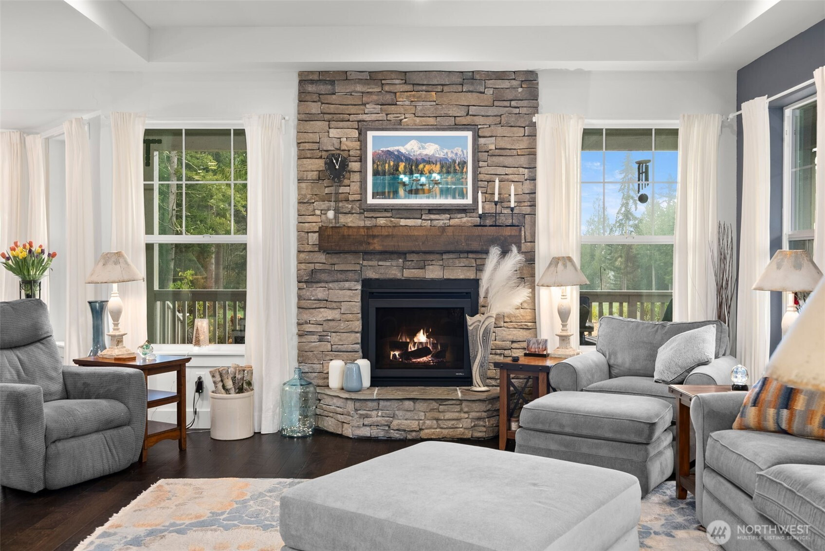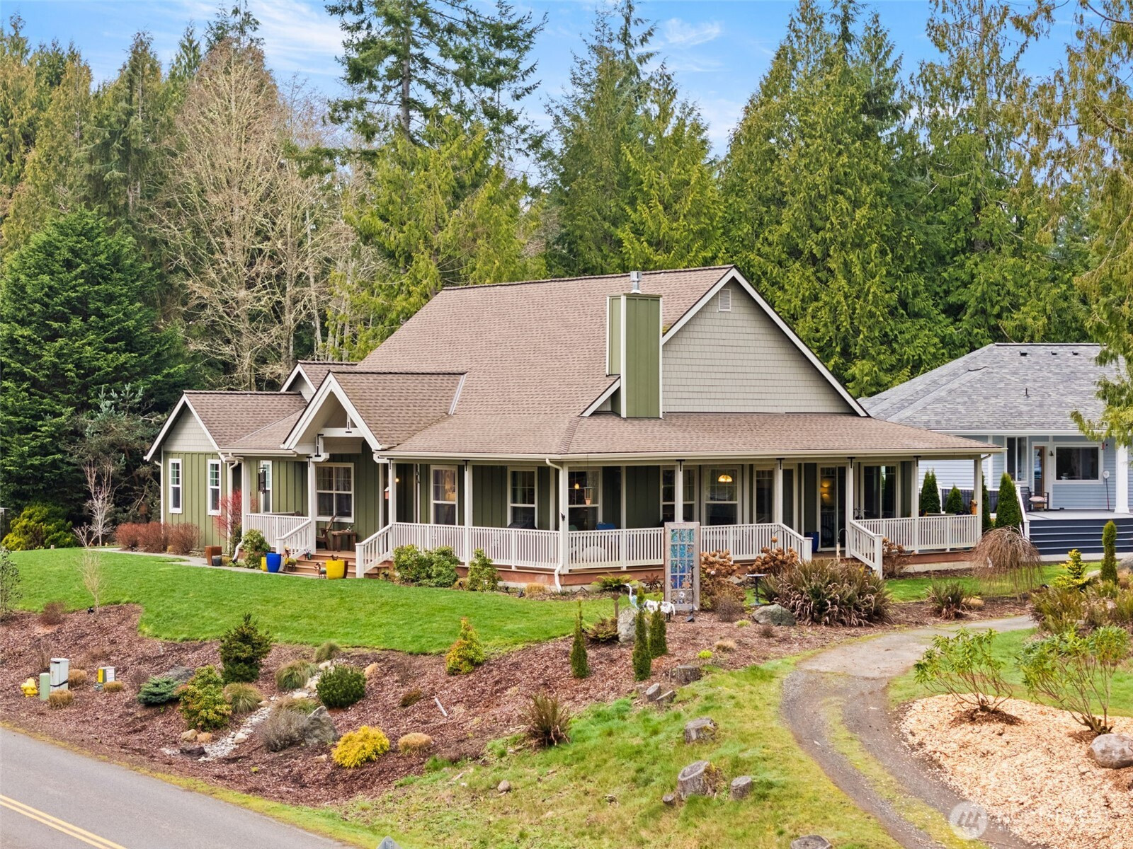 Directly on the beautiful Port Ludlow Golf Course, this spacious 2400 sf single-level custom home pairs classic rustic mountain styling with stunning fairway views—enjoyed best from the wrap-around porch. Inside, the great room features a dramatic stone fireplace and flows into a chef’s kitchen with a built-in propane range, commercial-style hood, wall oven, microwave, walk-in pantry, and abundant workspace—perfect for everyday living and entertaining. The floorplan offers three bedrooms (two ensuite) plus a den. All bedrooms include walk-in closets, including an oversized primary closet. Built in 2021, the home showcases modern energy-efficient features and low-maintenance finishes. A roomy, drywalled and insulated two-car garage adds comfort and practicality. Approximately five years remain on the structural warranty for added peace of mind. With miles of nearby trails and easy access to the clubhouse, marina, and the Resort at Port Ludlow, this location is ideal for both full-time living and weekend escapes—about 1.5 hours from Seattle. No HOA dues.