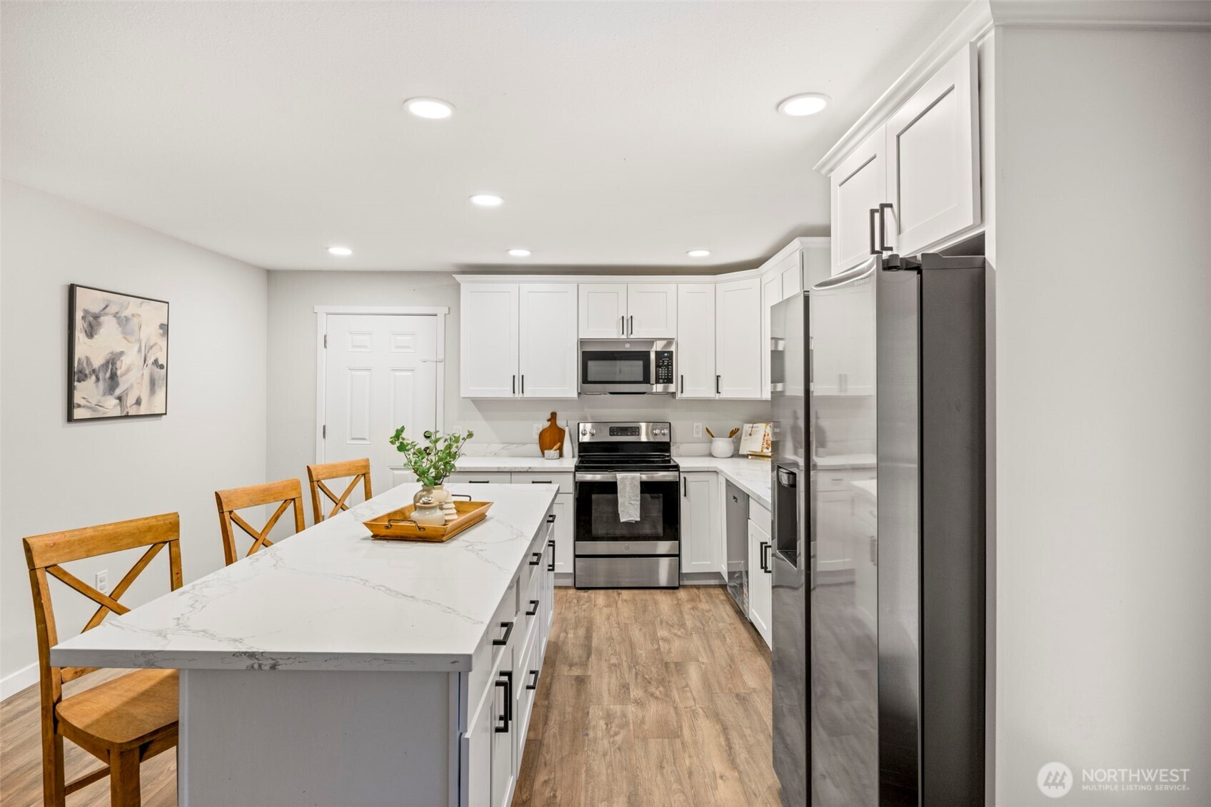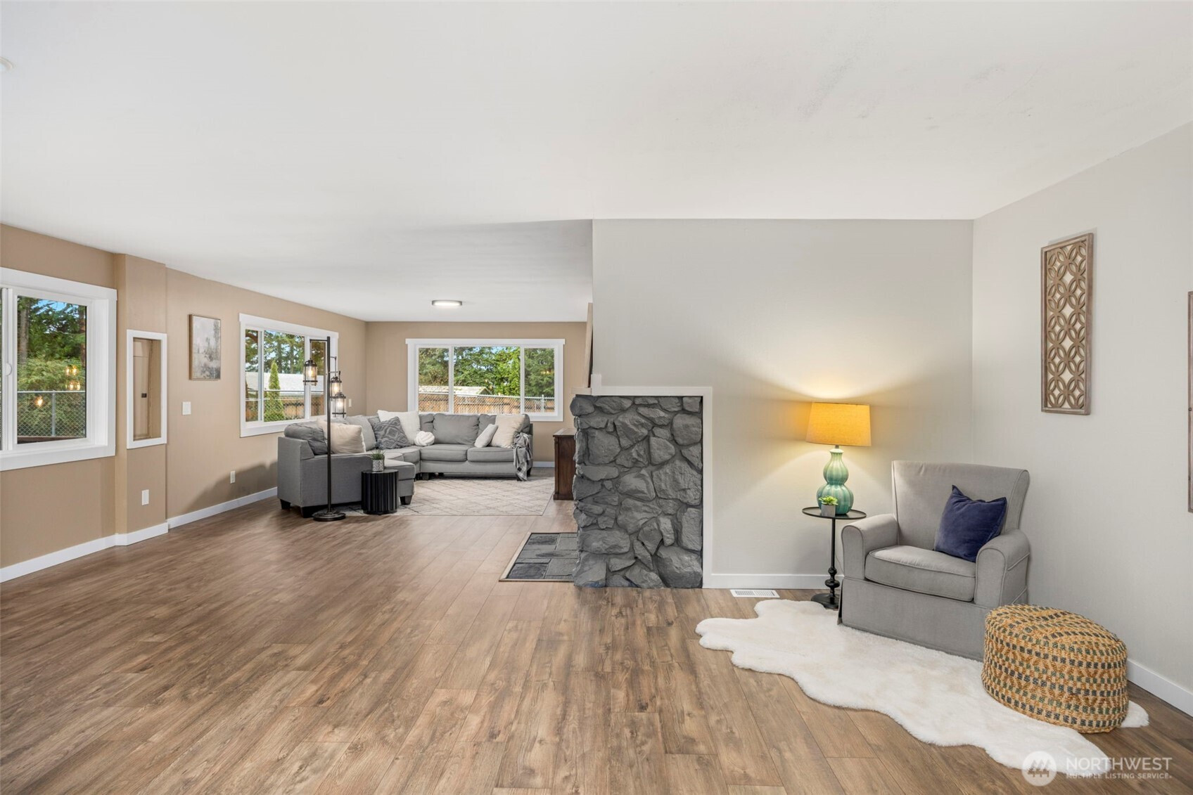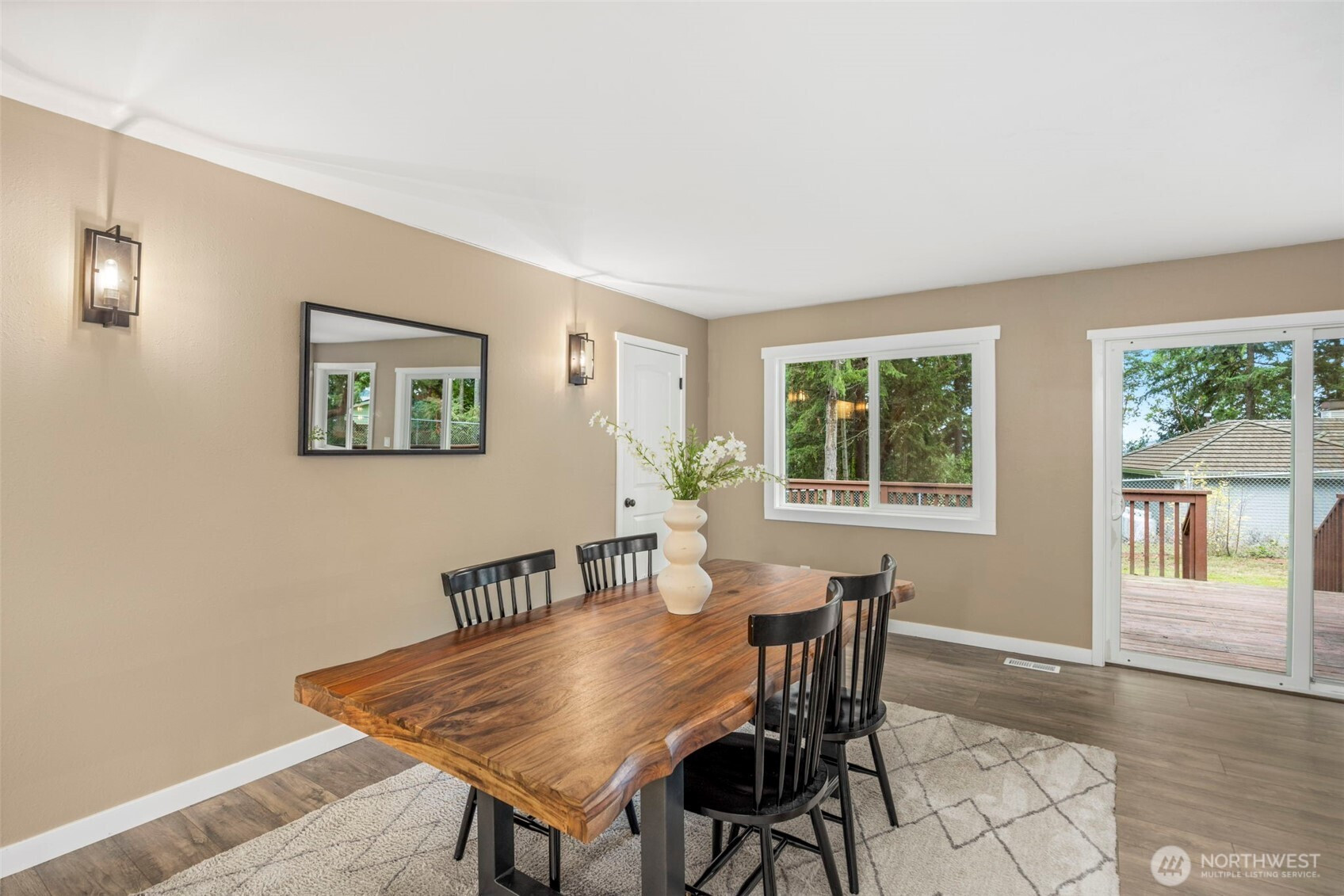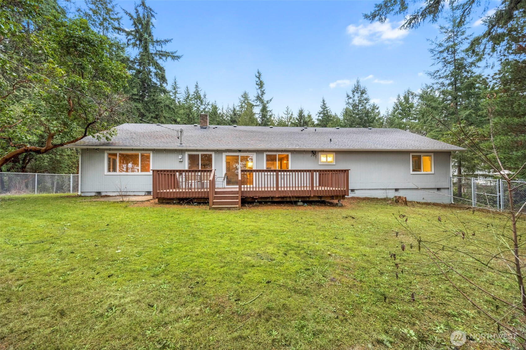 Turnkey rambler on a spacious 0.59-acre lot with room for animals, RV parking, gardening, or a potential shop. This single-level home offers 3 bedrooms + den, 2 full baths, and two living areas for flexible living. The updated kitchen features white shaker cabinets, quartz countertops, stainless steel appliances, and a brand-new dishwasher. The large primary suite includes a walk-in closet, updated bathroom and private deck access. Enjoy peaceful surroundings with easy freeway access, 5-minute drive to the Hood Canal Bridge and conveniently near Teal Lake & PL Golf Course offering easy access to fishing, kayaking, golfing and endless outdoor fun. Move-in ready and beautifully updated!