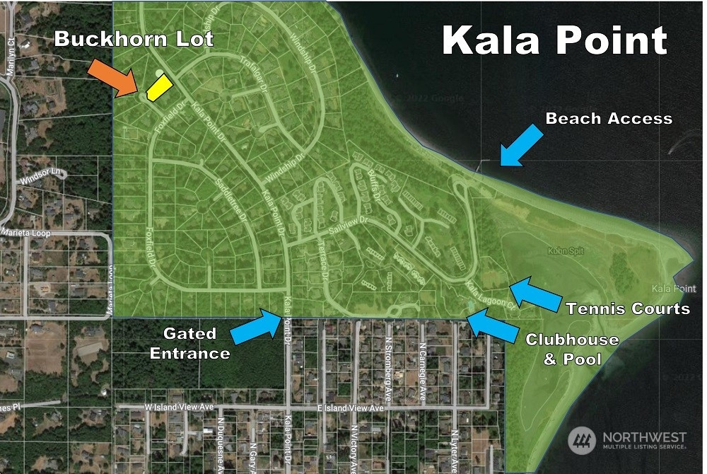 PERMITS READY AND INCLUDED IN PRICE!! 2248 SF, 4 BD, 2.5 BA, 3 CAR GARAGE. SHY 0.5 AC - EASY BUILD - END OF QUIET CUL-DE-SAC – 4BD GRAVITY SEPTIC. Plans feature open gourmet kitchen, butler's panty, great room, vaulted ceilings, primary suite w/soaking tub & walk-in shower. Beautifully treed Kala Point lot with covered deck designed offering space for outdoor kitchen or fireplace, if desired. Survey lines & septic marked. Public water. Utilities at front of lot, not yet connected. Beautiful story book setting. Large evergreens & perfect grade for a zero-step simply with meandering path to front door. With a landscaping plan, plenty of room for both a natural setting and ample or RV parking. Please note that the image is a rendering and landscape/hardscape added for illustration purposes. Kala Point community offers a clubhouse, pool, tennis courts, private beach, boat launch & trails. Kala Point adjoins State Park w/ additional trails & beach access. Ideal location - short commute to Port Townsend & Edmonds Kingston Ferry. Wonderful community to start your dream home. Act now, and construction is finished by Spring 2027!