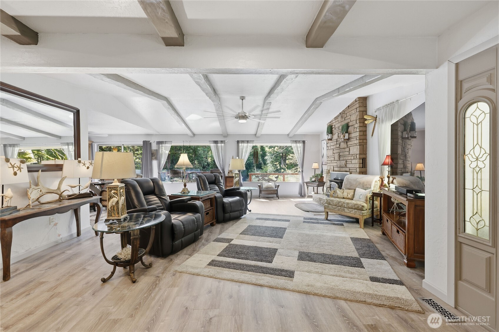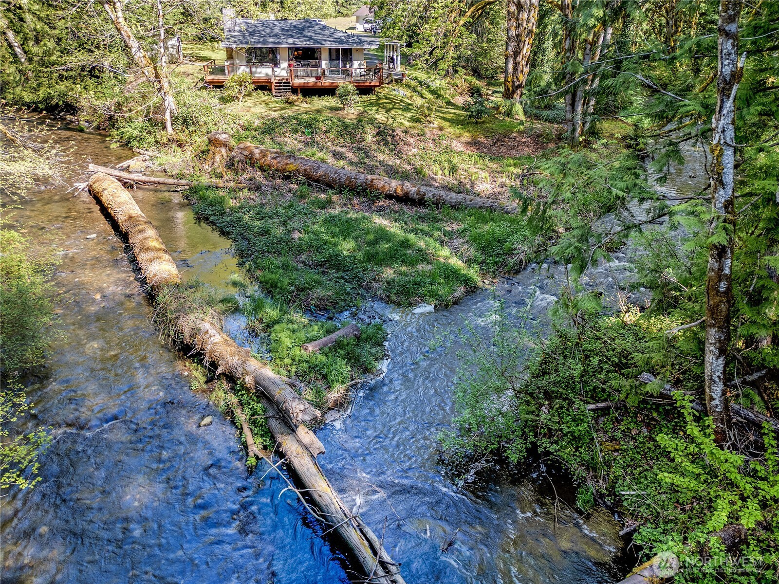 Rare opportunity on the Quilcene River! This 4-acre property spans two tax parcels and offers exceptional privacy in a serene, park-like setting. The beautifully updated home features a brand-new kitchen, remodeled bathrooms, new flooring, and fresh interior and exterior paint. A spacious primary suite provides comfort and retreat, while the open living area captures peaceful river views. Outdoors, enjoy room to roam, relax, or entertain, with inviting sitting areas at the water’s edge—perfect for soaking in the sights and sounds of the river. The property also includes a large shop and RV hookups, offering flexibility for hobbies, storage, or guests. A true blend of modern updates and Pacific Northwest tranquility.