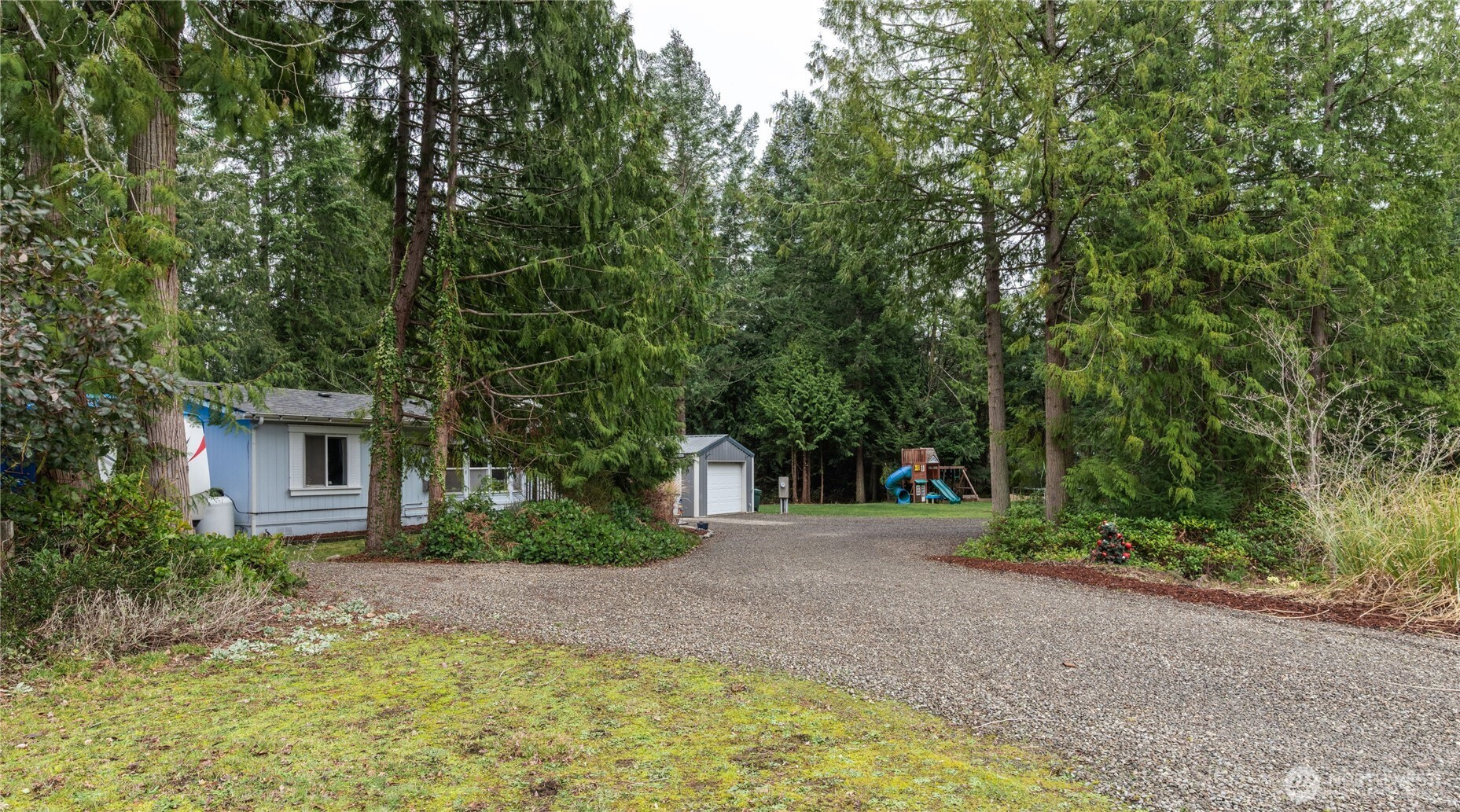 Discover the tranquility in the Port Hadlock Heights community at- 302 Port Hadlock Heights Rd. Nestled in a serene setting on a generous parcel surrounded by natural PNW beauty. This 3-bedroom, 2-bath home offers comfortable living spaces, abundant natural light, and a functional layout. The kitchen has ample storage and a large pantry. Primary bedroom and attached bath on one side, 2 bedrooms/ 1 bath on the other side of the home. Laundry room doubles as a mudroom with direct access to the fenced back yard. A detached one-car garage provides added storage and convenience. Outside you will see a newly graveled driveway and added trailer parking. This home is ideal for those seeking a slower pace of life without sacrificing accessibility. Enjoy the Olympic Peninsula while remaining conveniently close to Port Hadlock amenities, outdoor recreation, shopping, dining and easy access to Port Townsend and the waterfront. A wonderful opportunity to enjoy space, serenity, and small-town charm. Must be owner occupied per park rules.