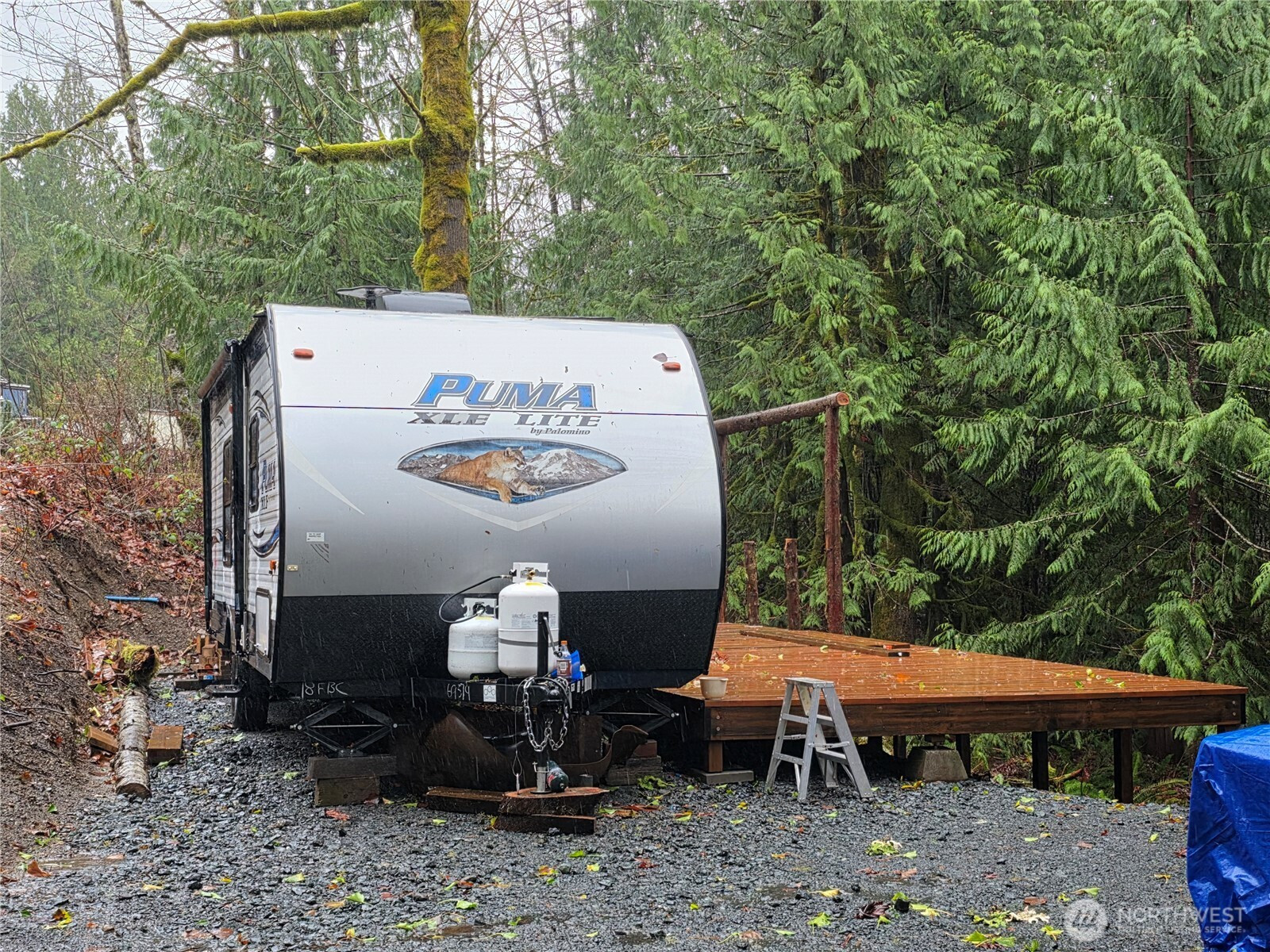Come relax in this cozy spot at the base of the Olympic Mountains with a Puma XLE Lite camper all set up. This property also has a storage shed, a newly built deck and the ability to connect to the community water system. Power box has been installed and is nearly ready to activate. Included in the ownership is access to a community river park on the Dosewallips River.