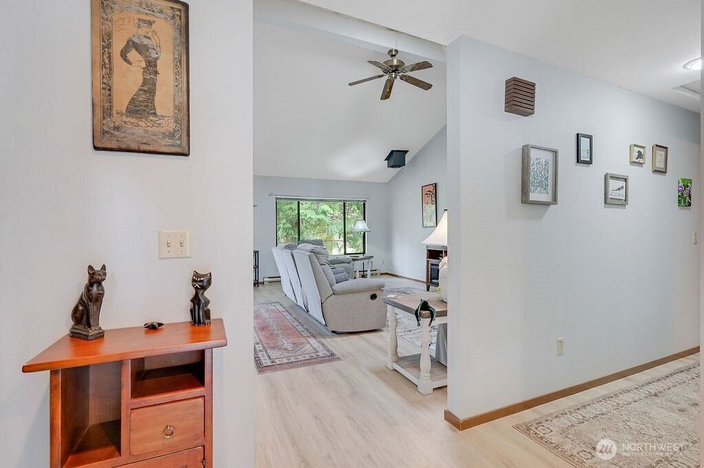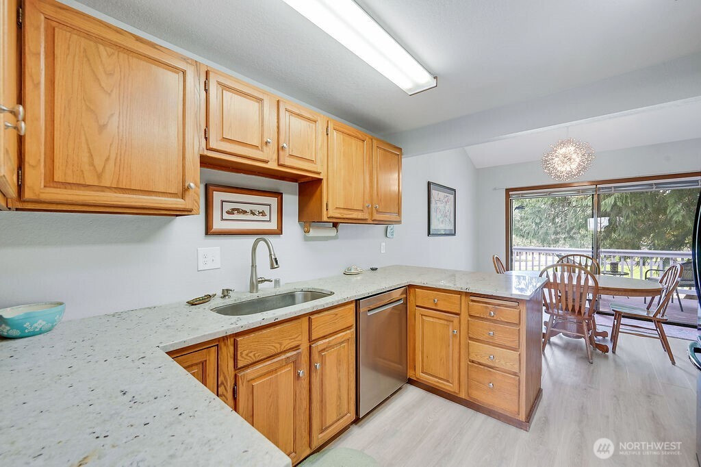 Wake up to serene golf course views and morning coffee on your private, east-facing deck at this charming Port Ludlow condo. This 3-bedroom, 1,396 sq ft home offers main-level living just nine steps up, where sunlight pours through large windows and a skylight, highlighting a spacious kitchen with new granite counters. The dining area opens to a deck overlooking the 9th fairway, creating the perfect spot for quiet mornings or entertaining friends. The open living spaces flow easily, making it effortless to enjoy relaxed days at home or connect with neighbors in this welcoming community. Perfect for golf enthusiasts, those who enjoy staying active in local arts, hiking, and community activities, or anyone seeking a low-maintenance, turn-key lifestyle, the condo allows you to lock-and-leave with confidence while enjoying Port Ludlow’s peaceful setting. Spend mornings on nearby trails, afternoons at the marina, and weekends exploring art, hiking, or boating adventures. Dues cover the building exterior and building insurance, groundskeeping, garbage, and secure mailboxes, while a one-car garage with attic storage provides additional convenience and storage. Conveniently located just minutes from beaches, restaurants, medical clinics, with easy drives to Port Townsend (30 min), Silverdale (25 min), and Kingston (20 min) or Bainbridge Island (45 min) ferries, this home balances tranquility with access to everything you need. Experience the ease & beauty in the Port Ludlow resort.
