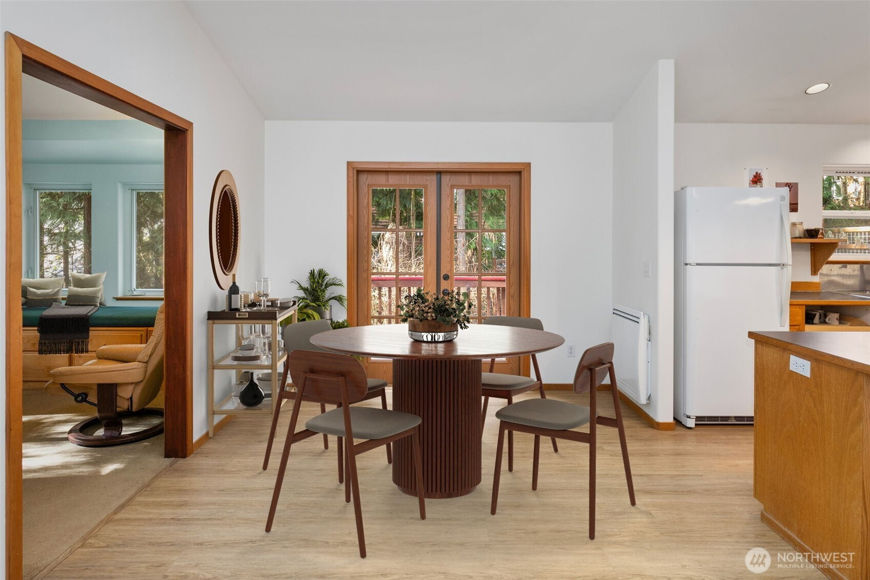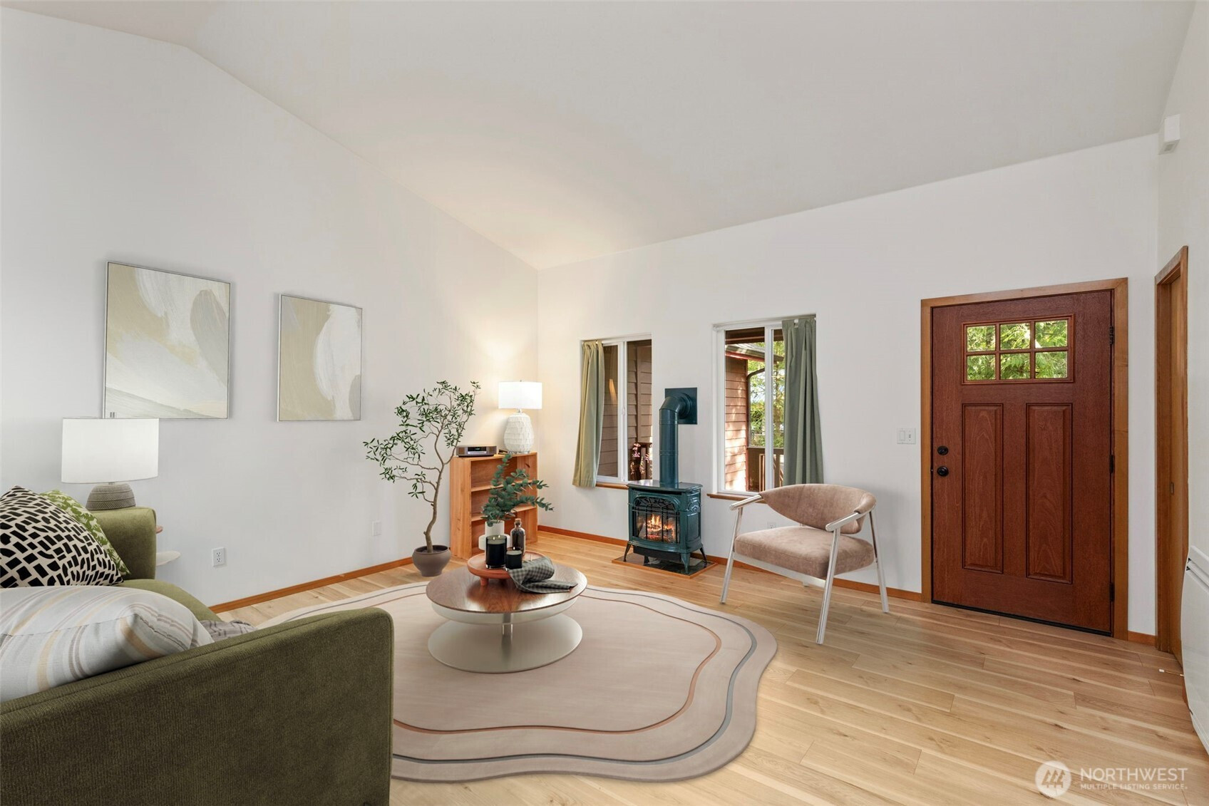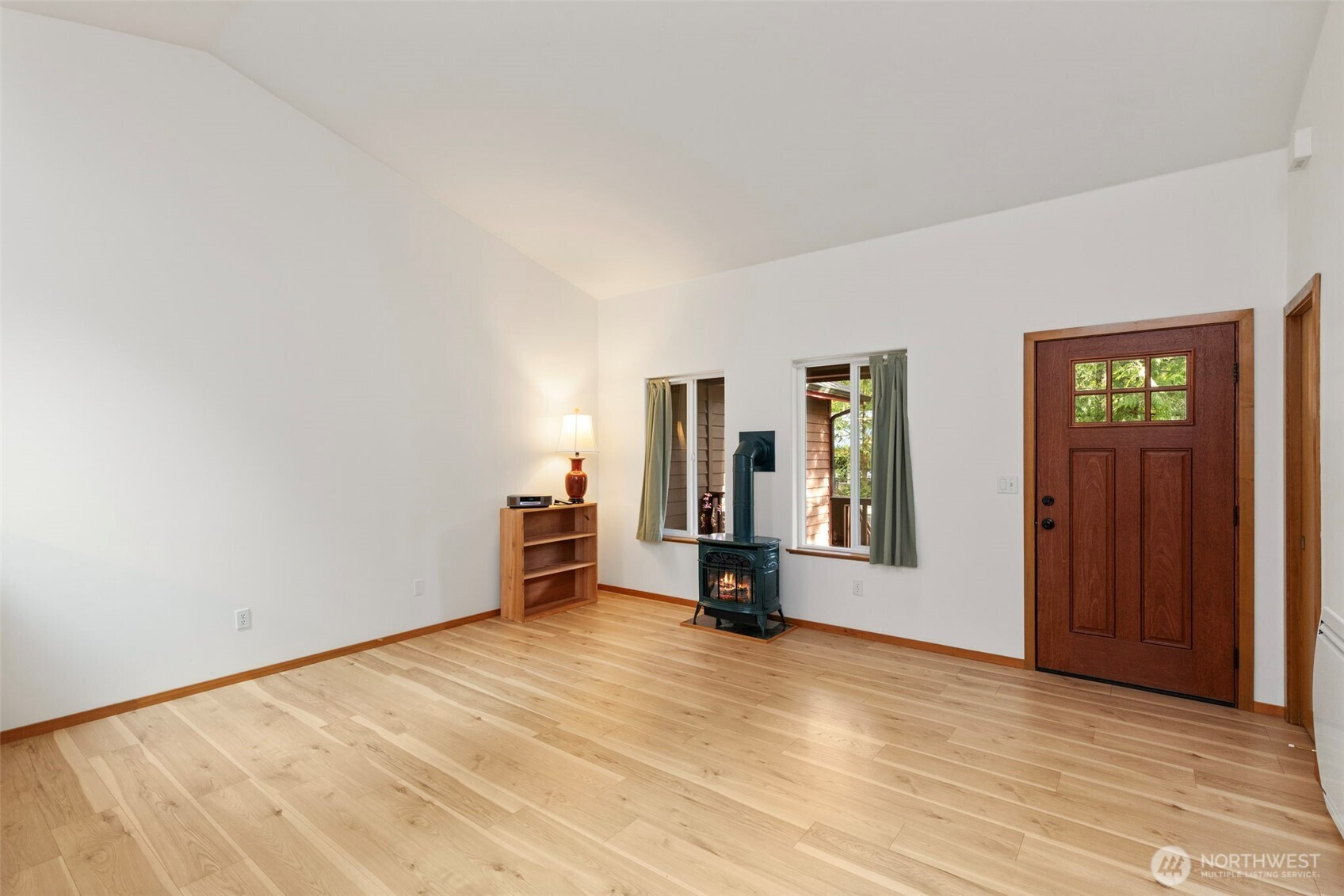 Easy single-level living in this well-maintained home in the sought-after Bell Street neighborhood. Zero step entry via ramp in garage. Step into the inviting living room featuring vaulted ceilings, skylights, and a cozy propane stove. The open-concept kitchen, dining, and living areas create a spacious feel that lives larger than the square footage suggests. French doors off the dining area lead to a fully fenced backyard—perfect for relaxing, gardening, or pets. The kitchen offers a generous island with seating, ideal for gathering and everyday living. The primary suite is a true retreat with its own propane stove, large walk-in closet, and beautifully updated 2025 bathroom complete with a walk-in shower and glass doors. The second bedroom includes a built-in desk and can easily be converted back to a deep closet. A versatile third room—also featuring a propane stove—works well as an office, den, or hobby room and shares a bath with the second bedroom. Additional highlights include a 10-year-old roof, washer and dryer hookup in the hall closet, and in the attached two-car garage. Don’t miss the standing-height basement offering excellent workshop space or additional storage. Located just steps from Cappy’s Trails, minutes from North Beach Park & Fort Worden, and 3.5 miles to downtown Port Townsend, this home combines comfort, convenience, and flexibility in a prime location!