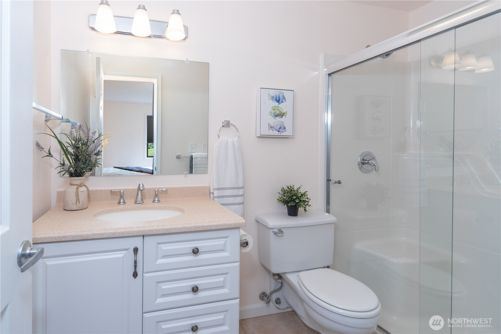 Beautifully remodeled, upgraded end unit condo in Admiralty 1 Complex.Enjoy a most spectacular view of the bay, strait,sound,and Mt. Baker. This lively unit is turn key,with most of the furniture and items included.Kitchen,entry,and baths allhave tile floors,with granite tile countertops throughout. Enjoy 1600 SqFT with 4 bedrooms,each with it's own bath. Watch the boats go by from your deck and marvel at the sight of Mt. Baker.The unit is pre-inspected and items needing minor repair have been fixed. You will love the lifestyle with close proximity to the Beach Club, marina, indoor and outdoor pools, exercise rooms and the Inn with the Fireside Restaurant for fine dining. This is Paradise Found.