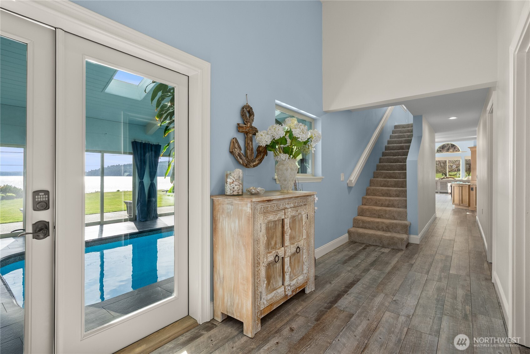 Transition from the crisp salt air of the Sound to the warmth of your own indoor, low-touch, heated saltwater pool. Immerse yourself in a luxury lifestyle defined by the tide and refined main-level living. Housed under soaring vaulted ceilings, skylights, and floor-to-ceiling glass, this chemical-free oasis is bathed in natural light and offers a reward you didn’t know you needed. Enjoy 150 feet of private beachfront for fishing, crabbing, or kayaking. With a public boat launch just a half-mile away, the entire Salish Sea is your backyard. Whether you are swimming, relaxing in the hot tub, or simply sitting fireside under the stars, yours is a breathtaking connection to the beautiful grounds and the saltwater beyond. Automatic generator.