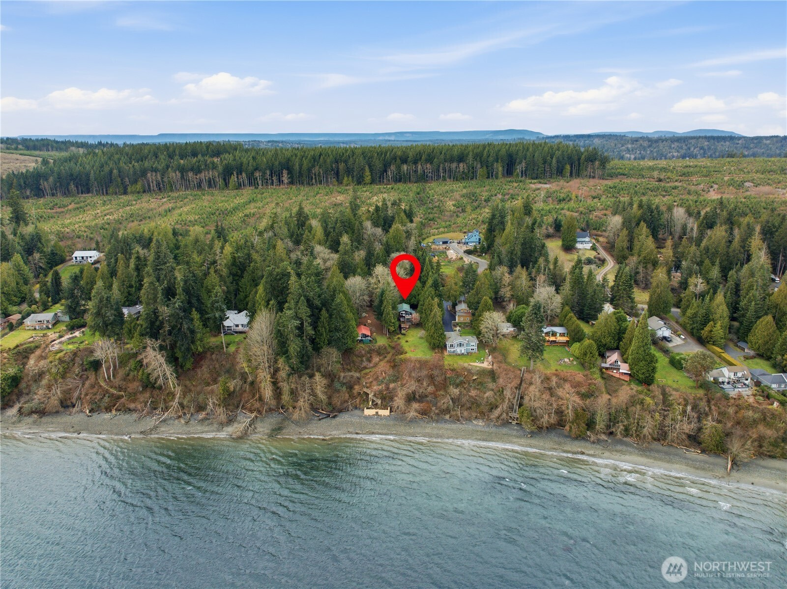 Located on a quiet, private street this enchanting waterfront home offers views that overlook the Hood Canal, Cascade Mountains, and Glacier Peak. Set on a tranquil and peaceful .65-acre lot with 75 feet of high-bank waterfront, this private retreat not only offers gorgeous water and mountain views, but also serenity with nature on display. This thoughtfully designed home offers a versatile floor plan with vaulted ceilings on both levels, refined millwork, and an abundance of natural light. As you enter this charming home, the entry level includes a very large spacious bedroom with deck access, 3/4 bath, laundry area, attached oversized 2 car garage and even a convenient dog wash station for your pet to enjoy a spa day! Upstairs is an open-concept living, dining, and kitchen space, and a second bedroom suite with full bath complete with large, deep soaking tub. Enjoy year-round comfort with a heat pump providing efficient heating and cooling air conditioning. Plenty of space to park your boat and RV parking with water and power hookups perfect for visiting guests. Three expansive view decks—perfect for entertaining, relaxing, or simply soaking in the ever-changing waterfront scenery. With no HOA or CC&Rs, this property offers outstanding flexibility - ideal as a full-time cozy residence, weekend getaway retreat, or an income-generating vacation rental. Just minutes away from dining, an 18-hole golf course, scenic hiking trails, and the resort marina.