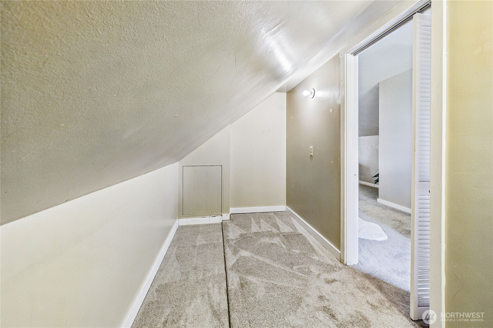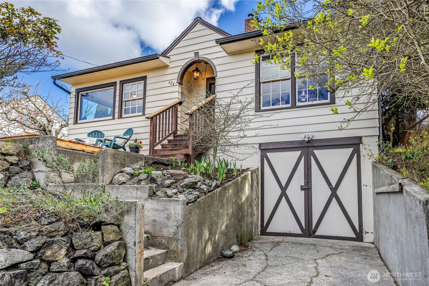 Charming 1928 bungalow in the heart of Uptown Port Townsend, ready for its next chapter. This prime location offers easy walkability to the farmers market, Food Co-op, restaurants & more. Enjoy Olympic Mountain views from the eat-in kitchen, dining room & front deck, perfect for evening relaxation and connecting with neighbors. The main level features 2 bedrooms & a full bath, while upstairs offers a spacious third bedroom with bonus storage areas. The basement includes a laundry room, workshop space & under-house single-car garage. The backyard is full of potential with a greenhouse, former garden beds & a pond feature—ready to be reimagined as a private garden oasis, ADU or home office building site.