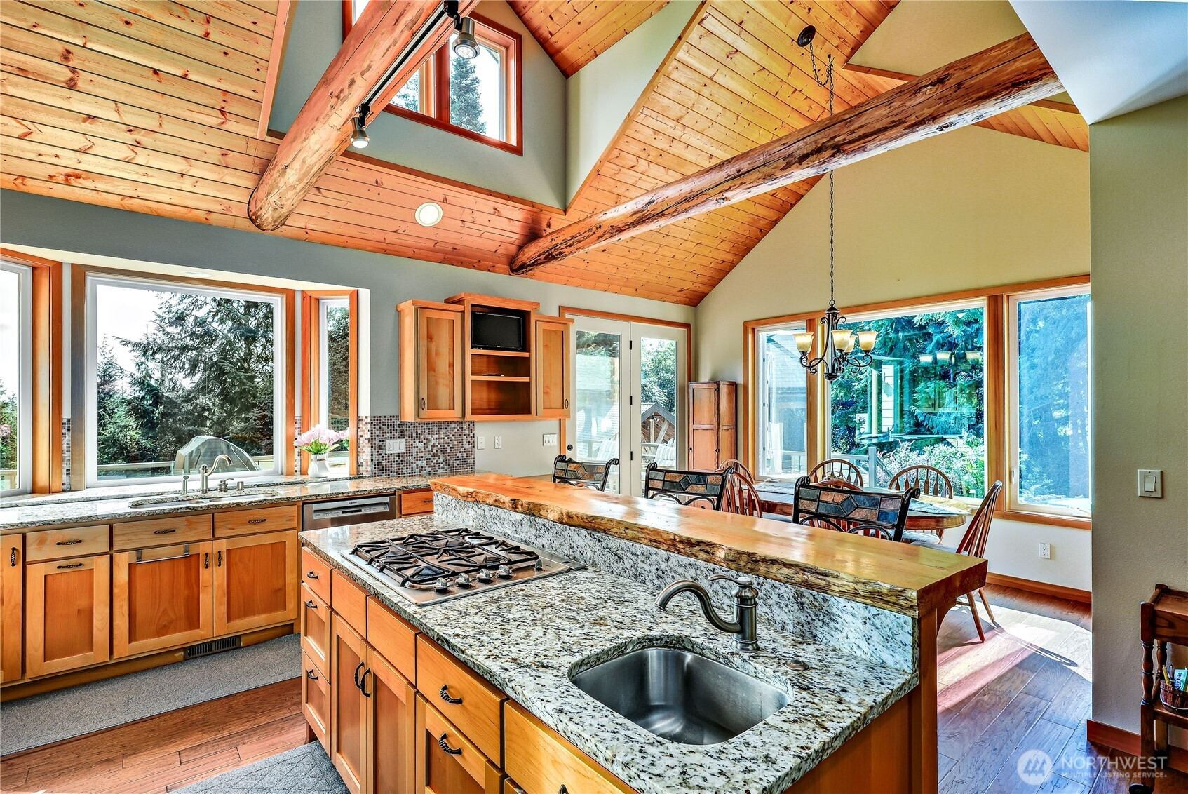 Experience refined living in Port Ludlow on 5.08 serene acres with a guest suite offering private entrance, full kitchen, bath, and laundry. The main residence showcases hardwood and tile floors, vaulted wood ceilings, expansive windows, and two interior fireplaces. A spacious balcony invites relaxation among the trees, while the gazebo with fireplace and a putting green create an entertainer’s retreat. The 3-car garage adds practicality to this elegant setting. Minutes from resort amenities, golf, and the marina, this property blends Northwest beauty with ultimate quite, comfort, style, and functionality.
