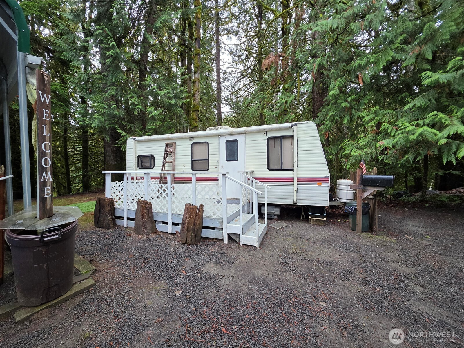 Relax to the sound of the Duckabush River as you enjoy your camping retreat. This .64 acre property has 2 travel trailers, a 2019 Aspen Trail and a Terry Resort (which has a new roof) both with decks, power and telecommunications installed. Evergreens surround this peaceful place which includes 2 outbuildings, picnic area, and gated driveway. Filtered view of the river and an additional level area that could be used for a tiny home/cabin. Bring your containers and get water at one of the community water faucets. Ownership includes access to a community beach on Hood Canal for swimming/shellfish gathering, boat ramp, clubhouse kitchen, and a picnic area on the Duckabush River.