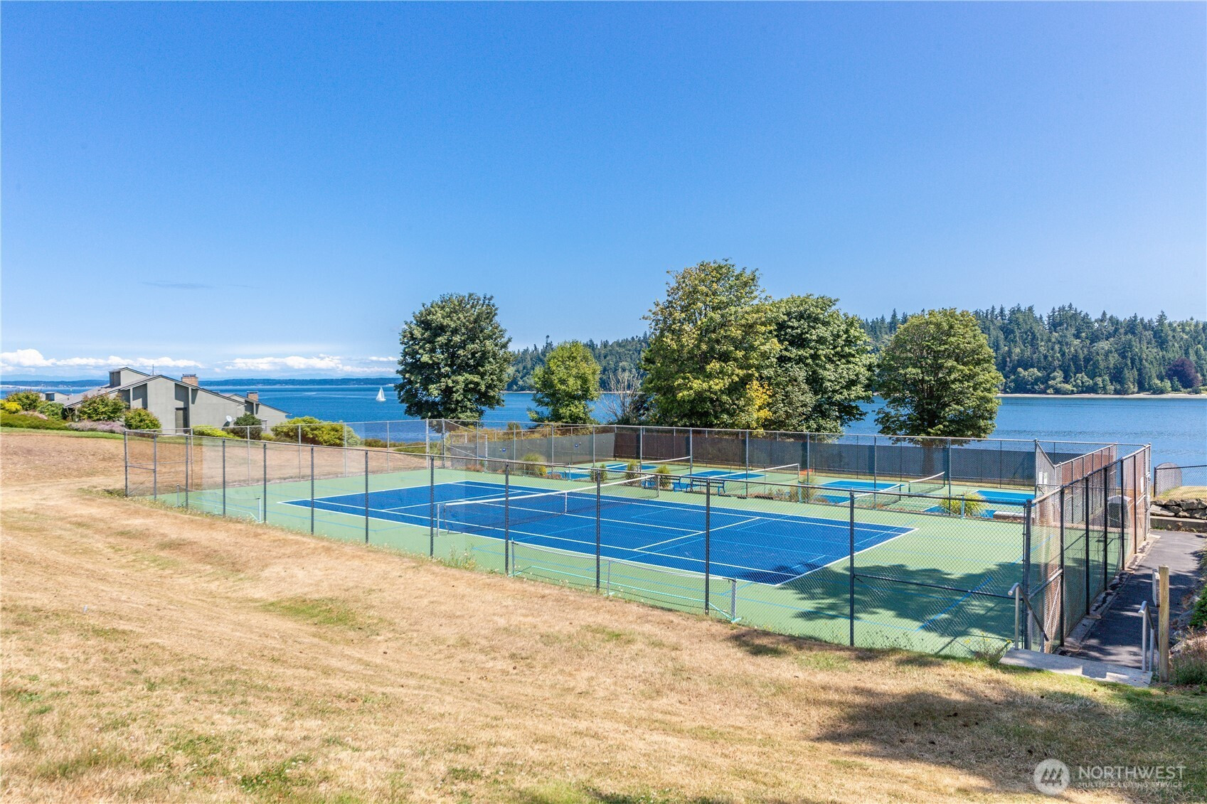Enjoy effortless waterfront living in this beautiful 2-bedroom condo with sweeping views of Ludlow Bay, the shipping lanes, and the Cascade Mountains. Ideally positioned for easy beach access, this single-level home offers step-free entry and a seamless indoor-outdoor flow to a partially covered deck. Both spacious bedrooms feature ensuite baths, while the light-filled living room showcases a cozy wood-burning fireplace. Thoughtfully designed with abundant storage, including two exterior lockers and a large additional storage room. Just a short stroll to the Beach Club for swimming, fitness, pickleball, and tennis, as well as the marina and scenic trails. HOA permits short-term rentals. Seller will pay the full special assessment with a full-price offer—an exceptional opportunity for waterfront living or investment.