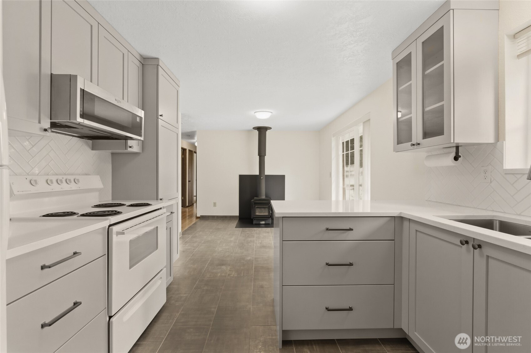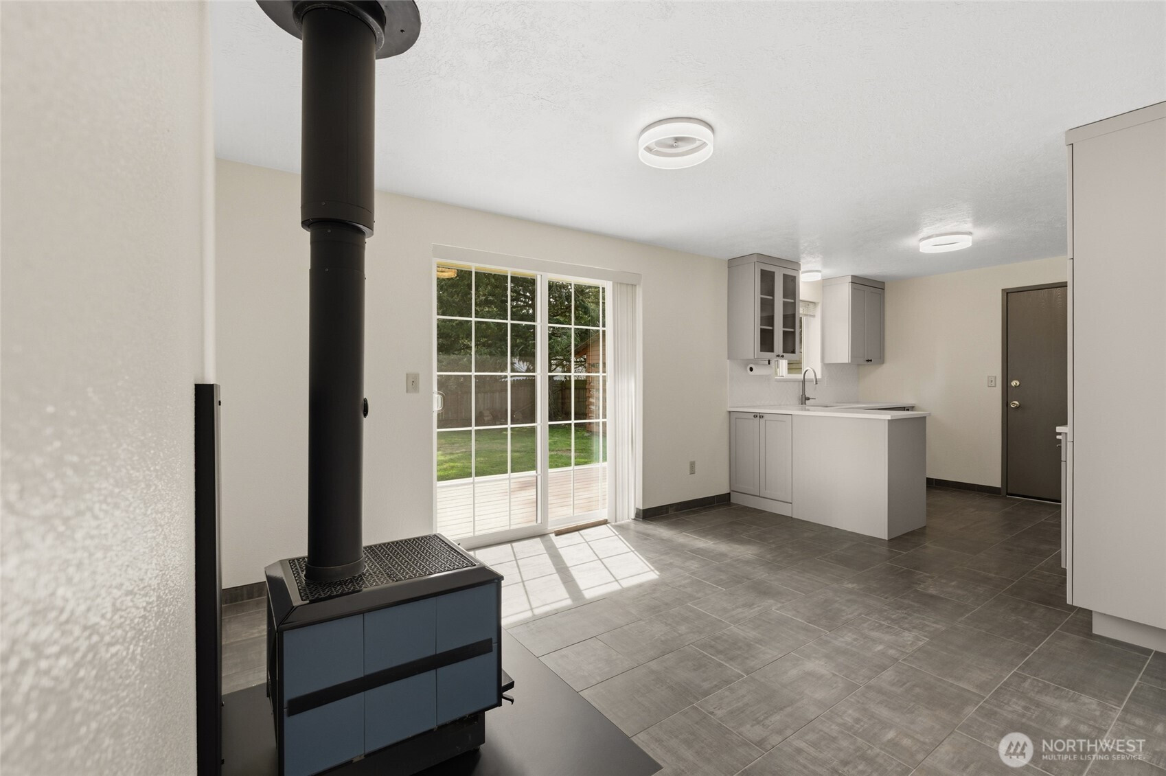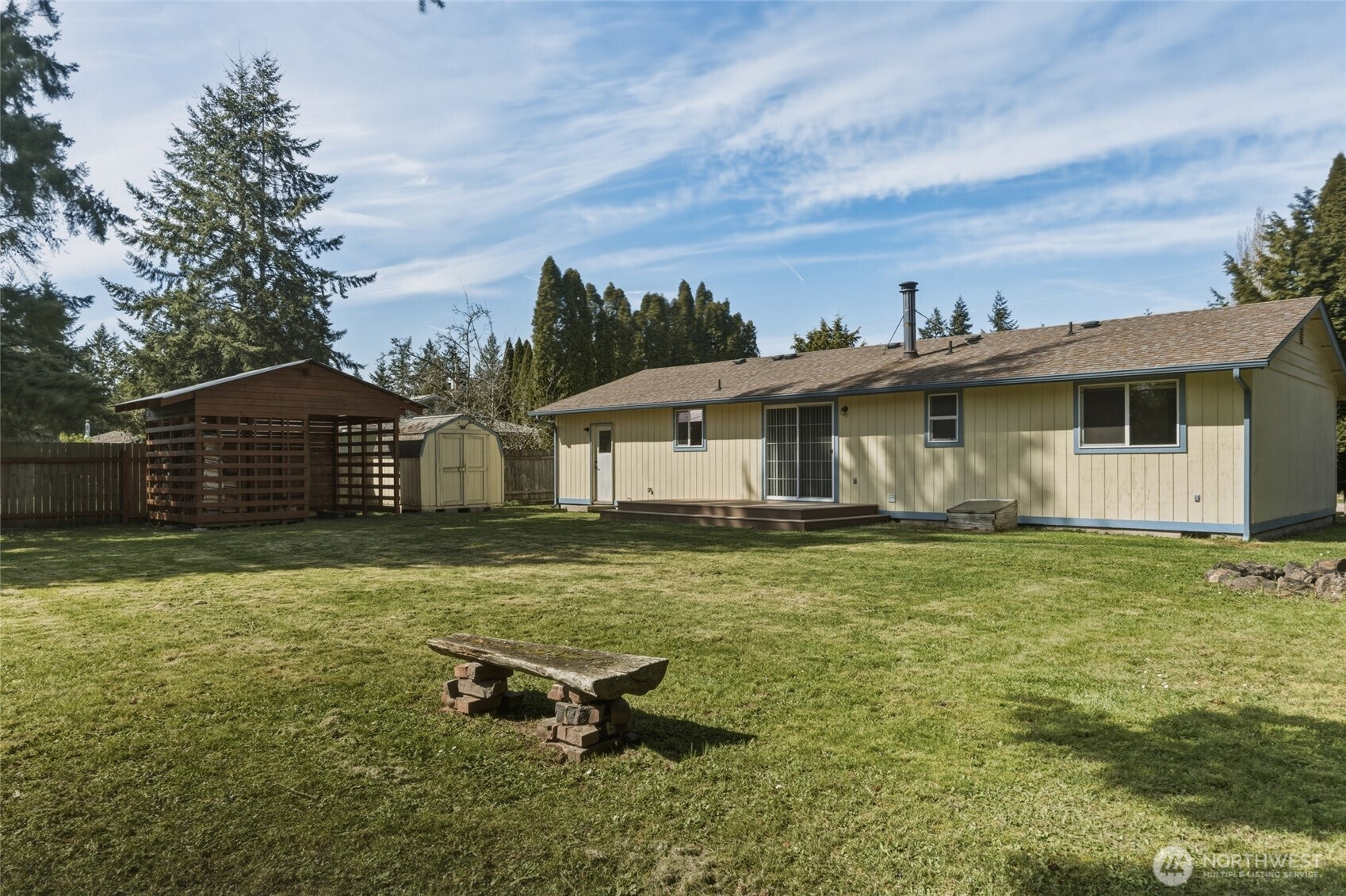 Charming & inviting, this well maintained 3-BR rambler is situated on a nearly one-third acre lot, offering both privacy and a sense of open space. Thoughtfully updated, the home blends classic charm with modern convenience, making it a perfect retreat for those seeking a quiet lifestyle. The recently remodeled kitchen is a true highlight, featuring custom cabinetry crafted by a local artisan, designed for both beauty & functionality. Quartz countertops provide ample workspace for cooking & entertaining, while elegant tile flooring adds a clean, contemporary touch. The cozy wood stove creates a warm & inviting atmosphere, perfect for relaxing evenings or gathering with loved ones. Stunning red oak floors add warmth & character in the living room & hallway. The spacious living areas flow seamlessly, offering flexibility for dining, entertaining, or quiet time. Natural light fills each room, highlighting thoughtful finishes and the home’s timeless appeal. Step outside to discover a large sunny deck & a generous fenced garden space, with over 200 bulbs of garden growing. The expansive sunny yard provides a private, tranquil backdrop for outdoor living. The property also has a firewood shed & a small outbuilding for lawn equipment or garden tools. An attached one-car garage, full of light, adds further functionality. This property offers a perfect balance of comfort, character, and potential.